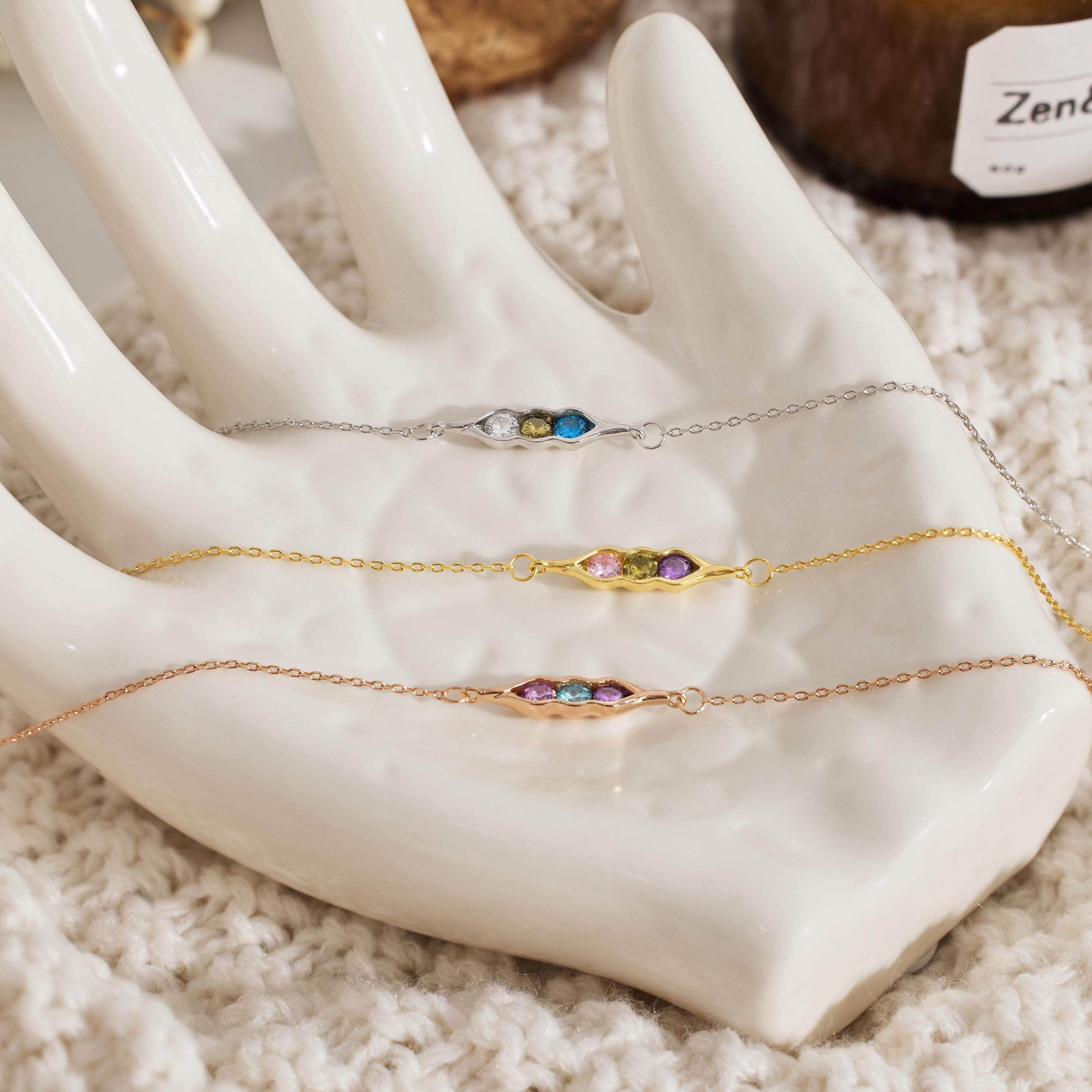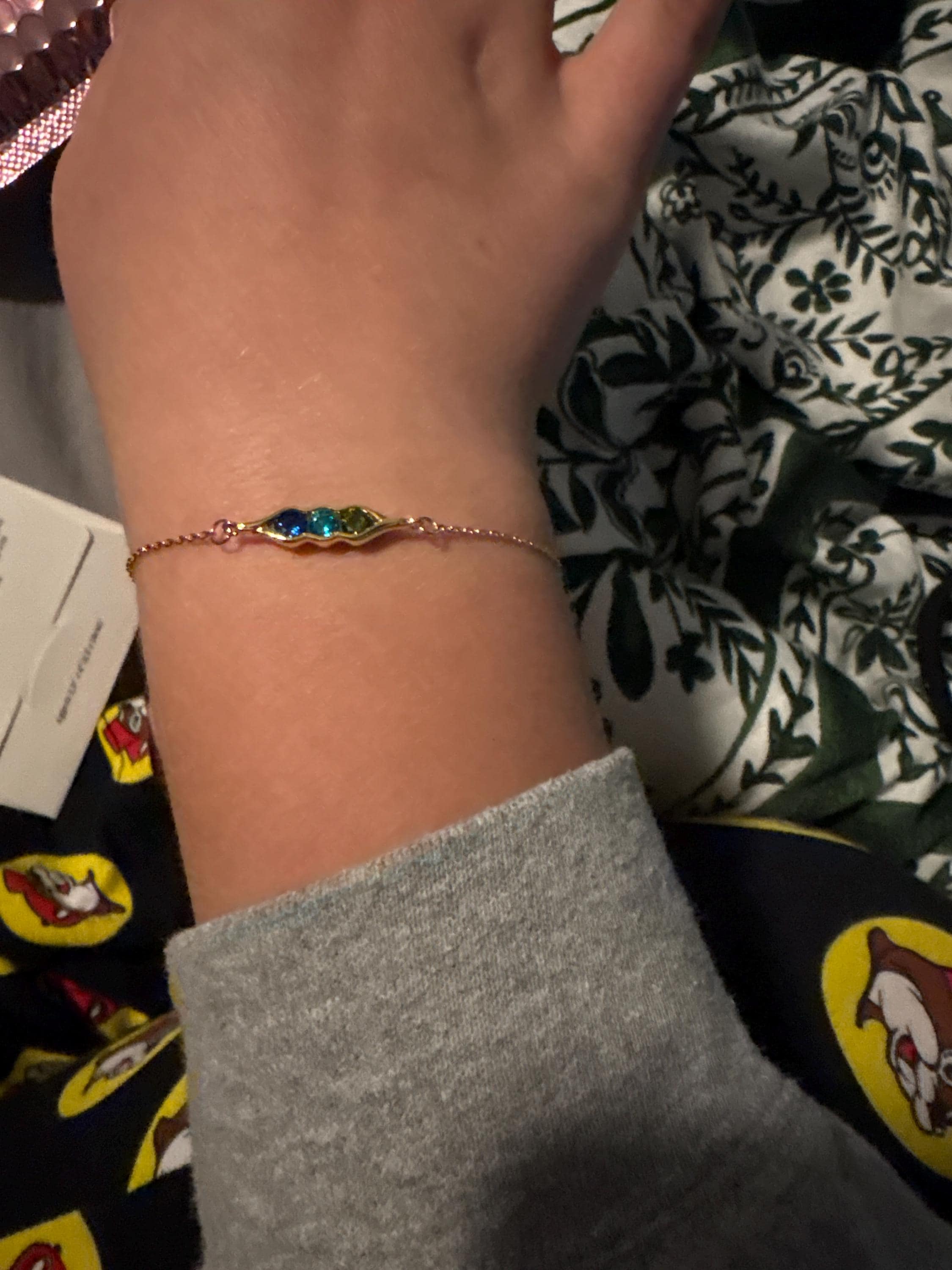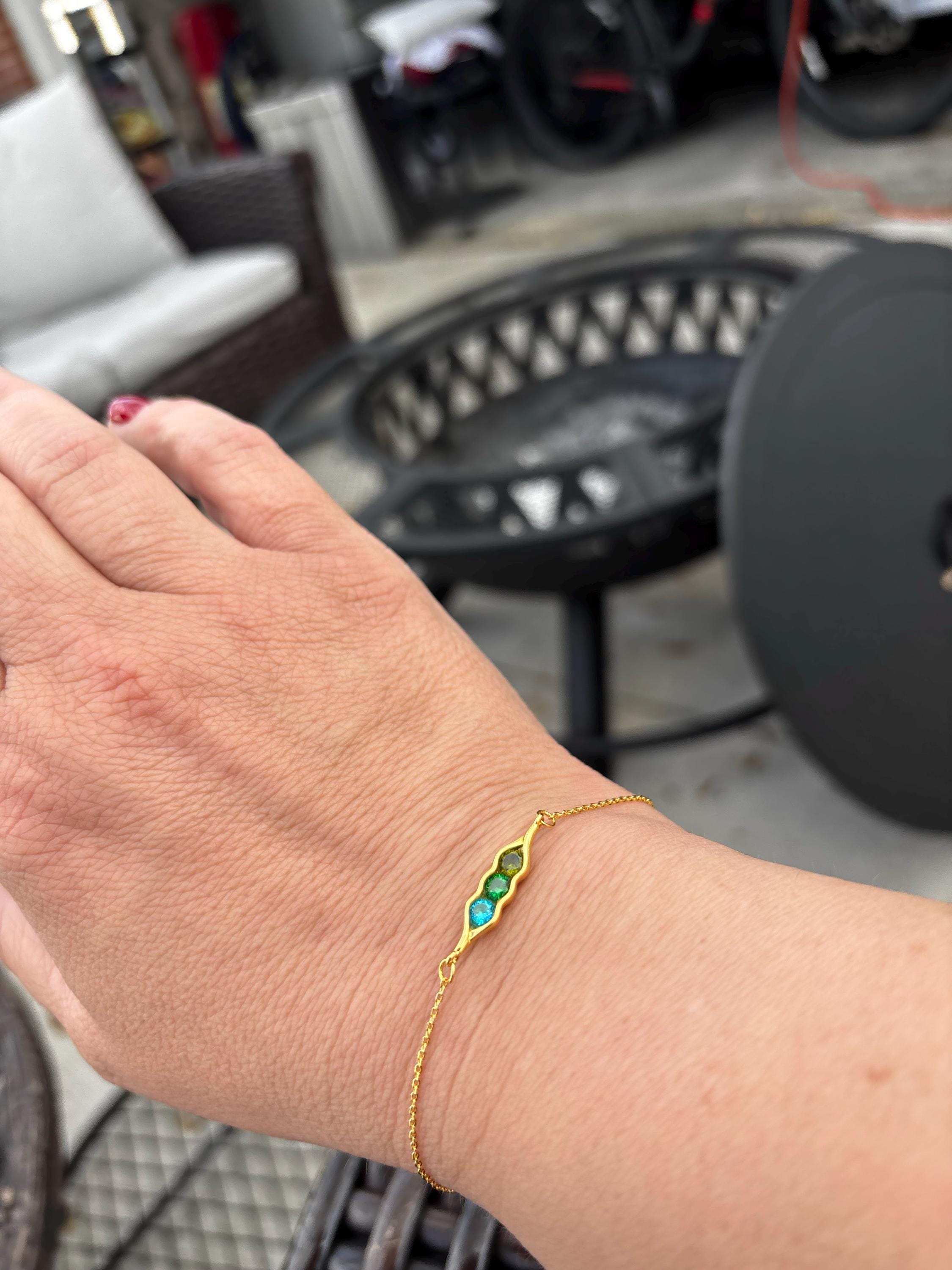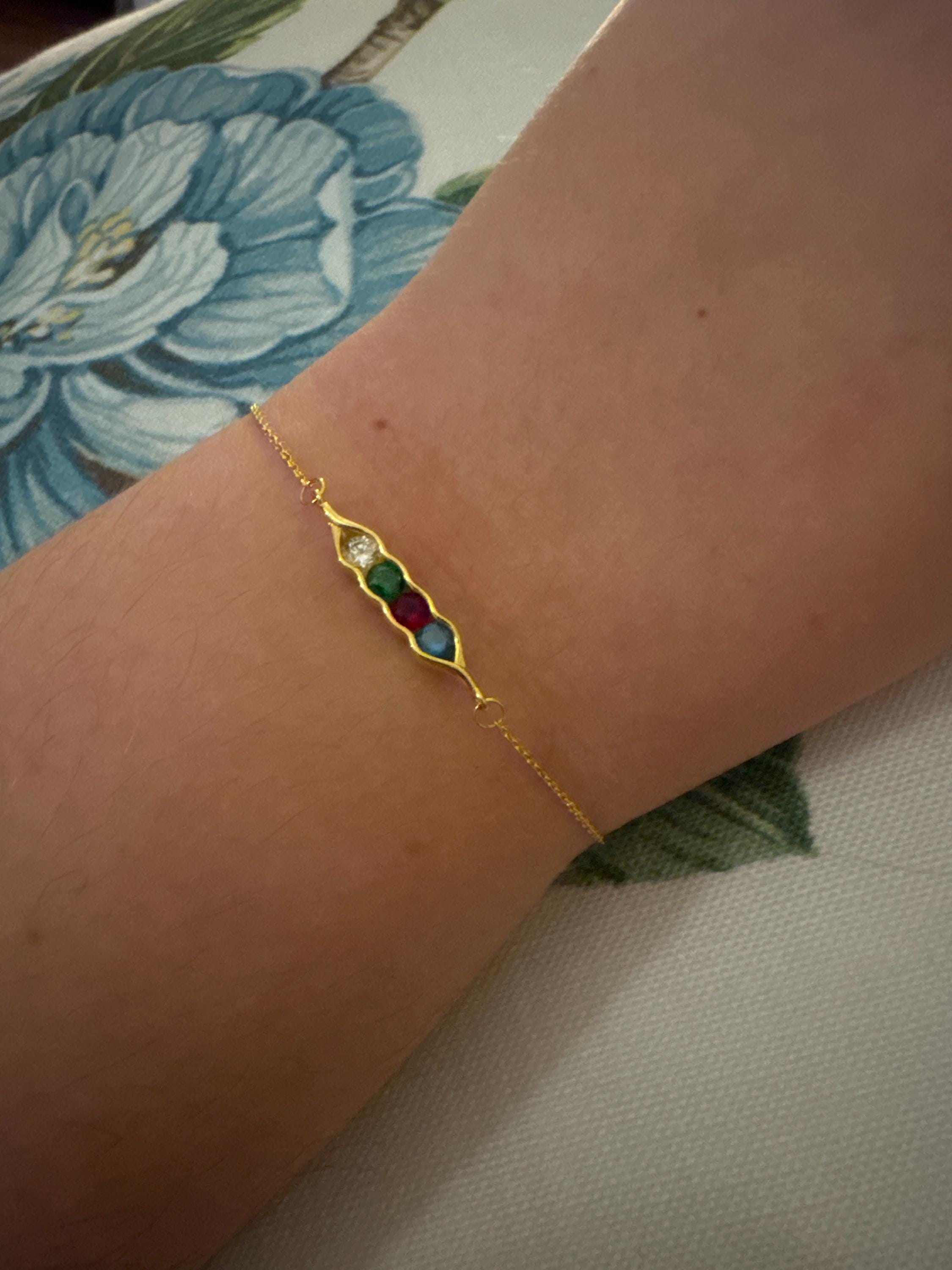 18k Gold Personalised Peas in a Pod Birthstone Bracelet,Dainty Bracelet, Family Bracelet, Anniversary Gift for Her,Mothers Day Gift for Mom