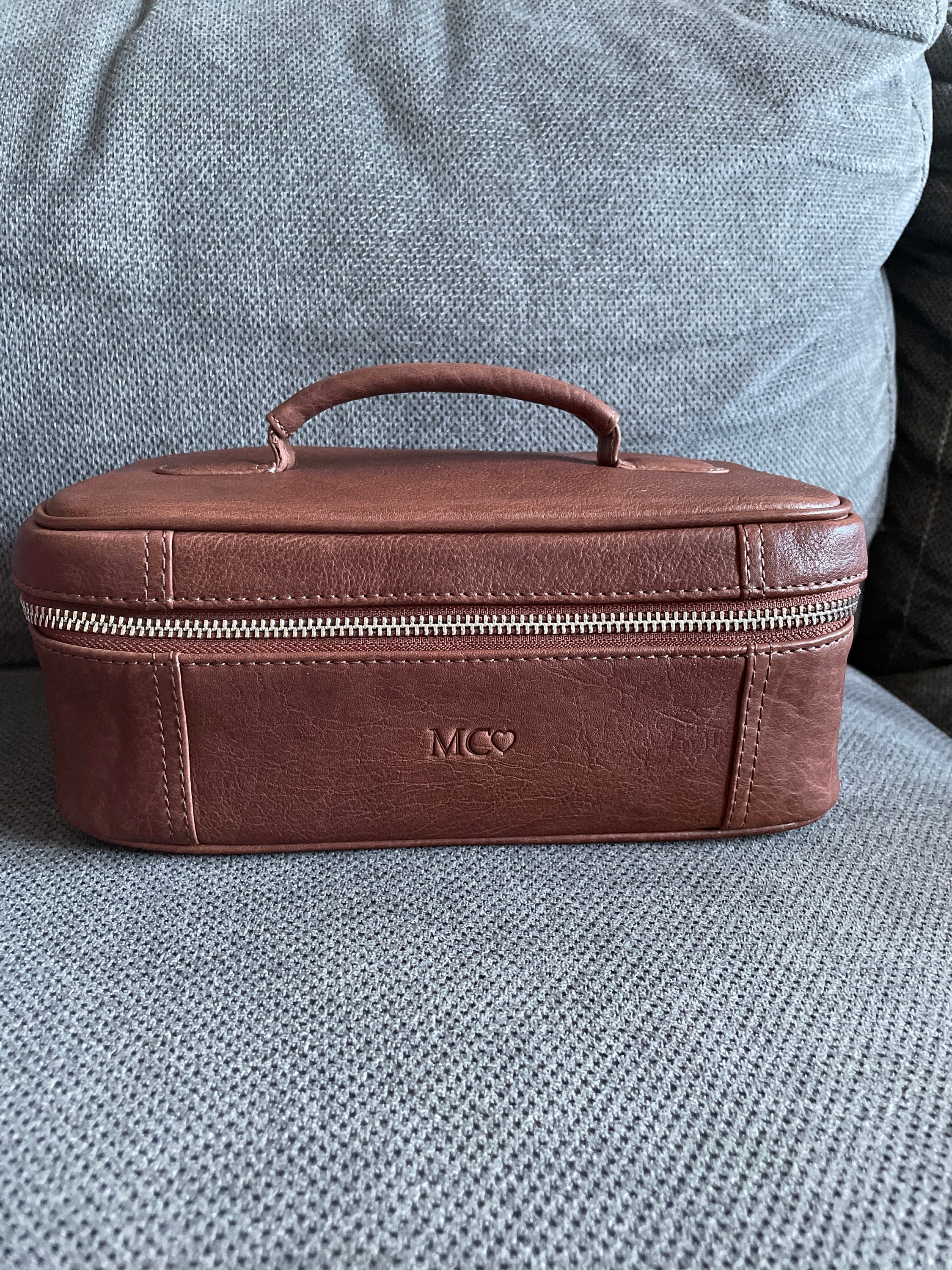 We are happy to personalize the leather makeup bag with your initials. Personalized makeup bags also make great anniversary gifts and groomsmen/bridesmaids gifts, and are always appreciated by spouses and parents. Please follow the personalization instructions below.