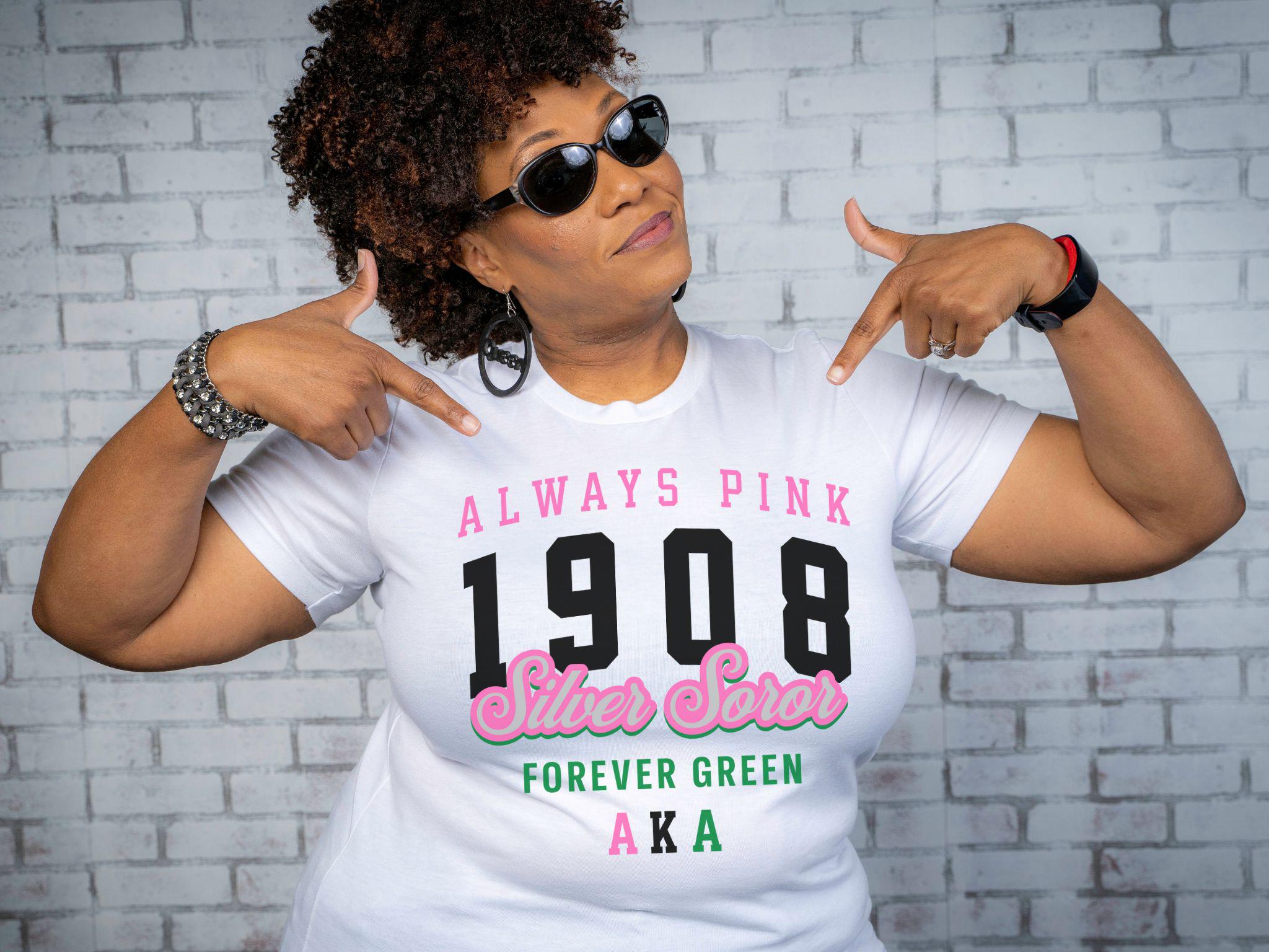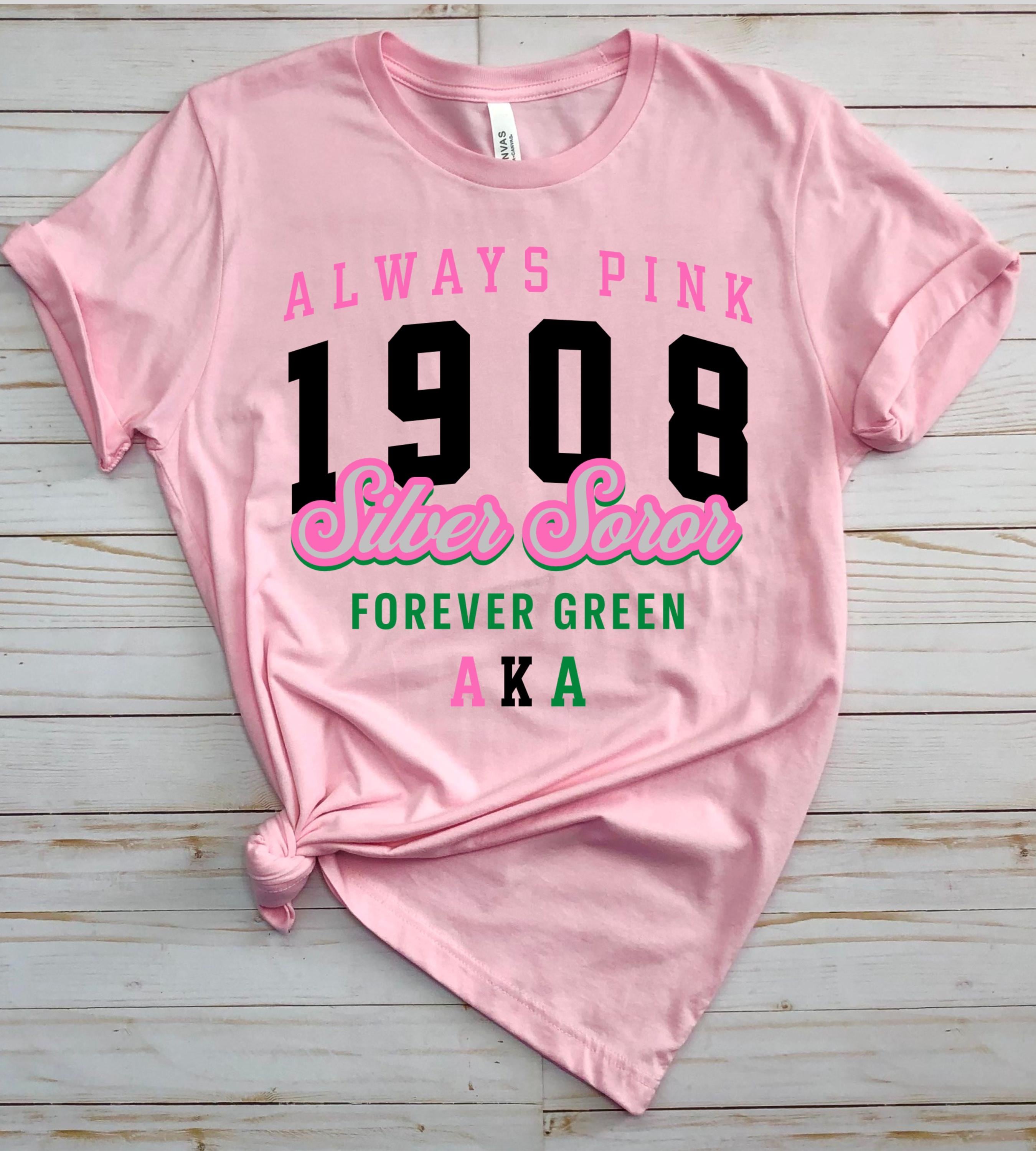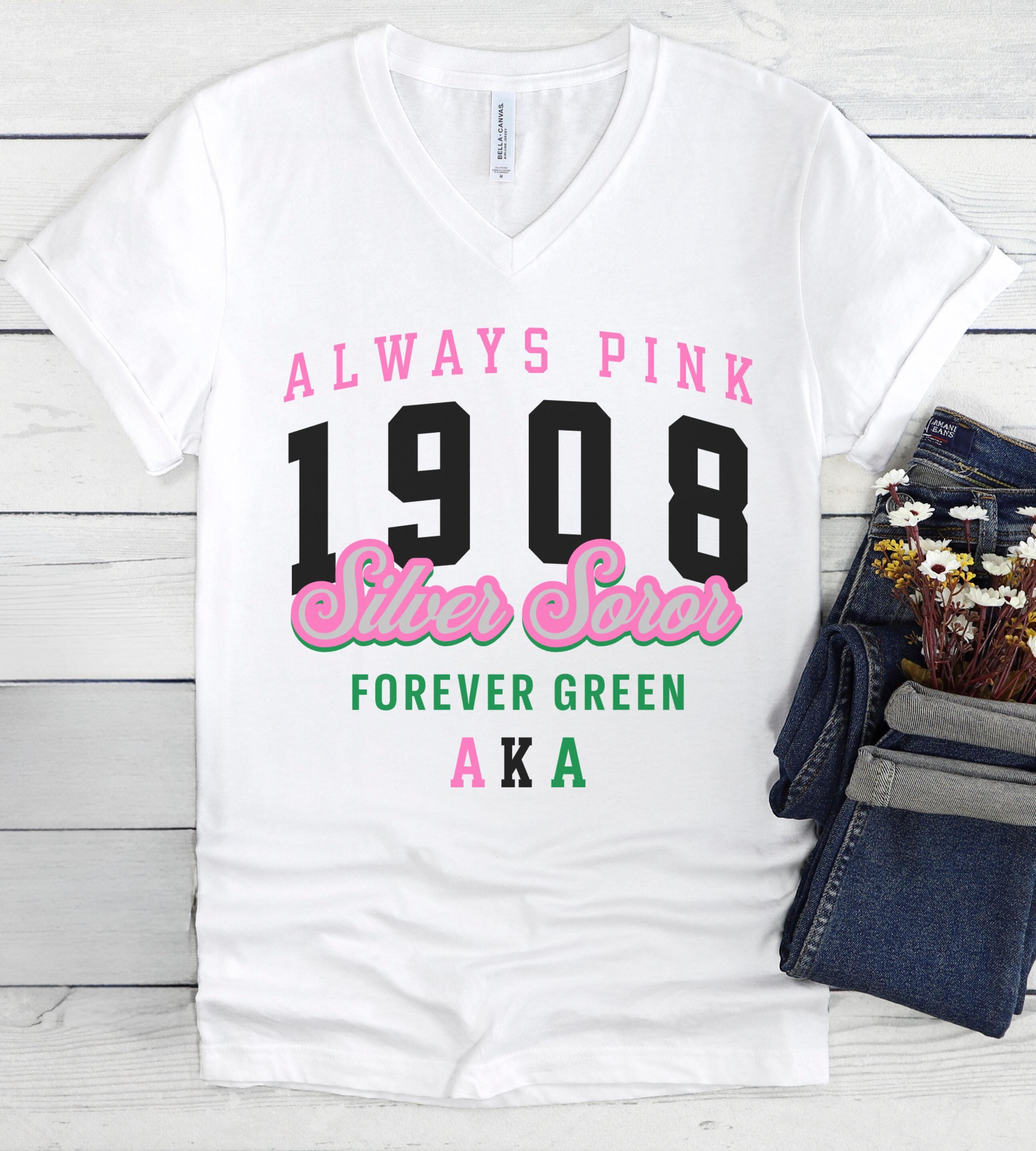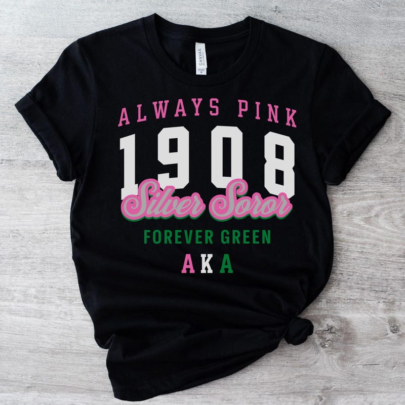 Show off your Alpha Kappa Alpha Silver Soror style with this 1908-inspired AKA t-shirt. Designed for proud sorority members and their families, this t-shirt celebrates the heritage and pride of AKA. Whether for a family event, Greek gathering, or everyday wear, it's the perfect nod to the rich history of Alpha Kappa Alpha Sorority, Inc.