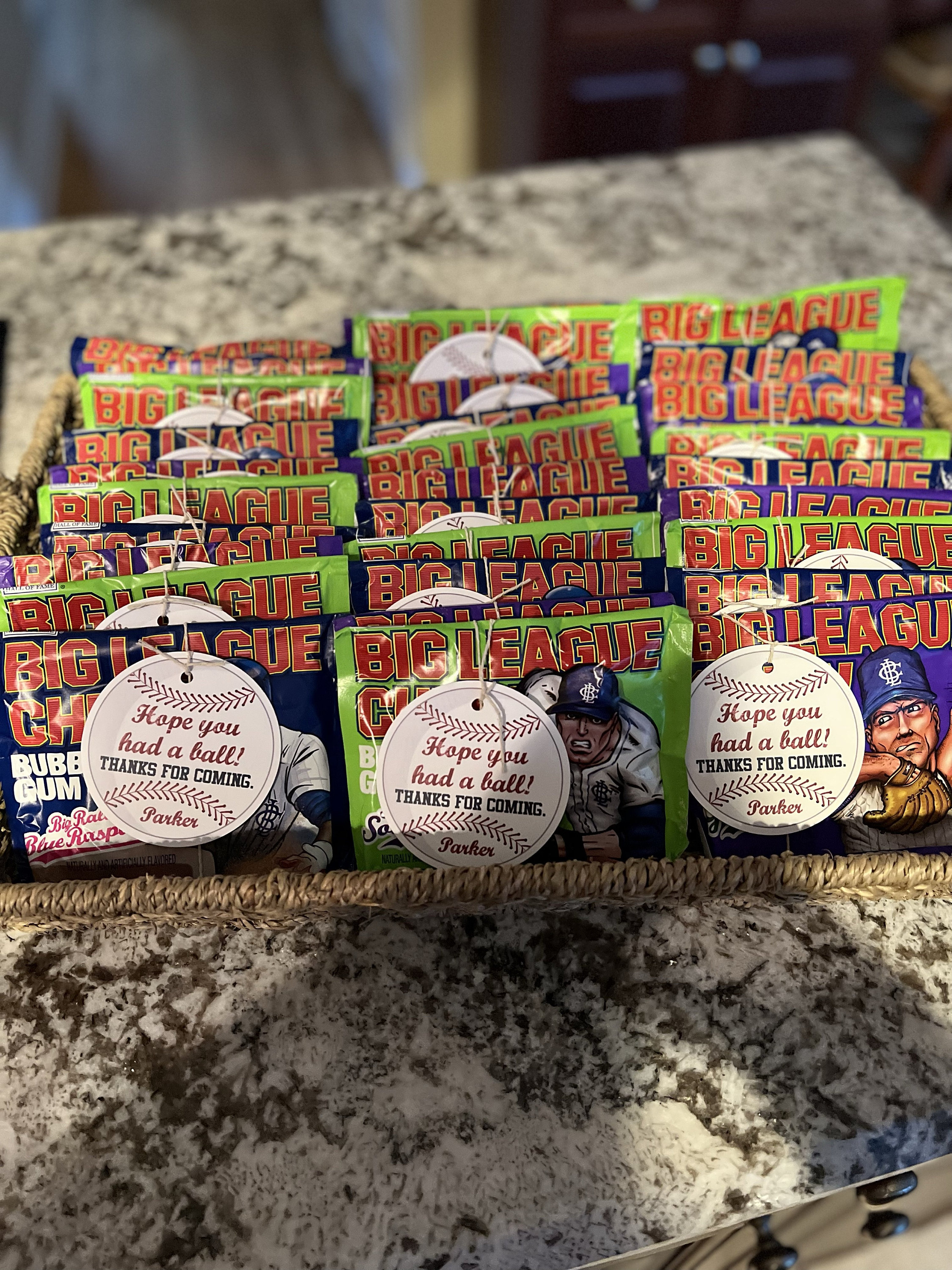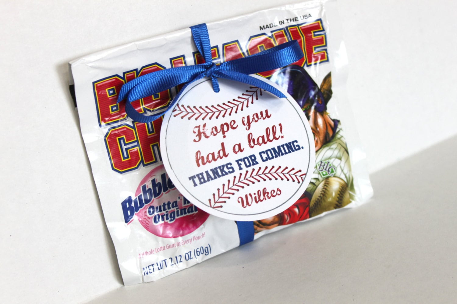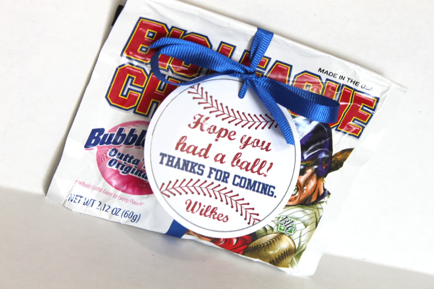 Each tag features a baseball image and personalized with the birthday child's name. The finished tag is 3" in diameter and comes with a hole punch at the top of the tag. Ribbon or baker's twine can threaded through and tied to your favor or snack.