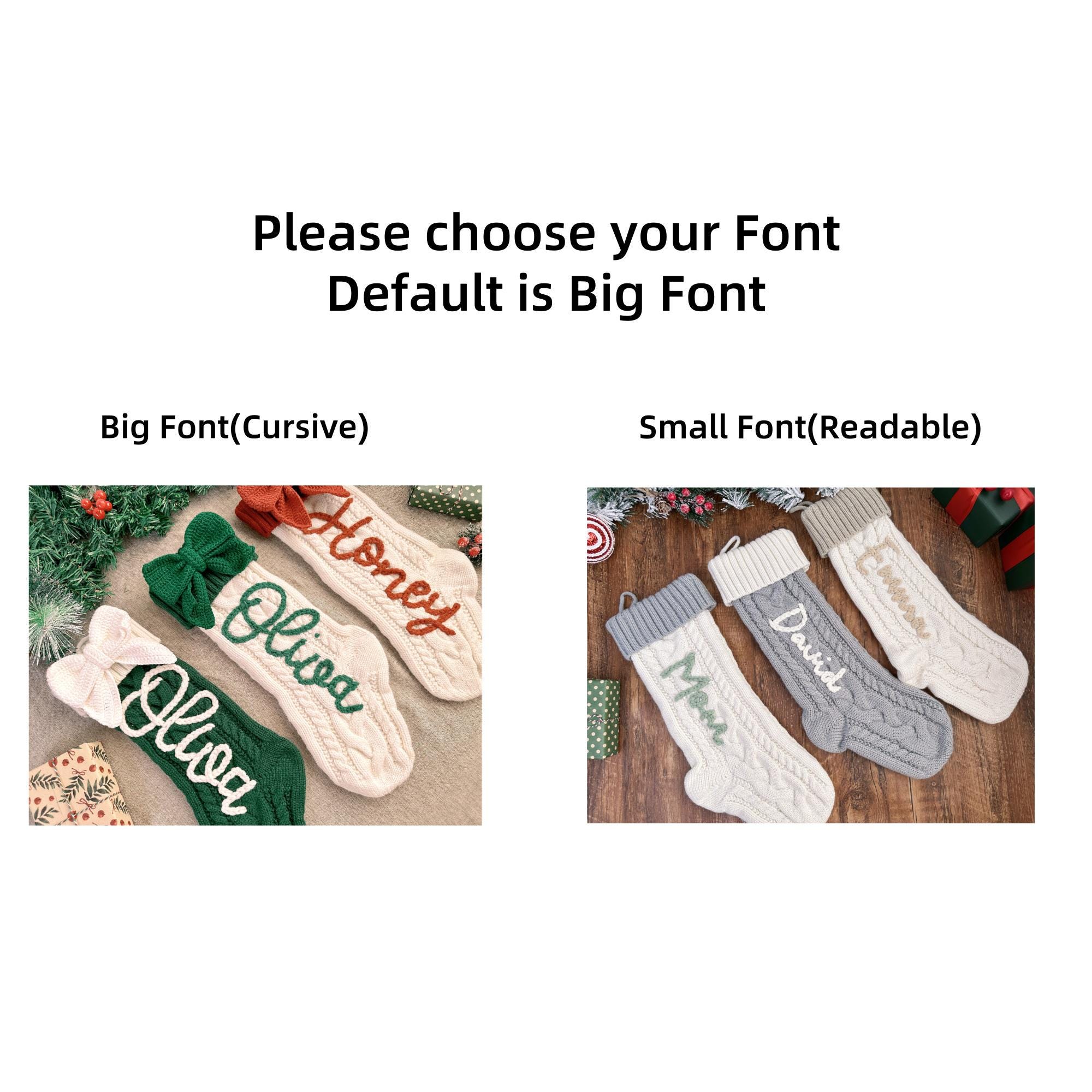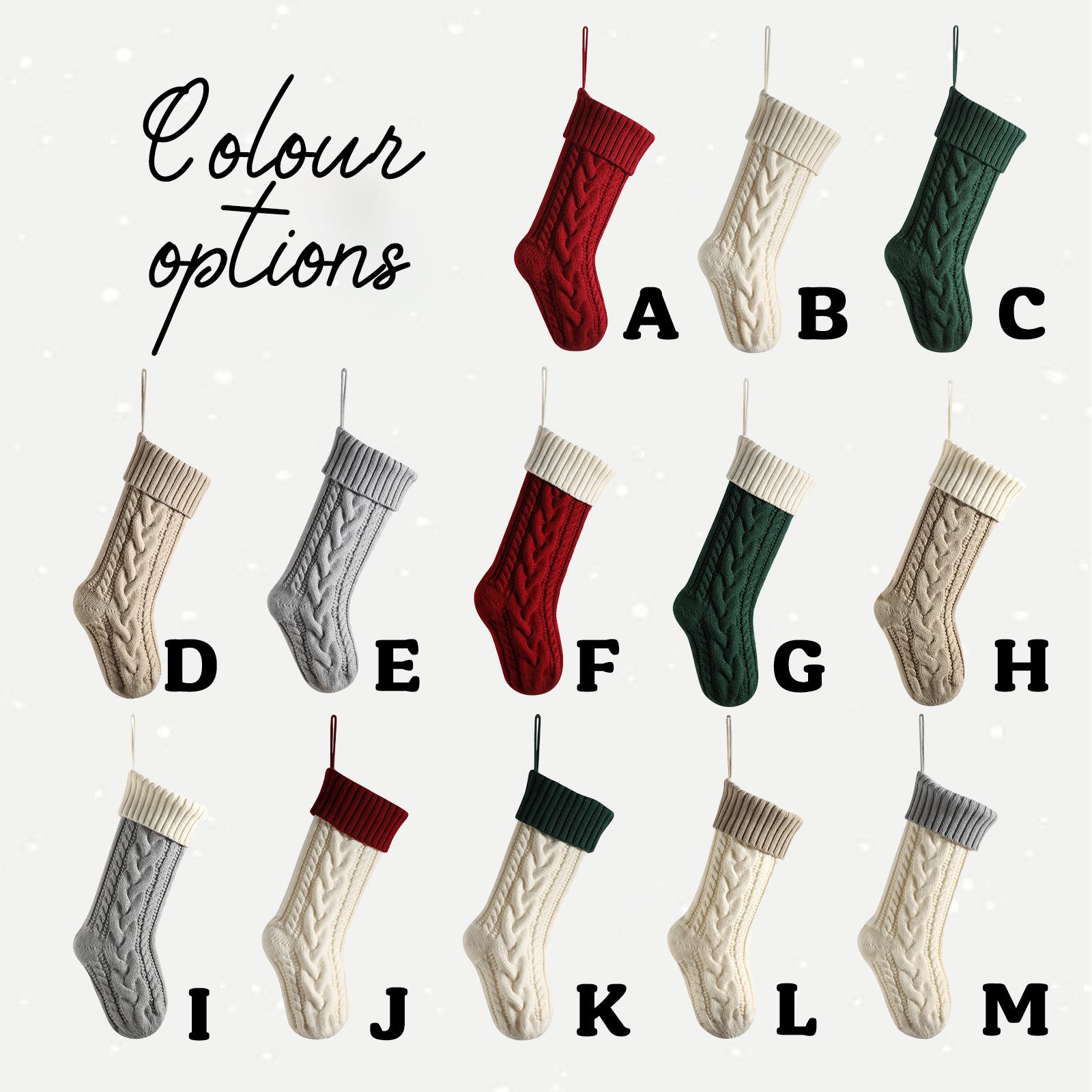 Add a unique touch by having names or initials hand-embroidered on your stockings, elegantly displayed on the body of the stocking just for you. 📜✒️ You also have the option to select a yarn color that perfectly complements your holiday décor, bringing more creativity and warmth into your home. 🎨
