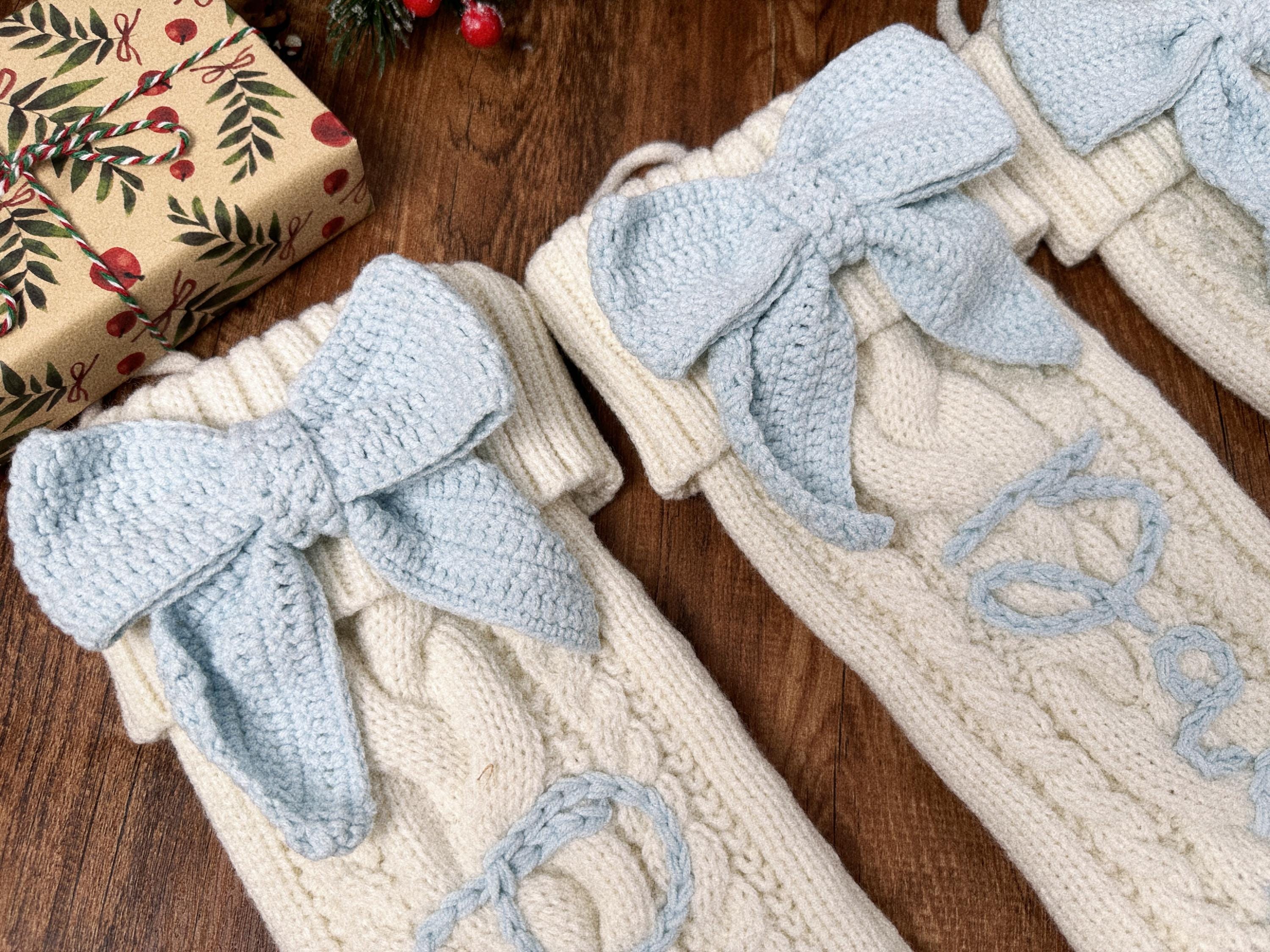 Blue Bow Personalized Christmas Stocking,Hand-Embroidered Holiday Stocking,Stocking Stuffer with Custom Name,Family Stocking Stuffer Gift