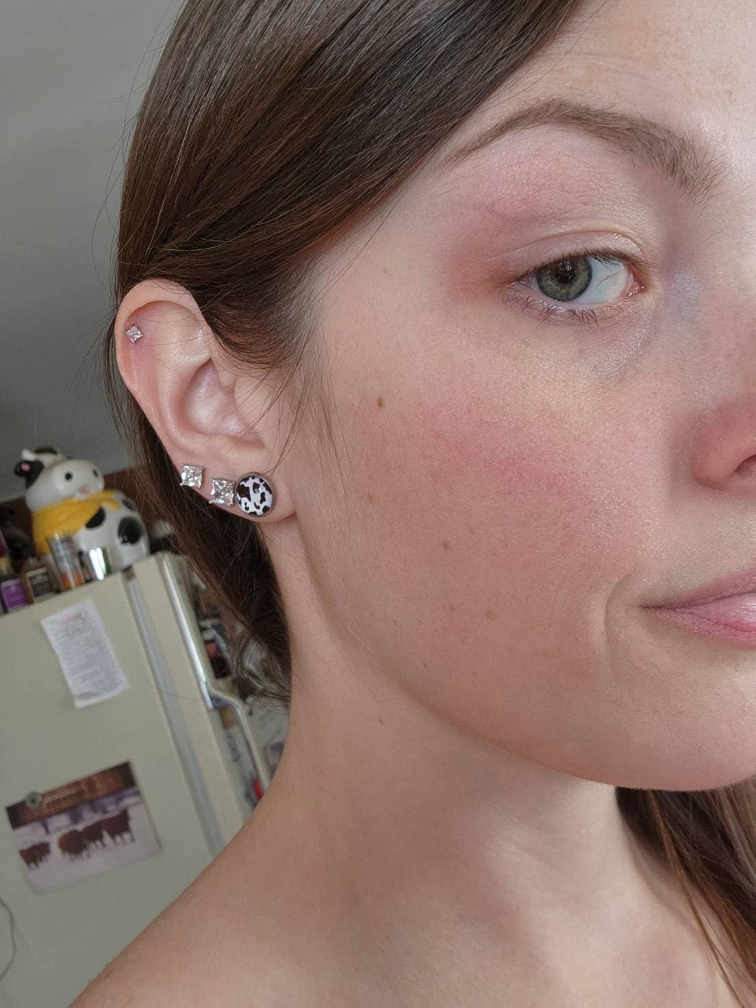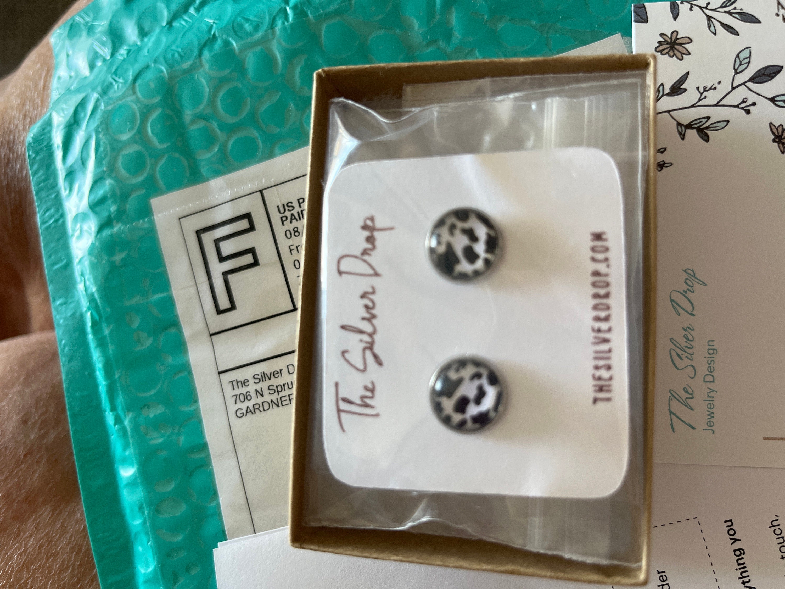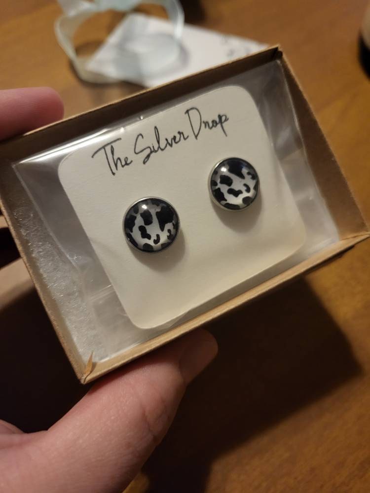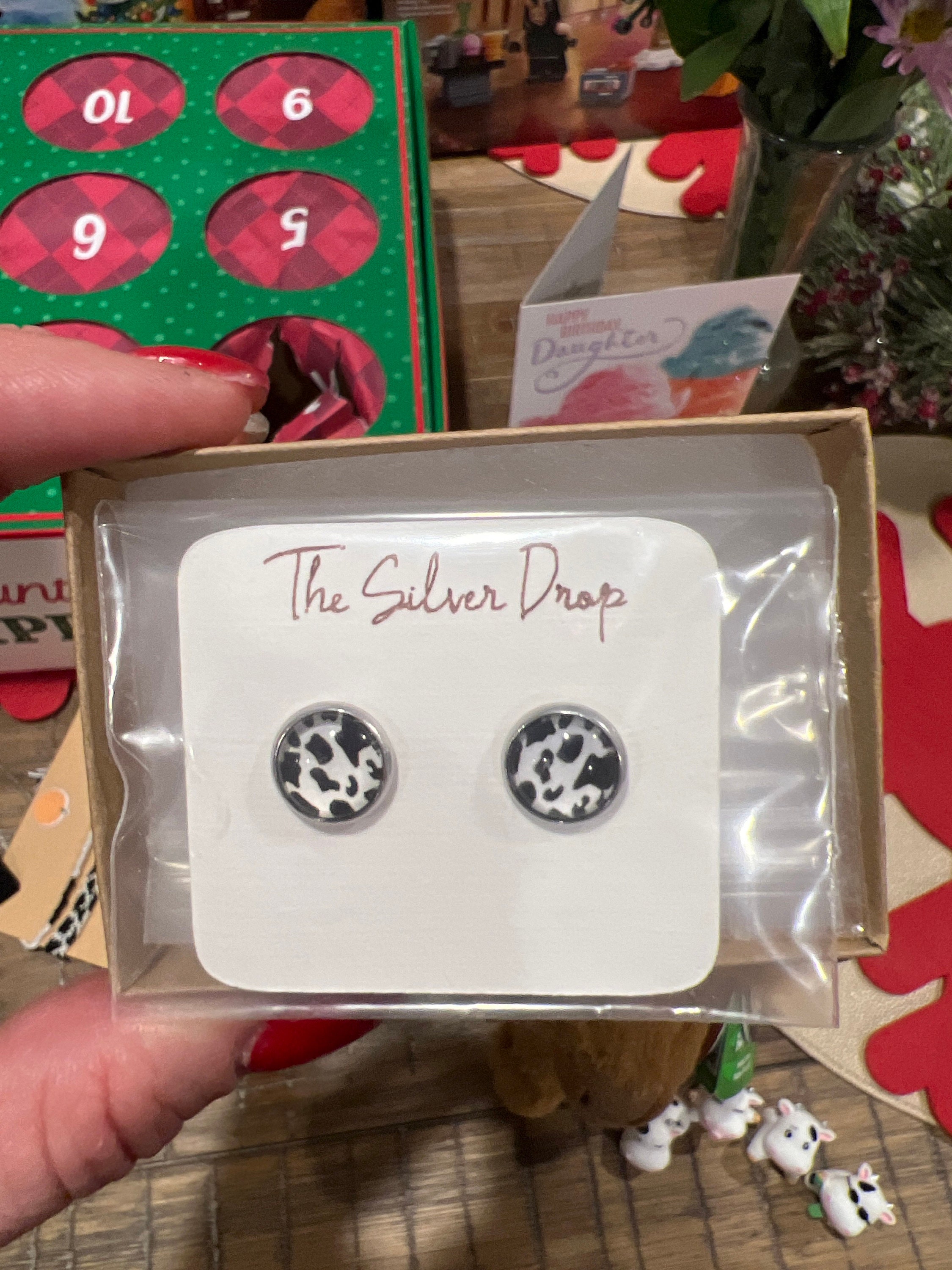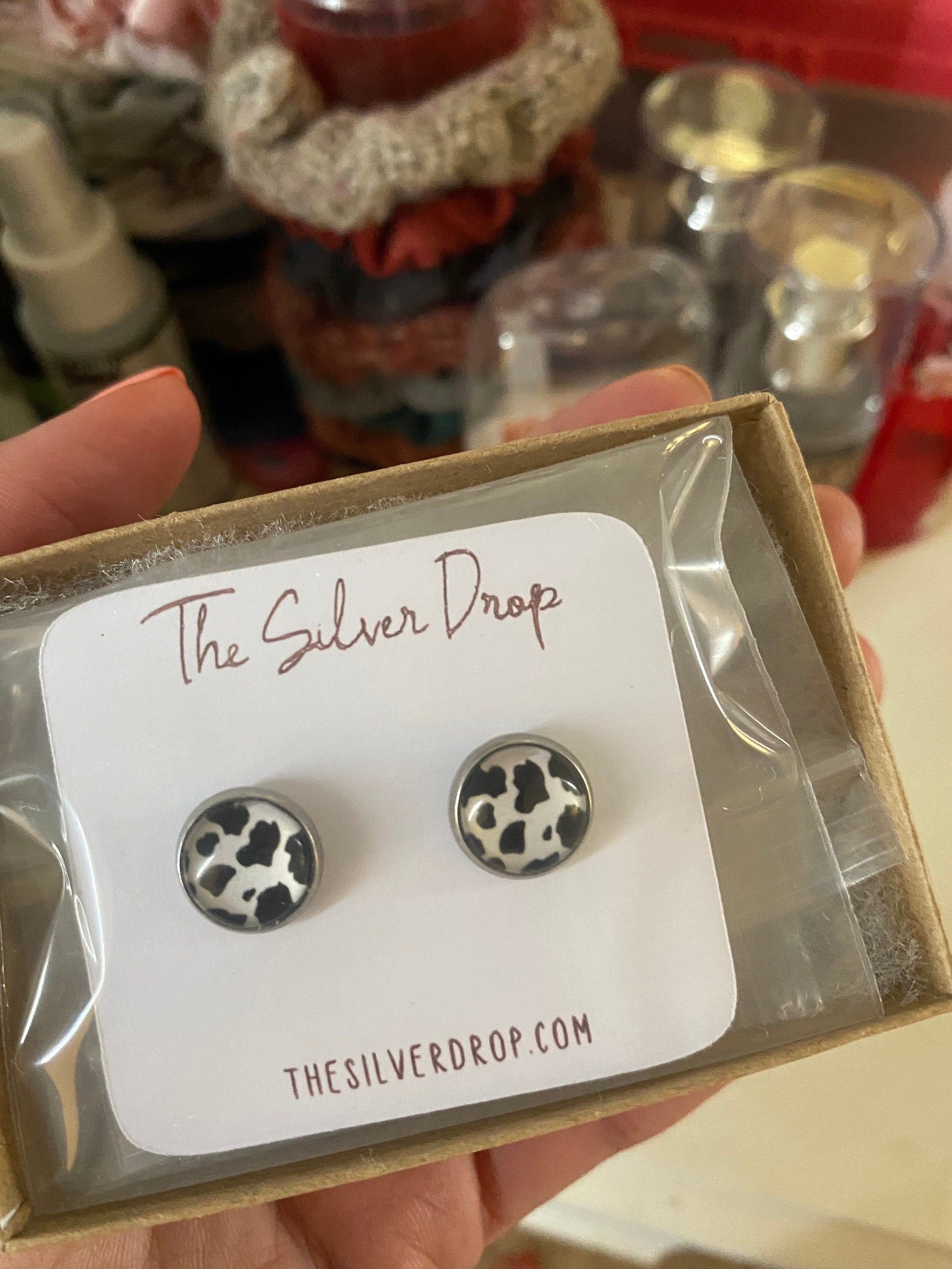 Cow Print Glass Dome Cabochon Stud Earrings. These handmade earrings are the perfect size, not too big or too small. They are so cute and perfect for gifting! The perfect gift for cow lovers!