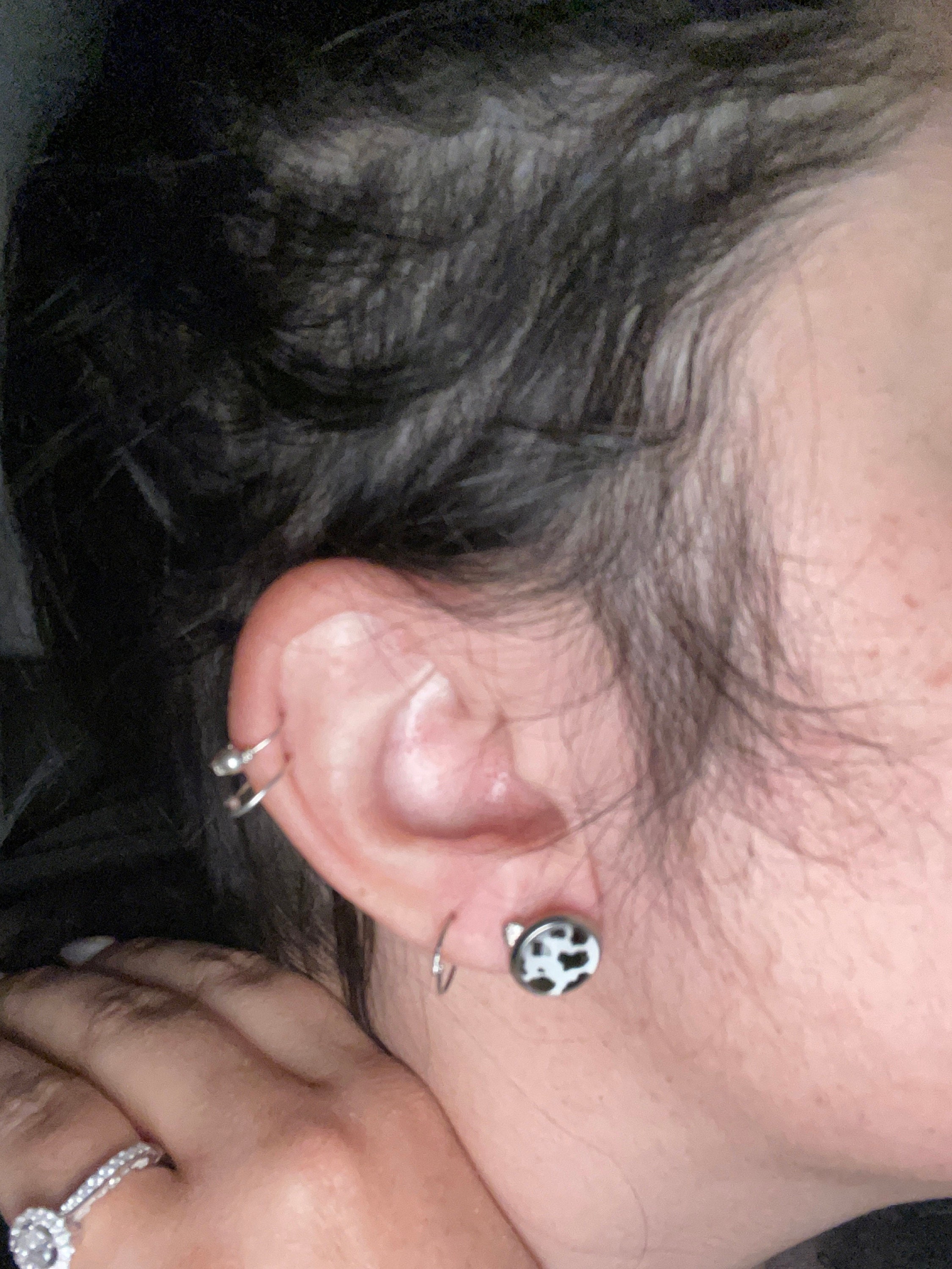 •Stainless steel is great for sensitive ears and won't tarnish.