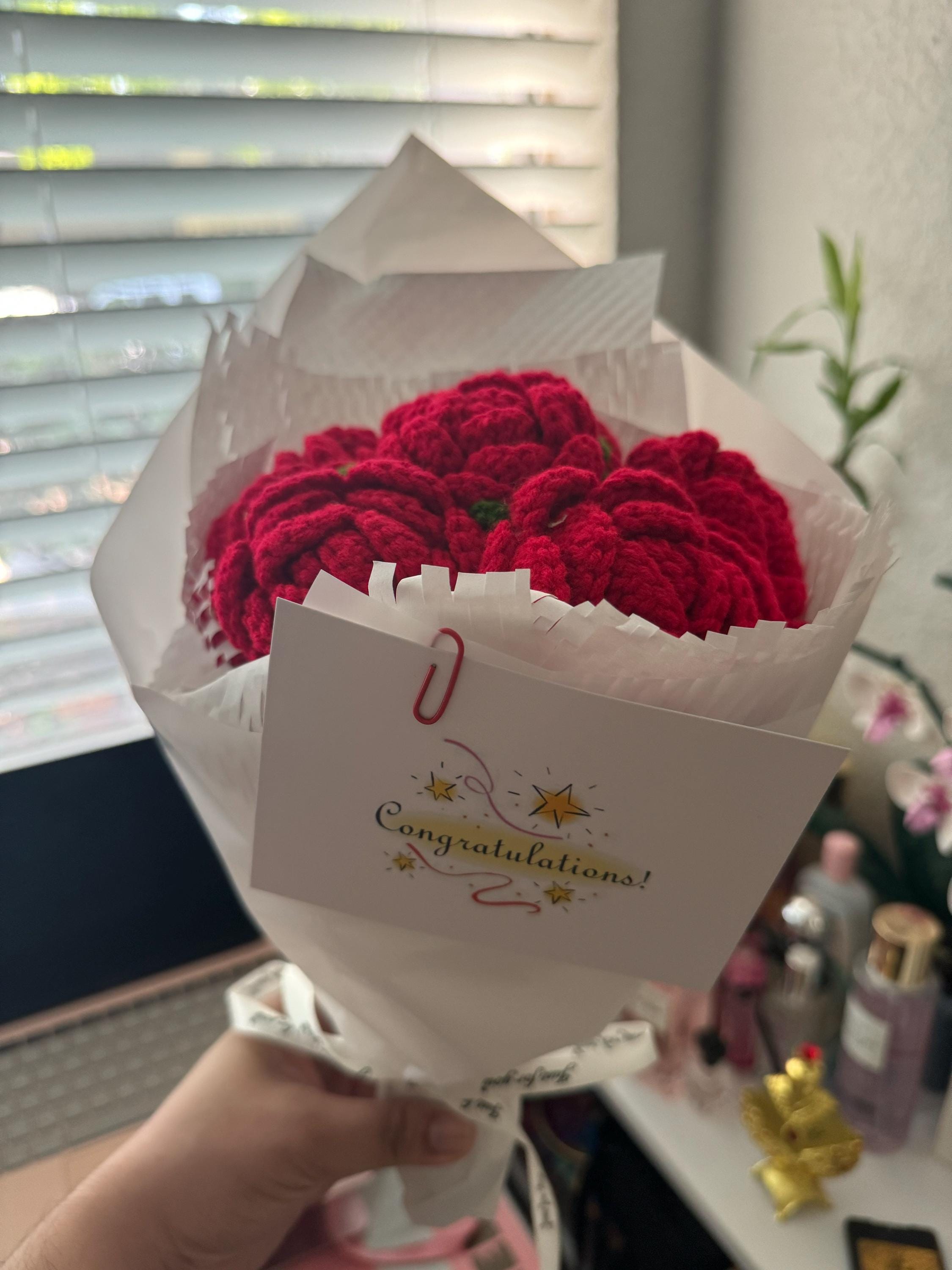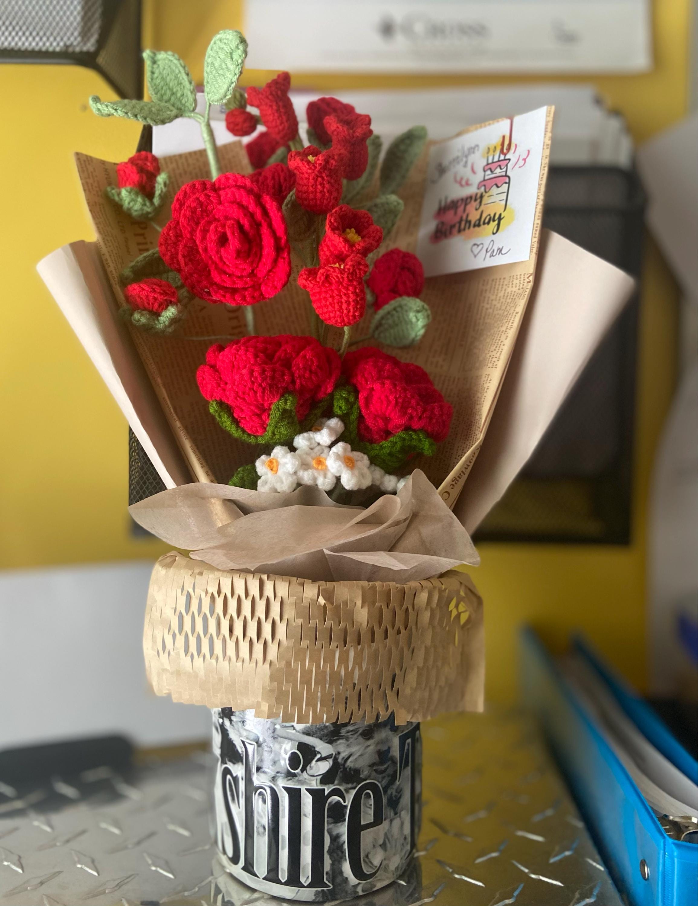 This is a finished product! Handmade crochet flowers can be cherished forever! Love your loved ones till these flowers wilt! Each piece is unique and tells a story, making them a timeless and meaningful addition to any space or occasion!