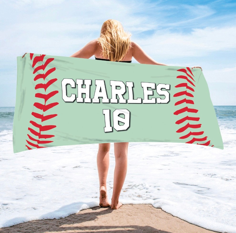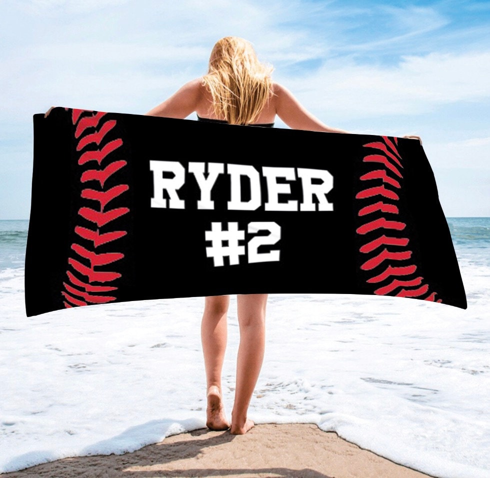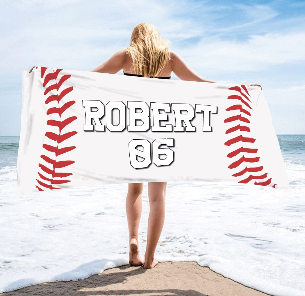 Custom Baseball Team Name Towel ,Custom Name Beach Towel ,Personalized Pool Towel, Kids Birthday Gift ,Baseball Team Logo, Number Name Towel