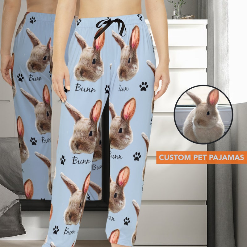 Custom Bunny Pajama Custom Rabbit Portrait Pajama Set for Family Christmas Pajama Custom Rabbit Pattern Pajama for Women Men Pajama Pants