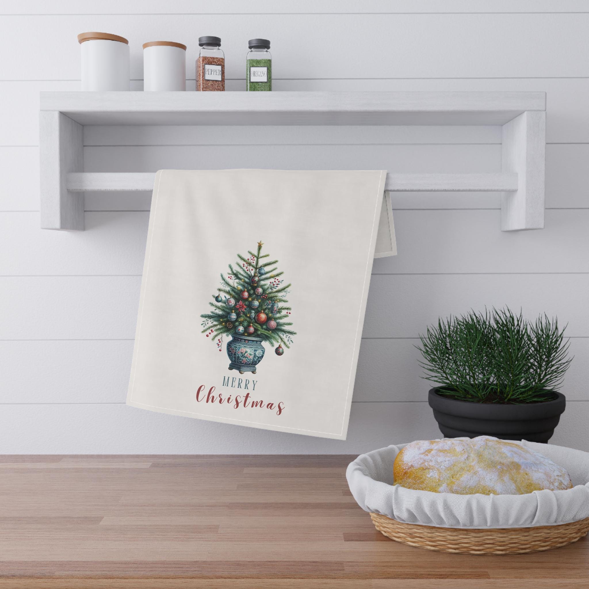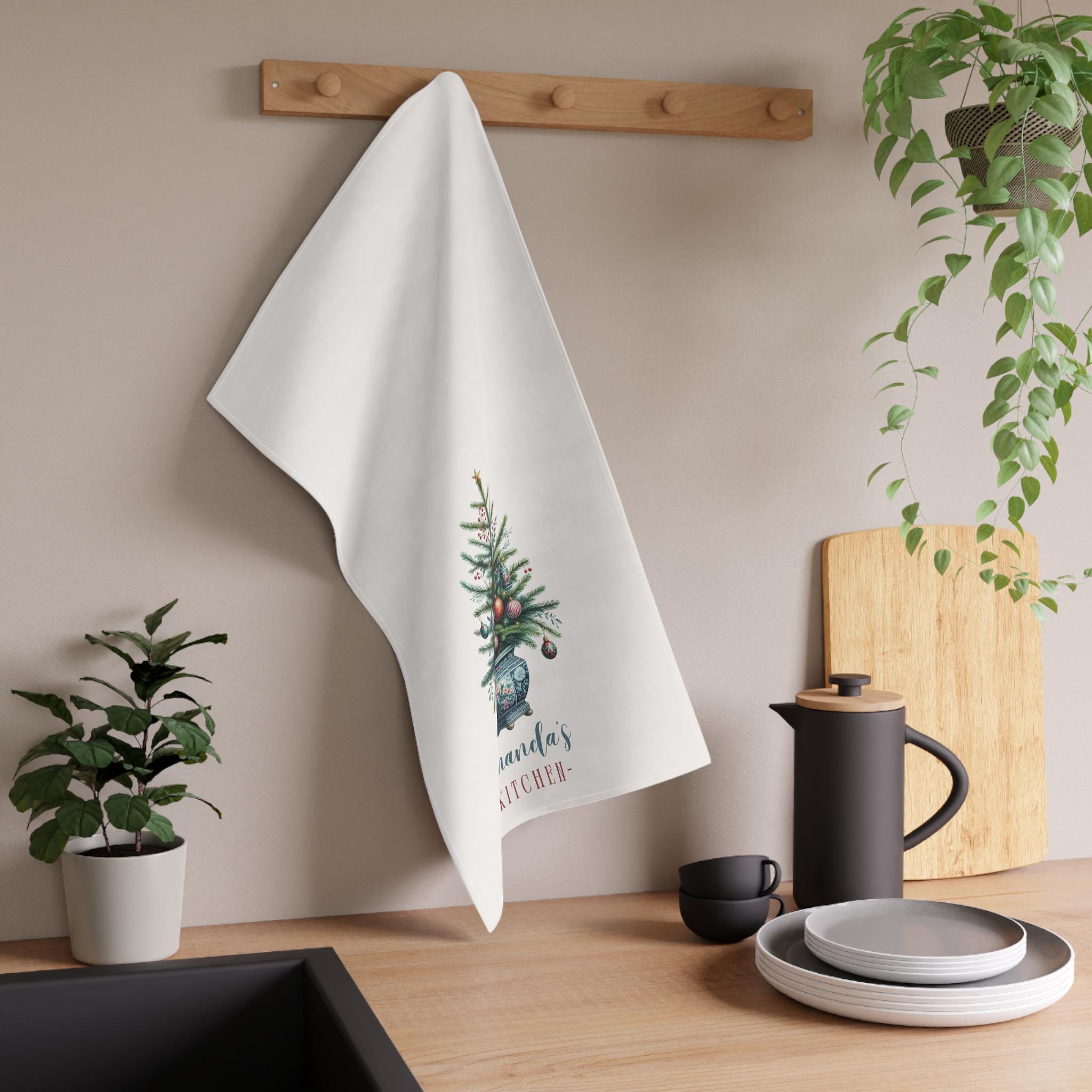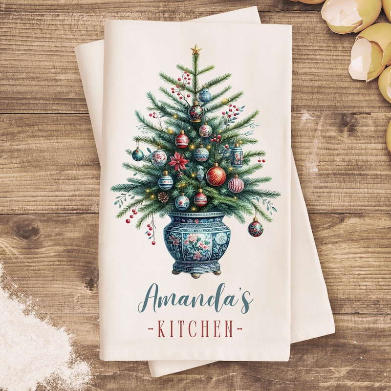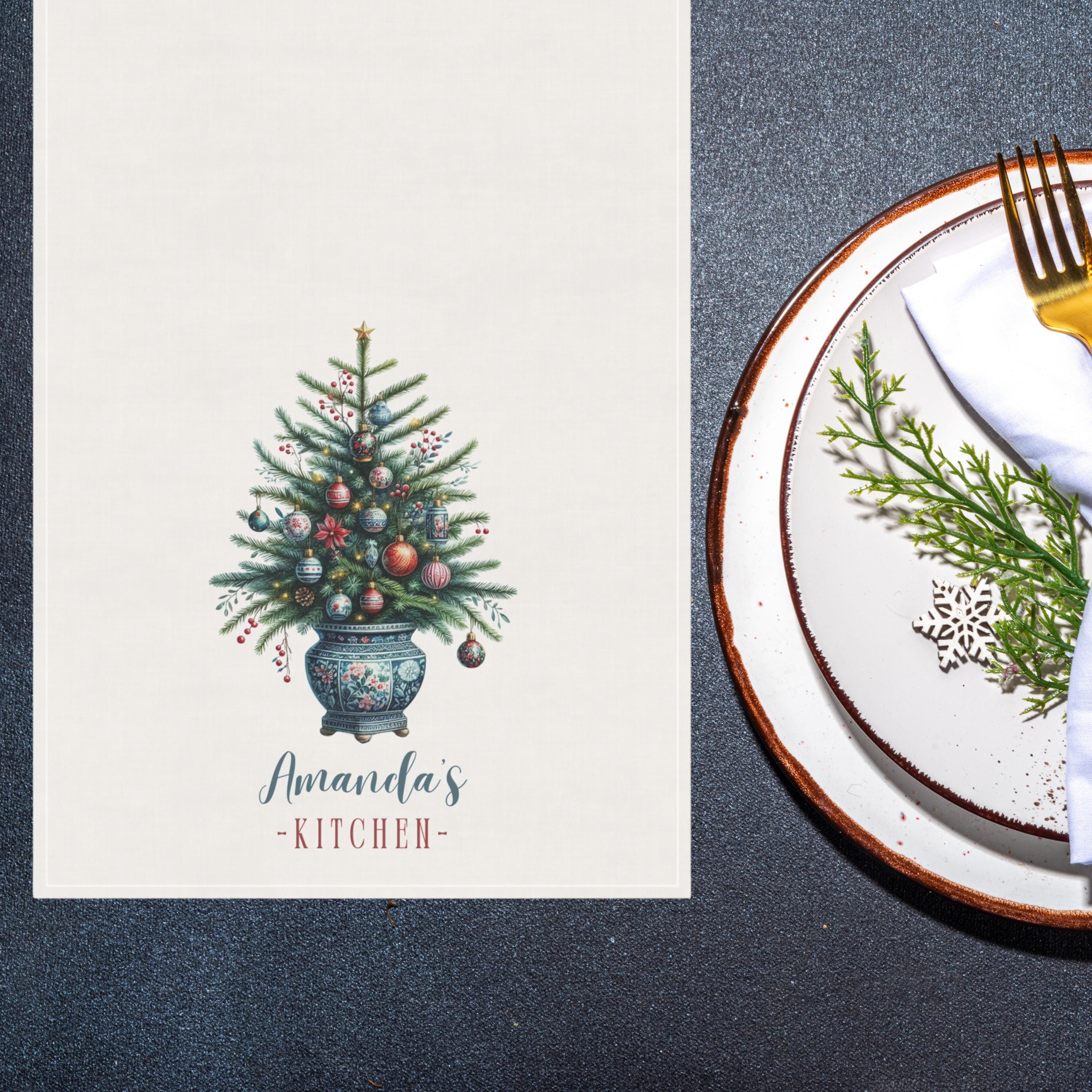 Custom Kitchen Towel Personalized Tea Towel Christmas Towel Chinoiserie Christmas Tree Gift Custom Name Towels Towel with Family Name