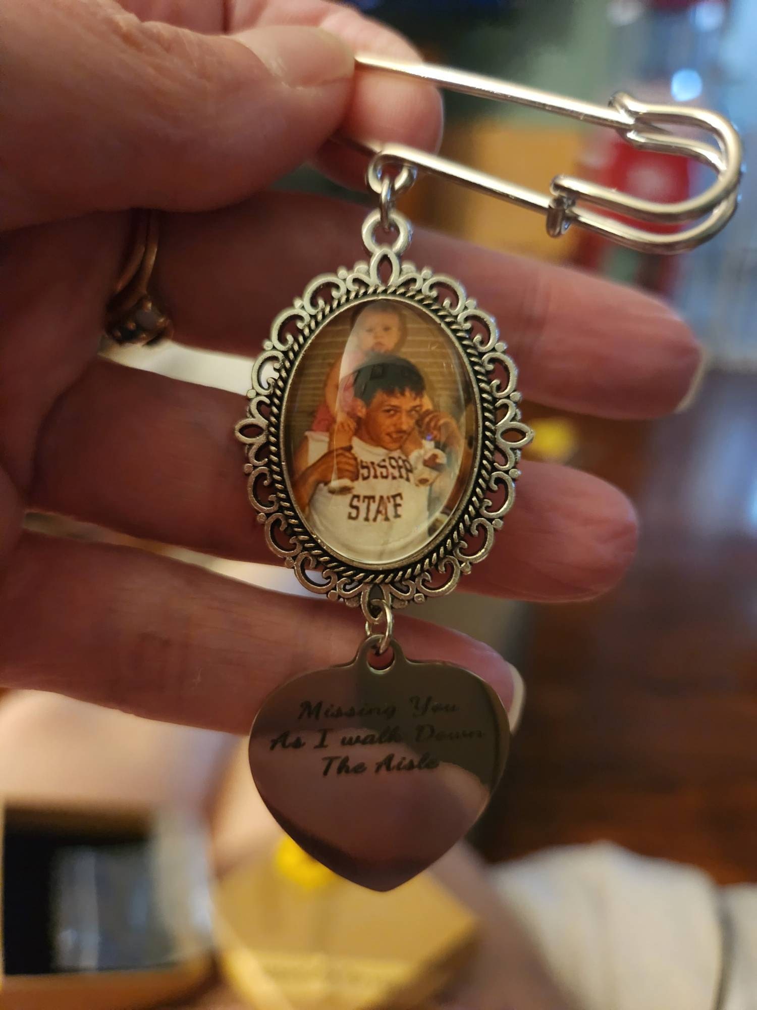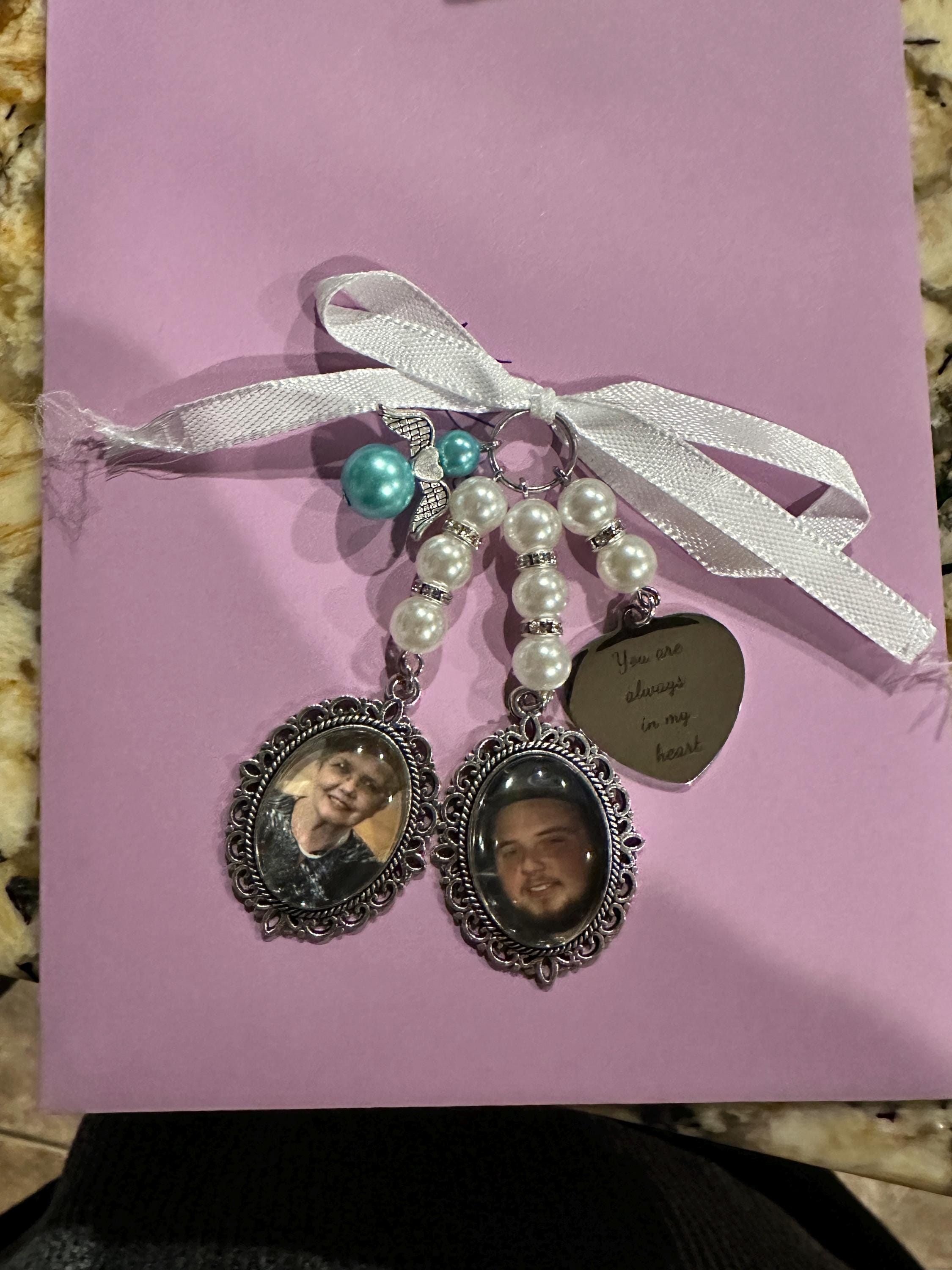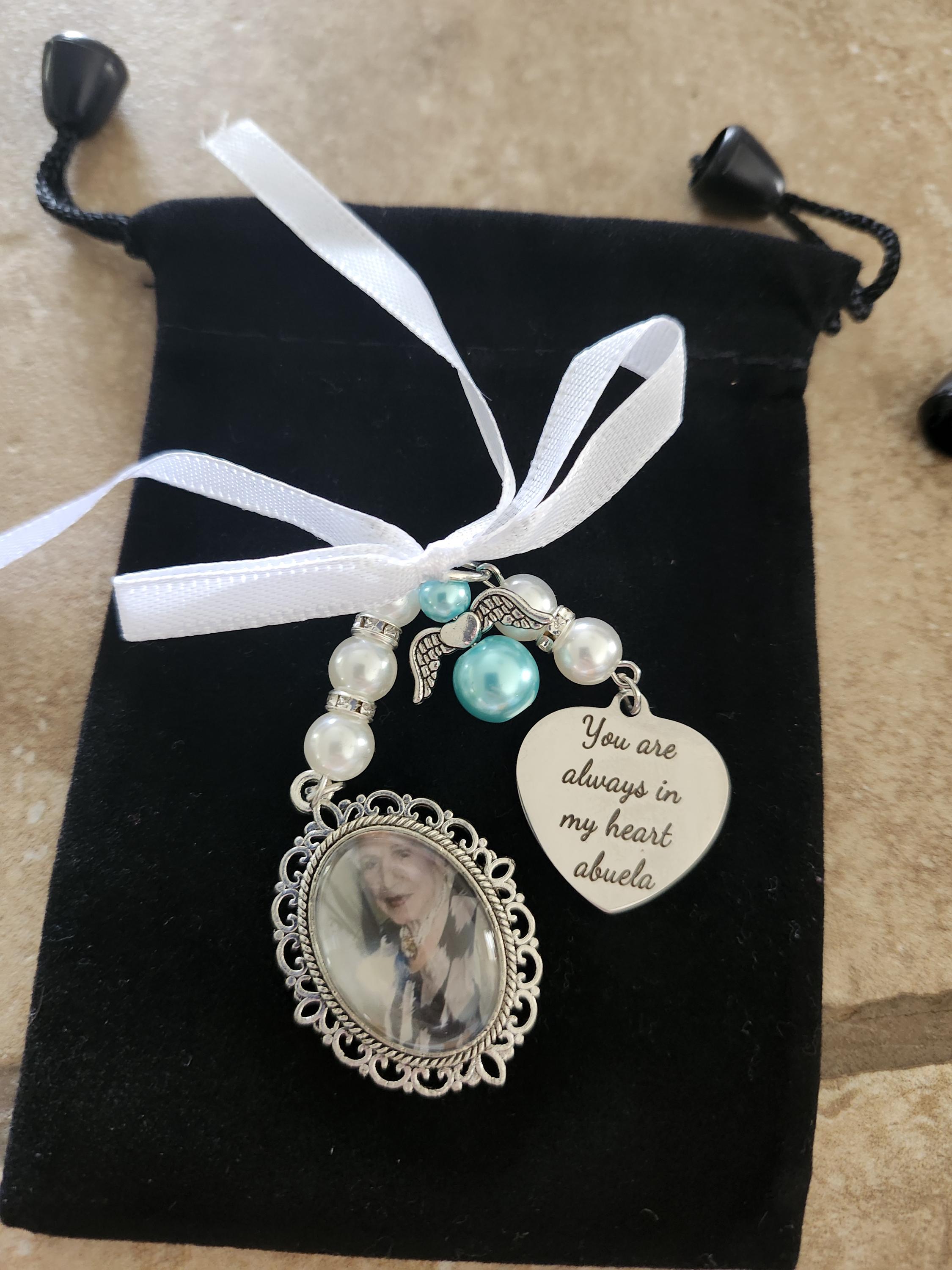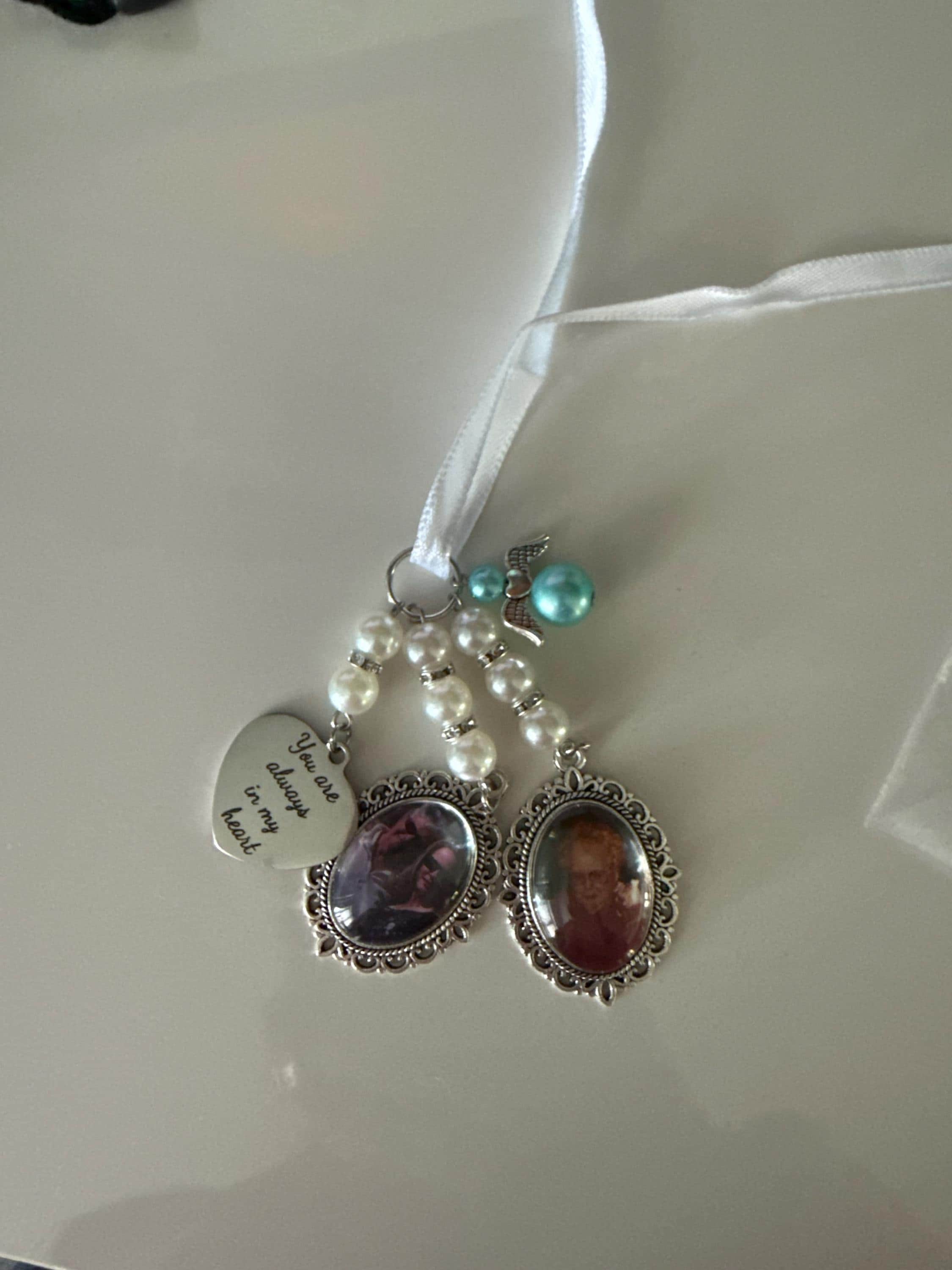 This memorial bridal bouquet ornament is the perfect way to bring your loved ones together on their special day. These lapel pins can be customized with 1-3 cherished photos, making them an intimate keepsake that captures special memories. It can be tied or pinned to the bouquet so their memories are close at hand. Your photo is printed directly onto the ornament, creating a lasting keepsake. It will be ready to use, this is not a DIY kit.