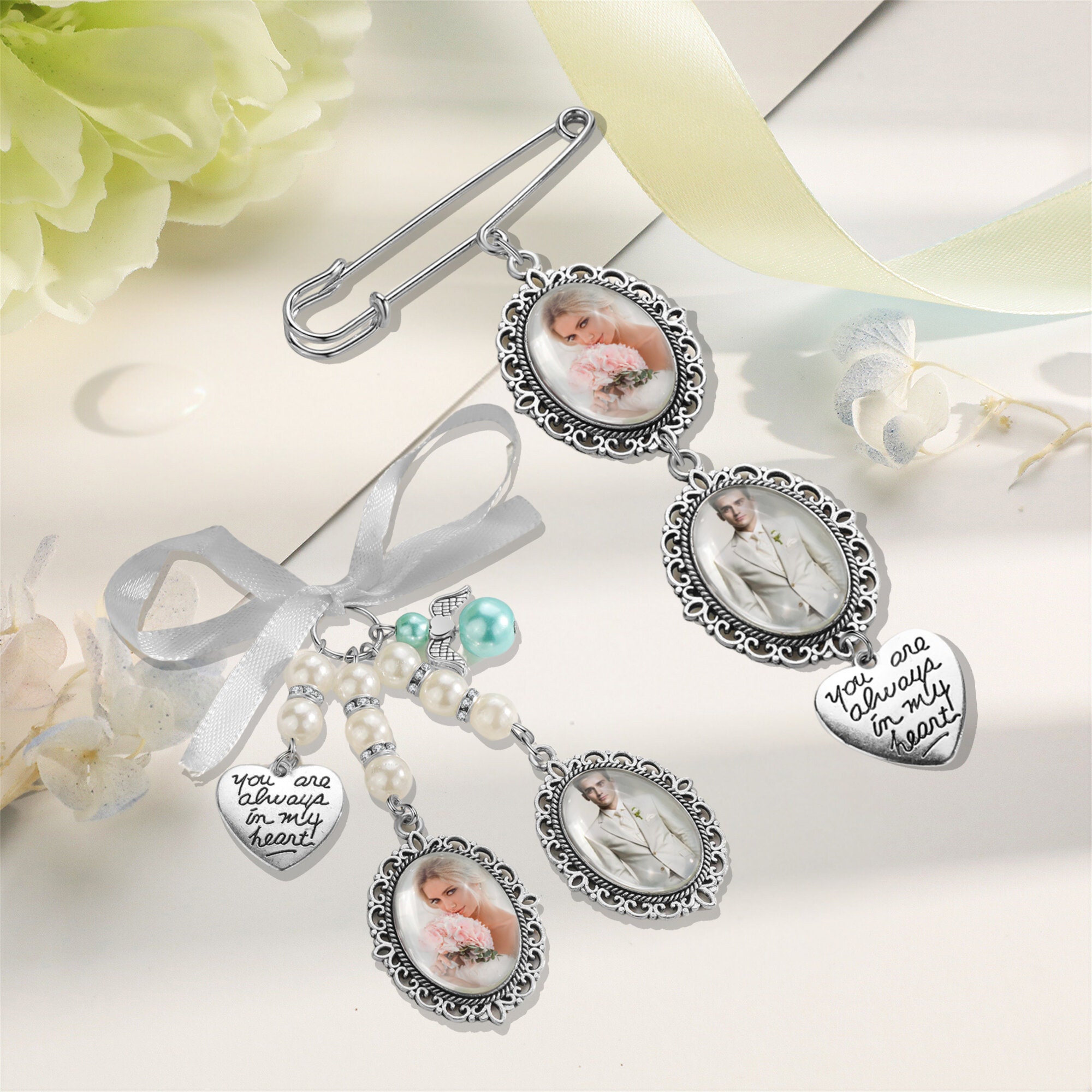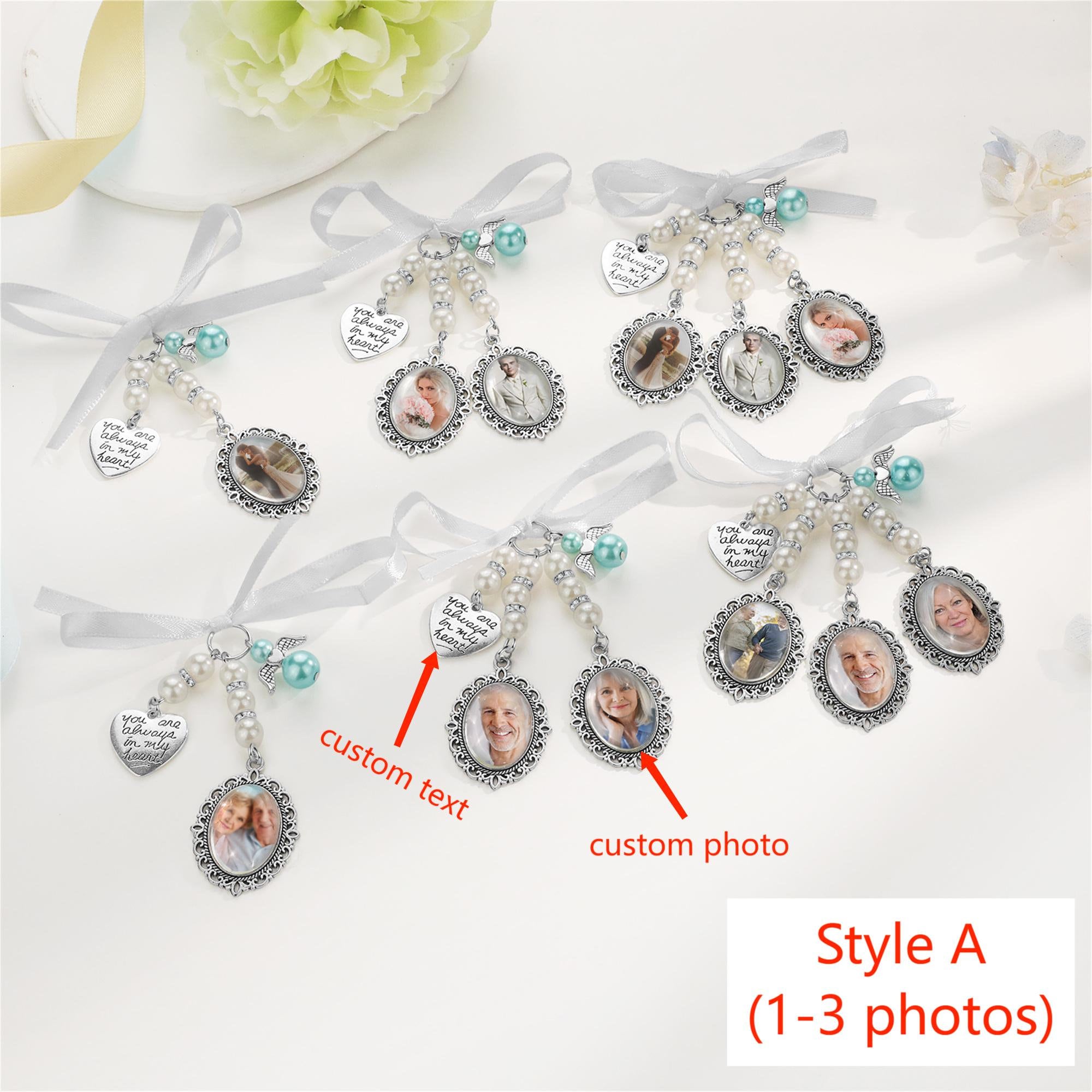 Customized Photo and Text Bridal Bouquet Ornaments, Bouquet Memory Ornaments, Bouquet Photo Ornaments, Memory Memorial Pins, Wedding Memorial Gifts