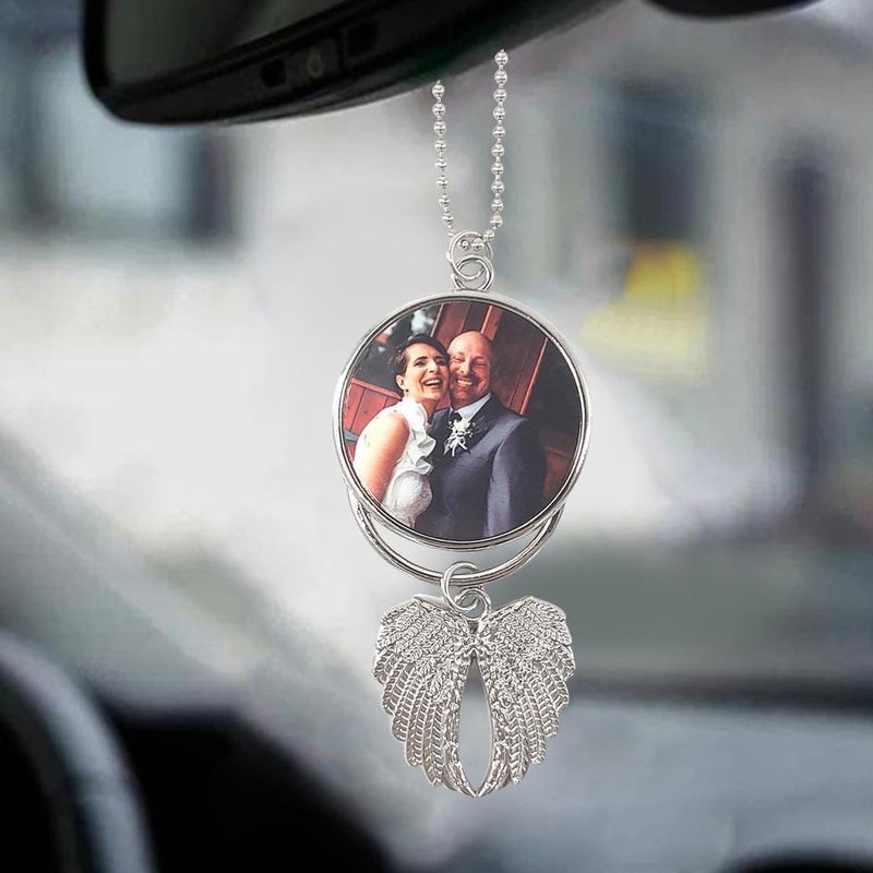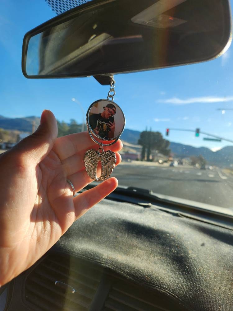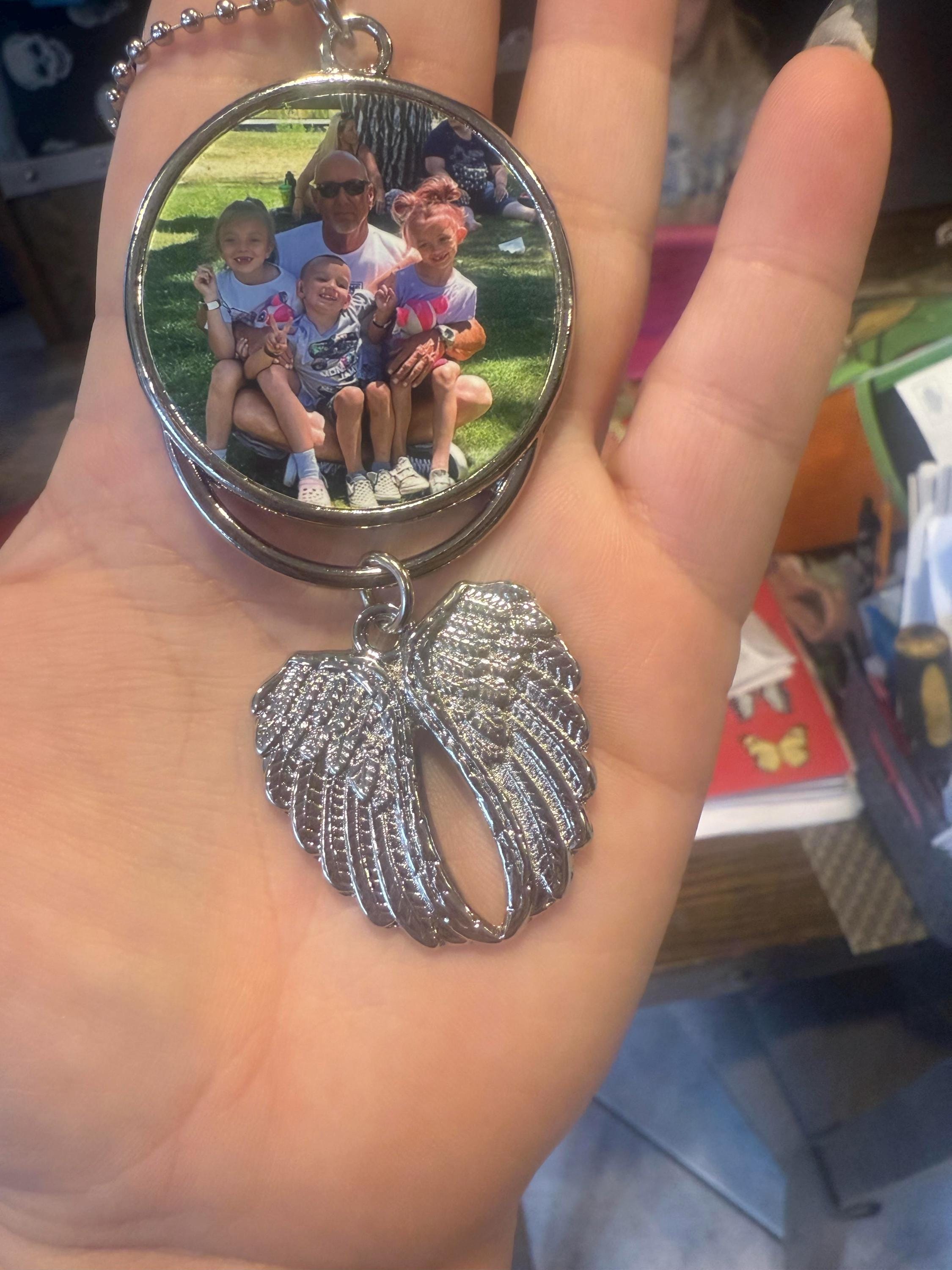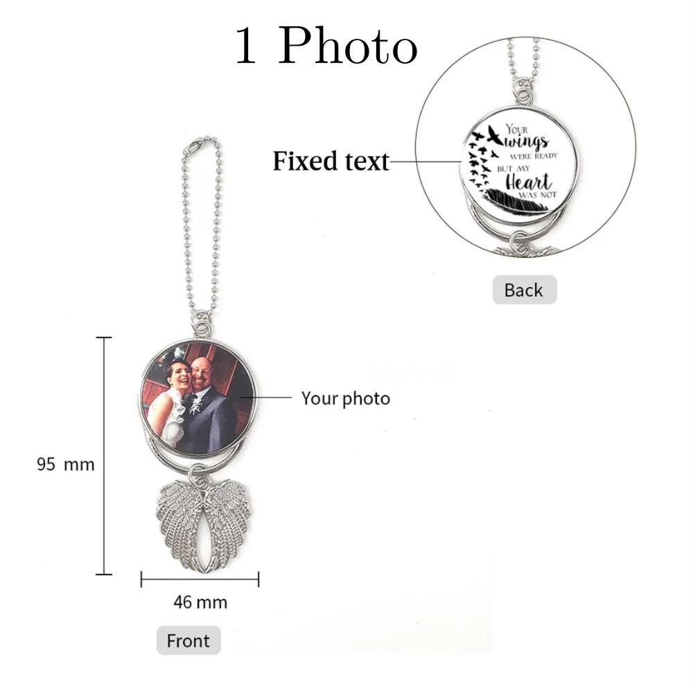 Customized Photo Angel Wing Memorial Pendant, Photo Keychain, Customized Rearview Mirror Pendant, Memorial Keychain, Memorial Keychain