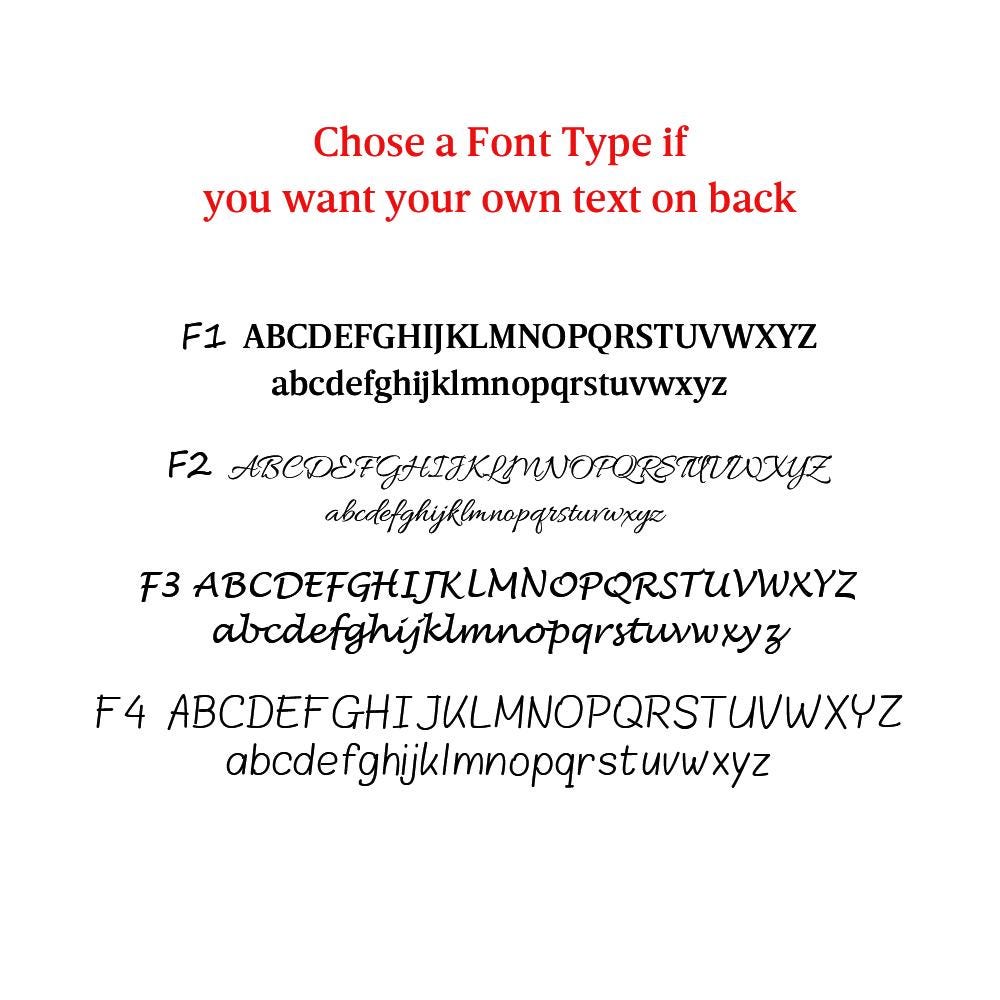 2. If you order the "Photo and Text" style, please write the text you want and select the font type (default is F1), if not, I will use the default text as my picture display.
