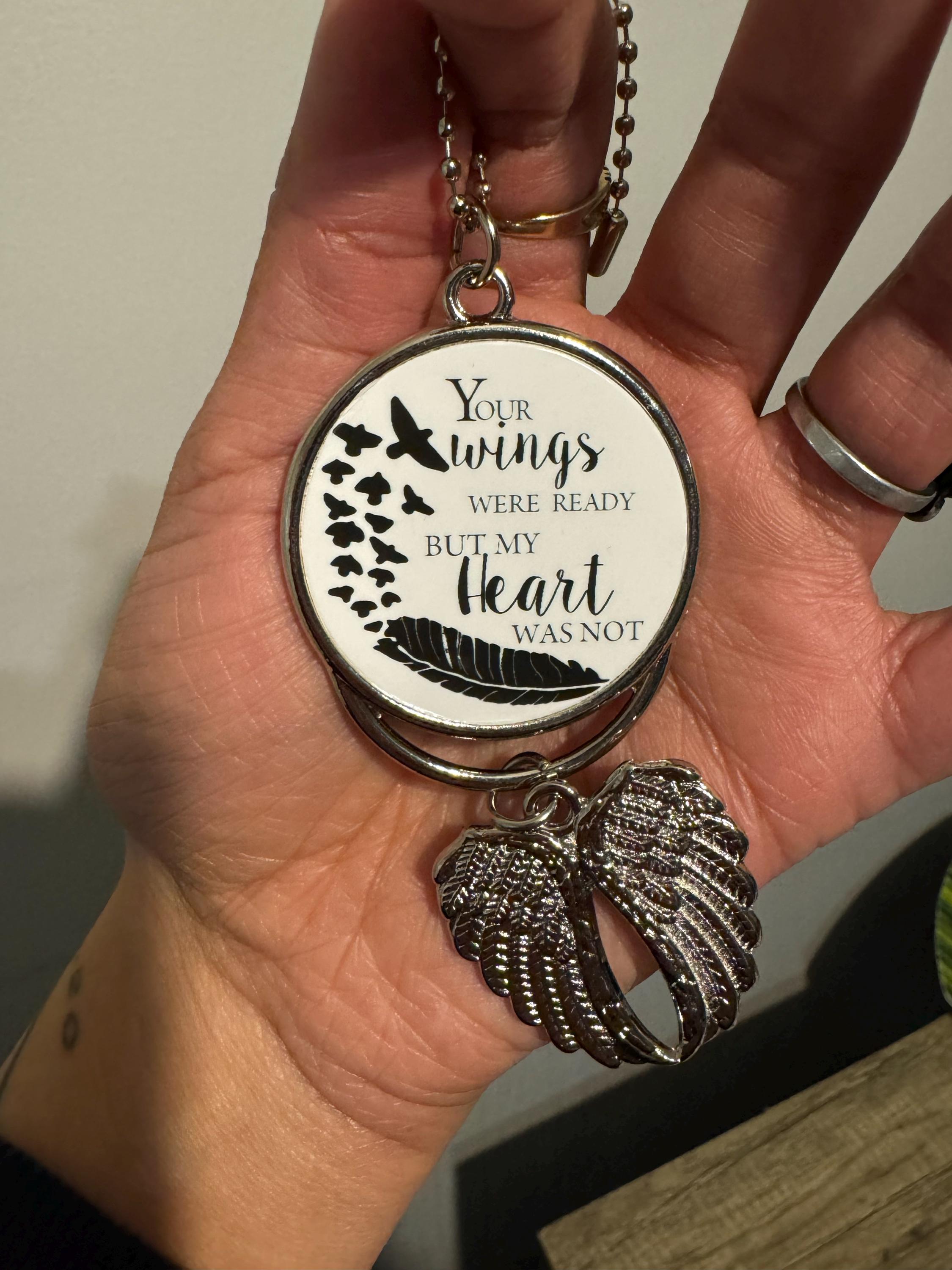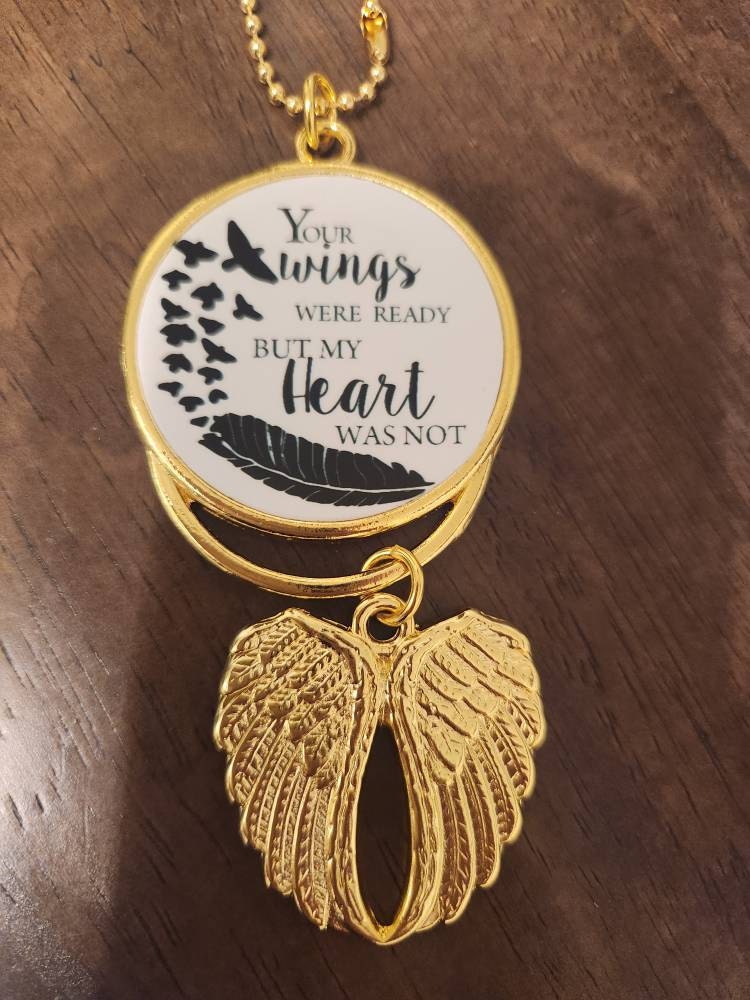 - Fixed Inscription: On the other side, the poignant phrase "Your wings are ready, but my heart is not" is elegantly prepared. This sincere sentiment acknowledges the loss while expressing lasting love and remembrance.
