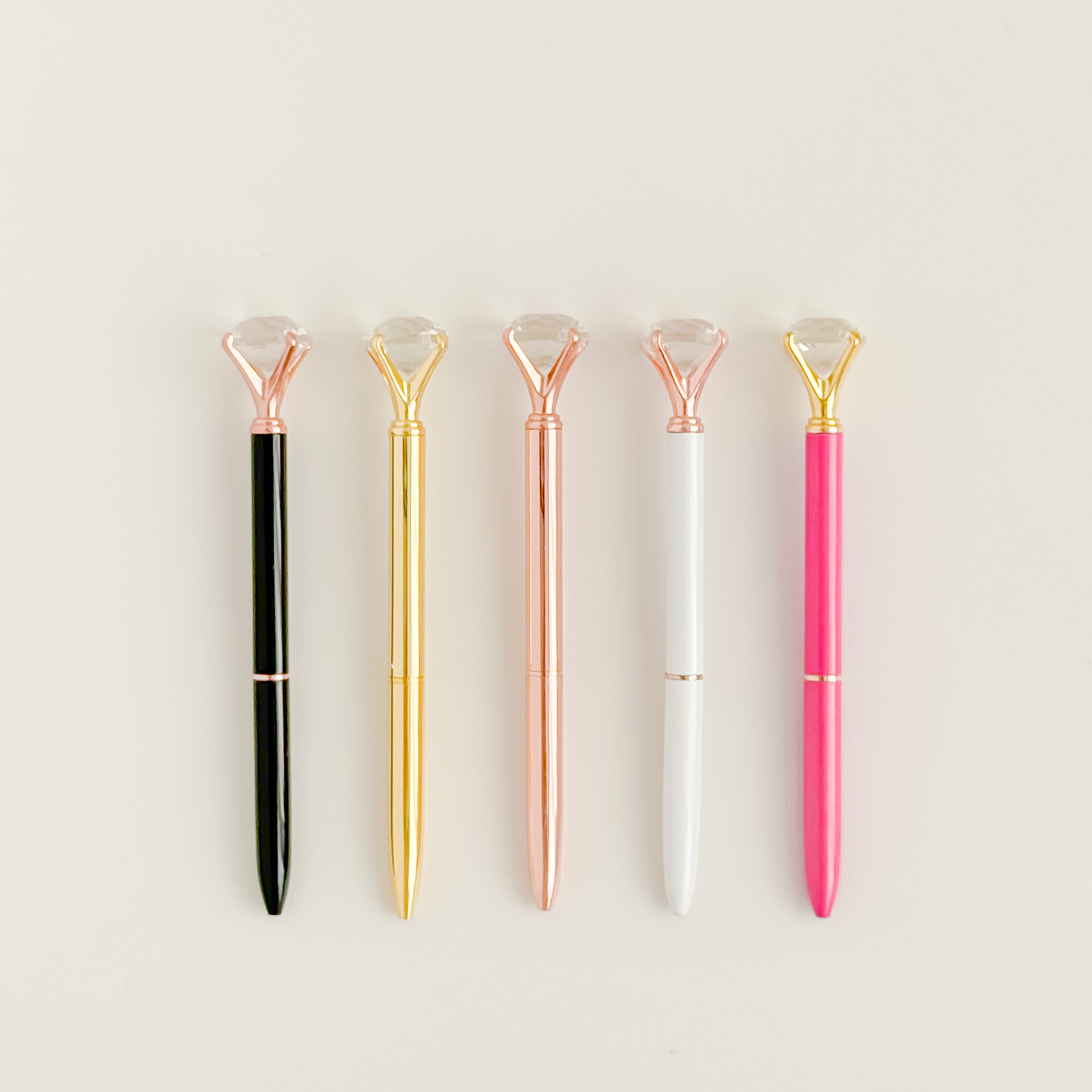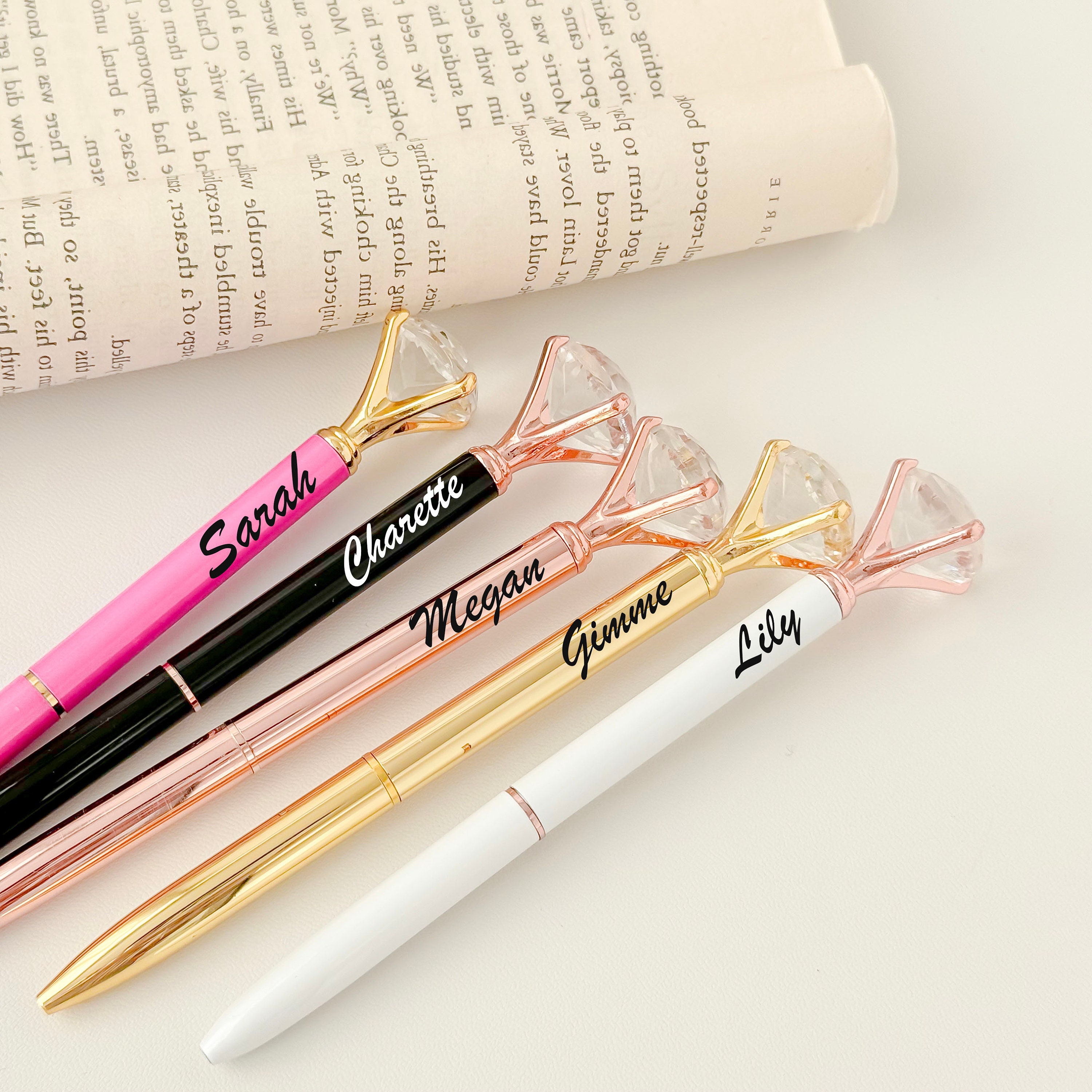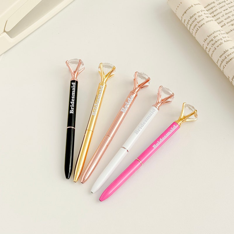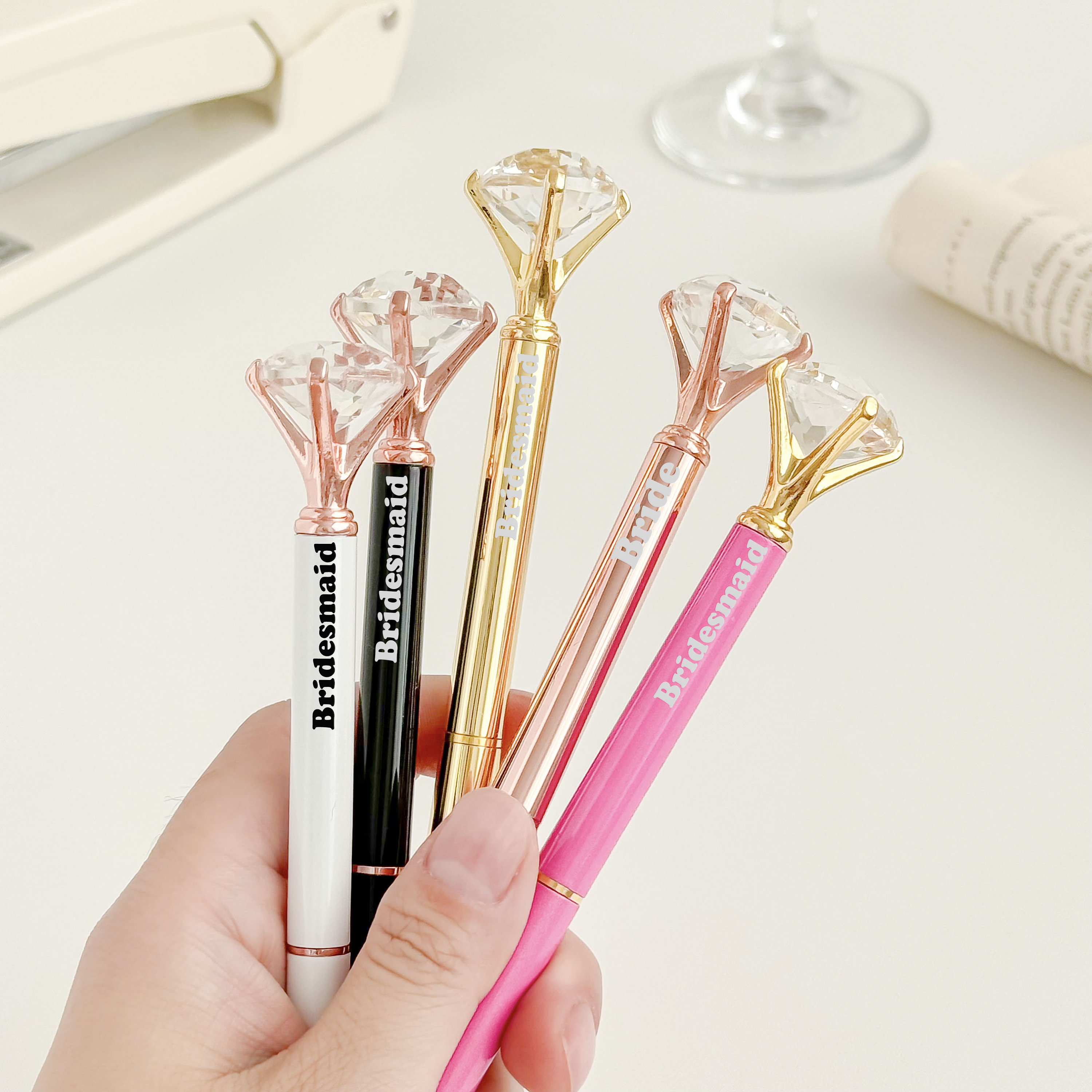 5 Piece Diamond Pen Set for Bridal Shower, Wedding Guestbook Pen, | Bridesmaid Proposal Box Gift, Customized Pens, Accessories School Supplies