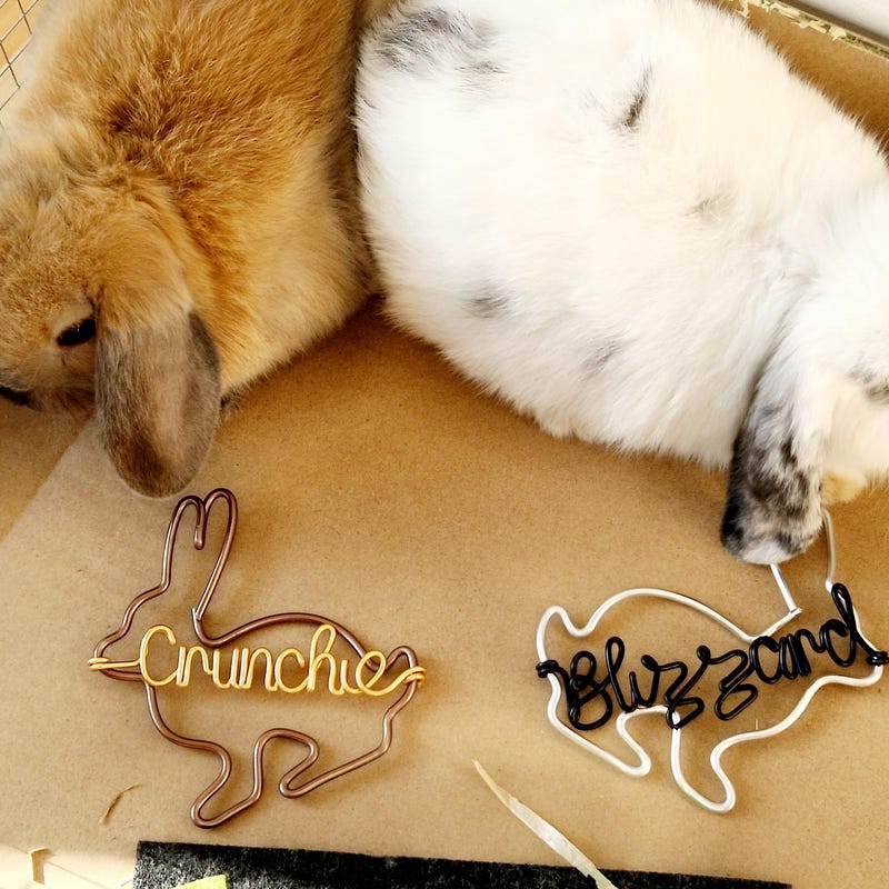 They are fully customisable to ANY colour combination your heart desires! Please choose the colour of the rabbit and the wire from the drop down boxes and pop the word/name you require, in the personalisation box.