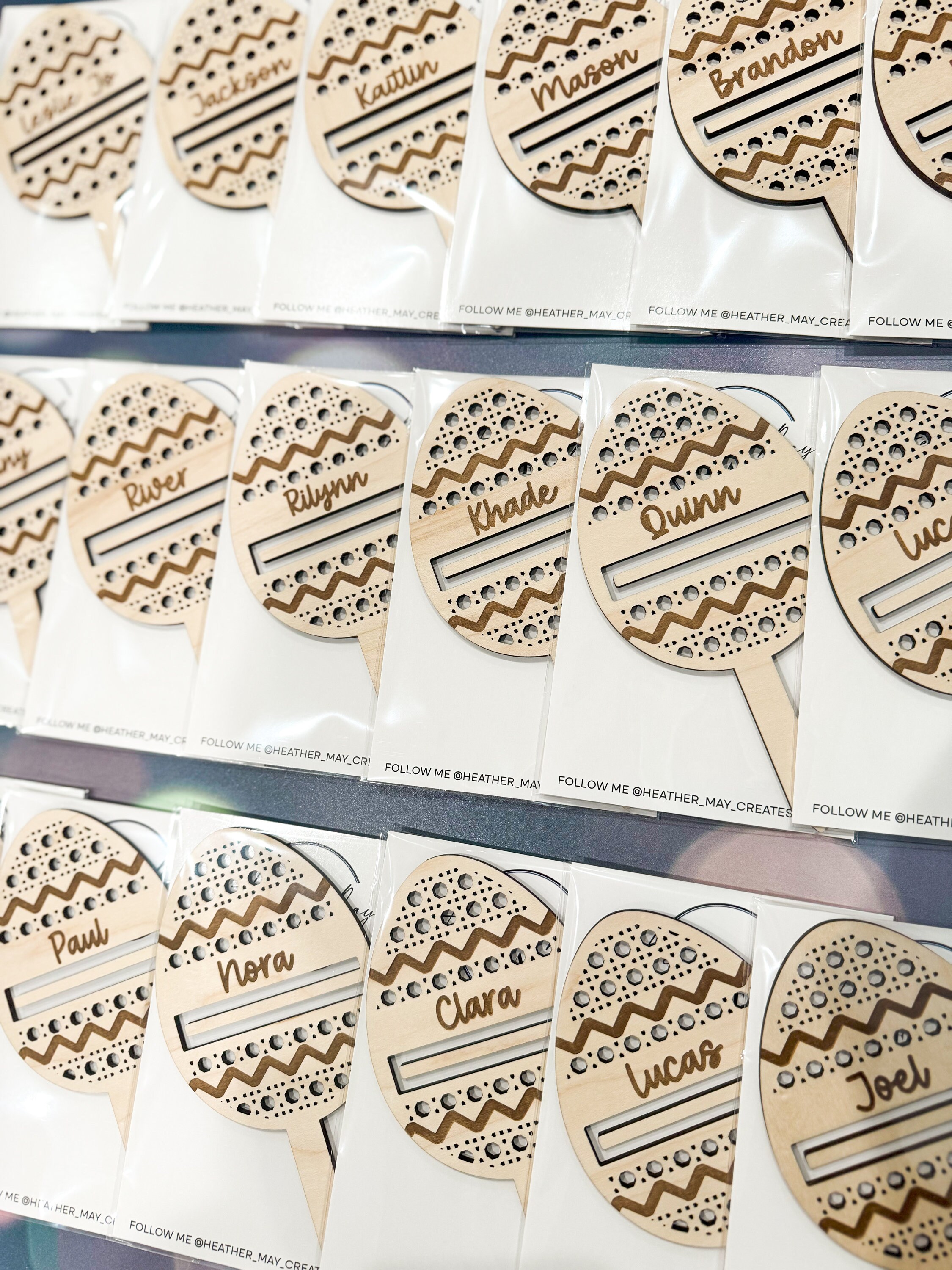 The Easter basket tags are made from high-quality maple.