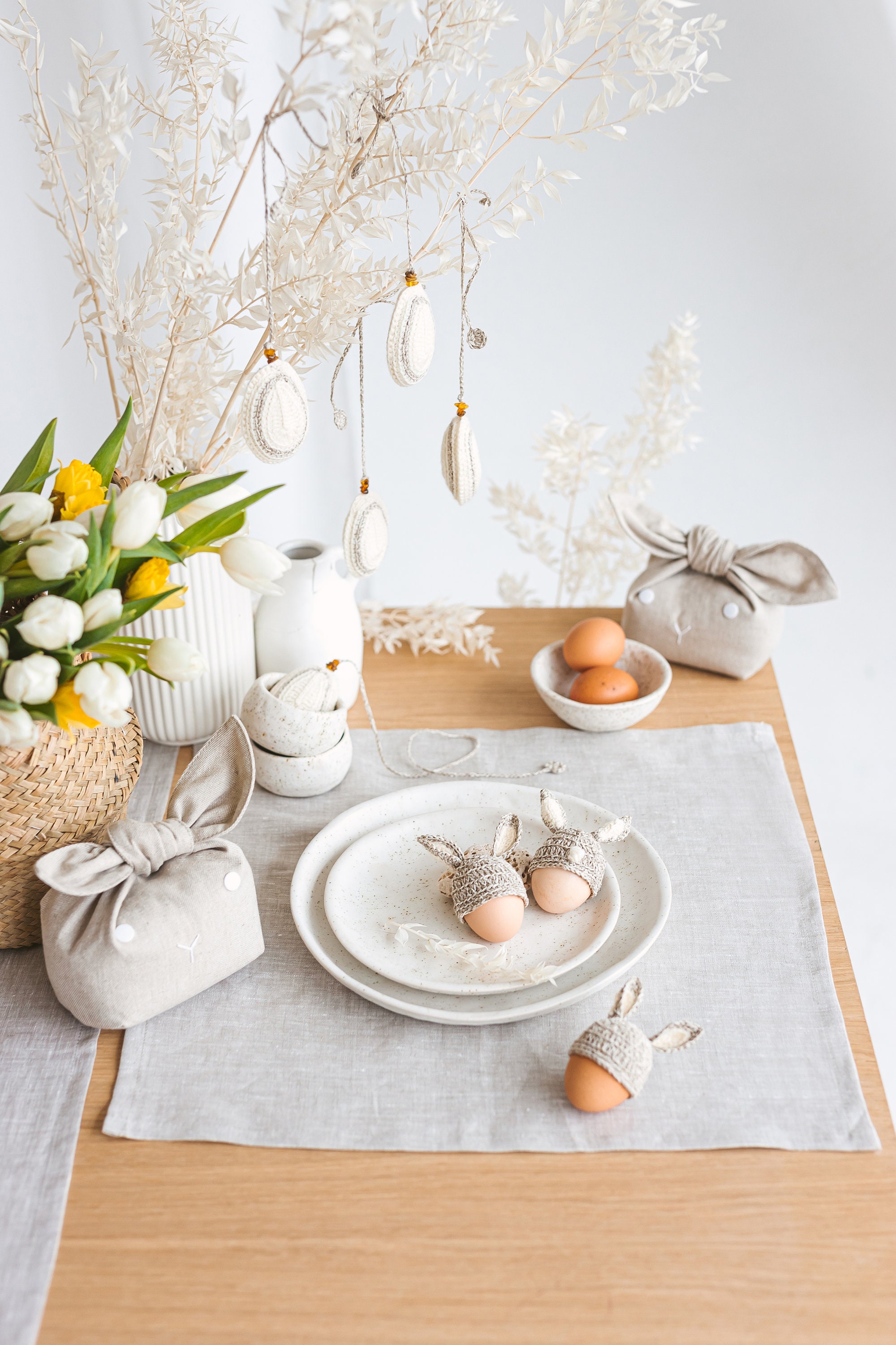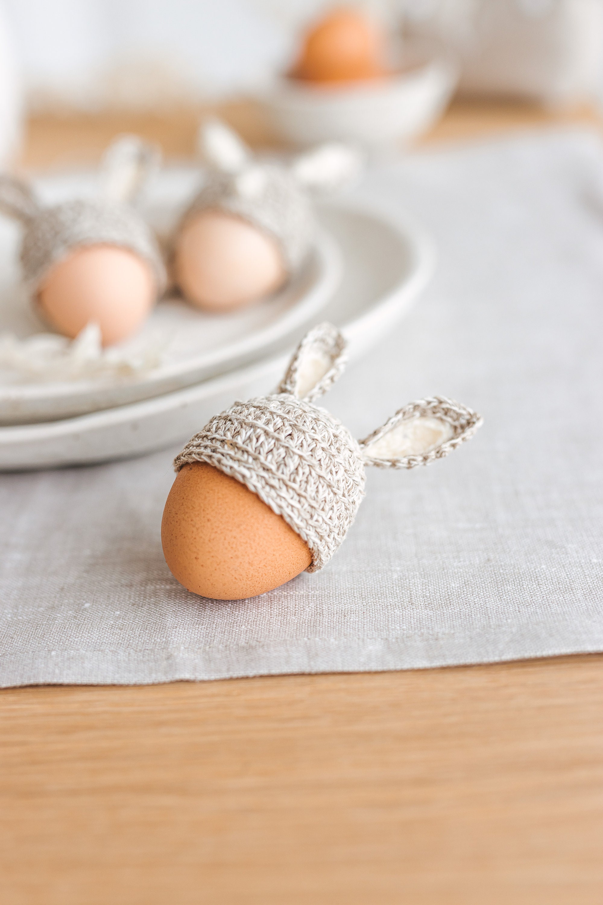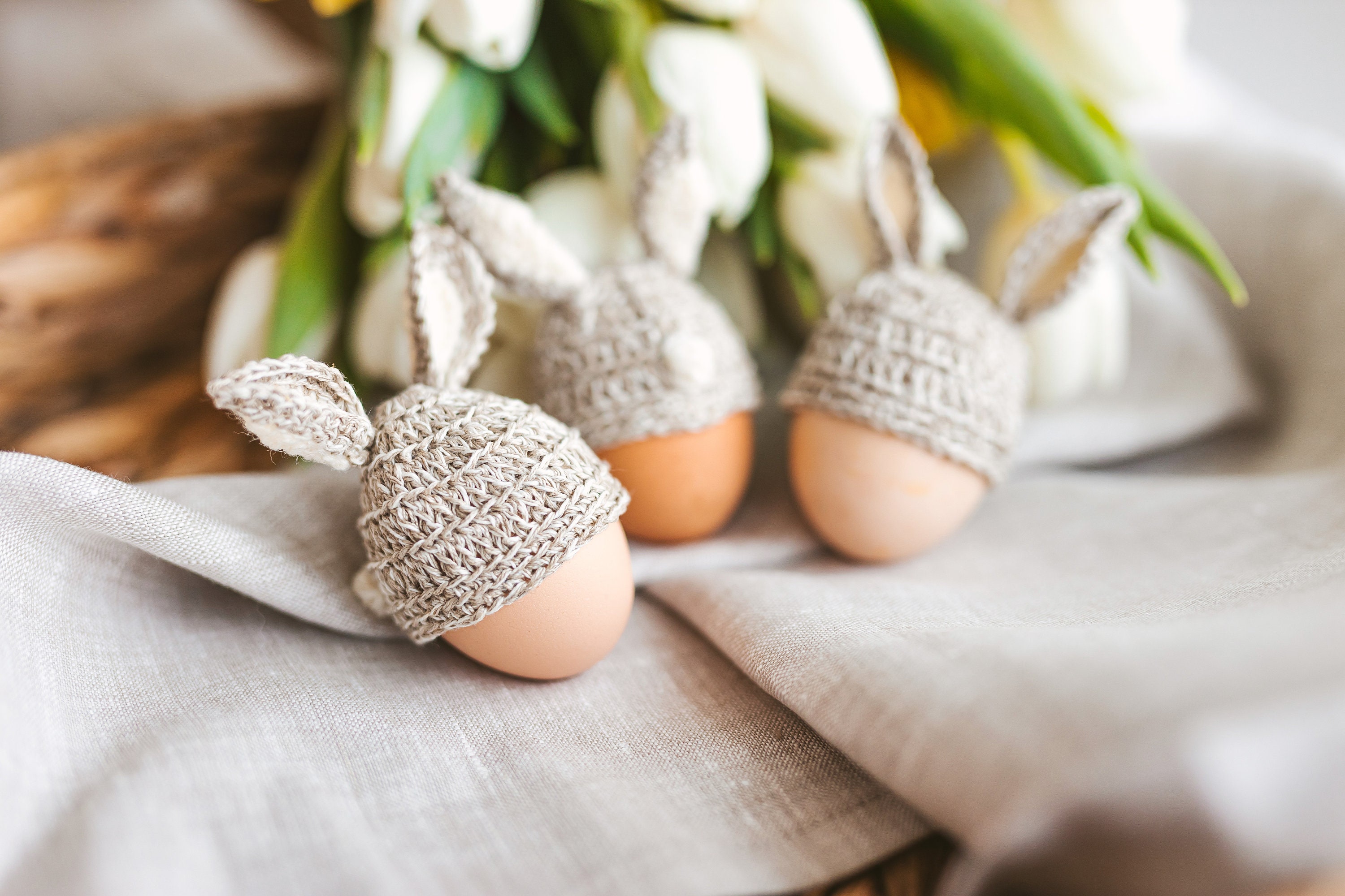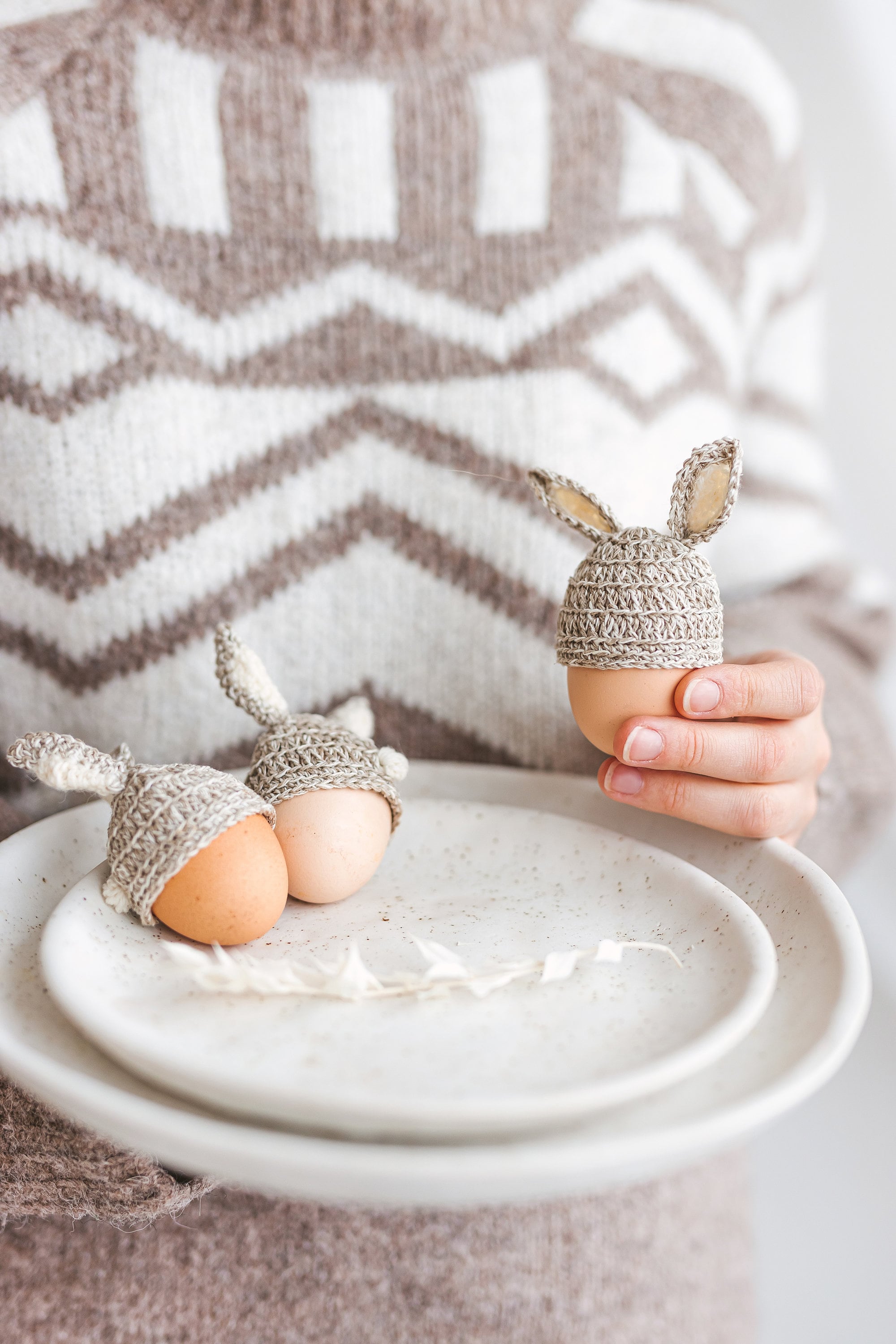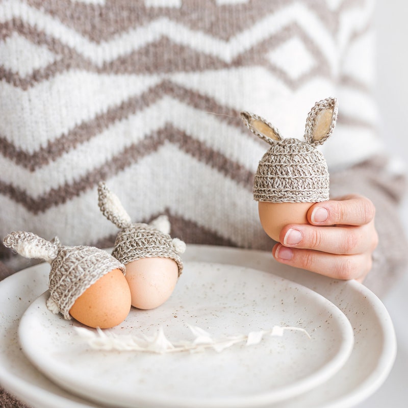 These hand-crocheted Easter egg hats - bunnies will help you create an Easter atmosphere in your home or decorate your Easter breakfast table.