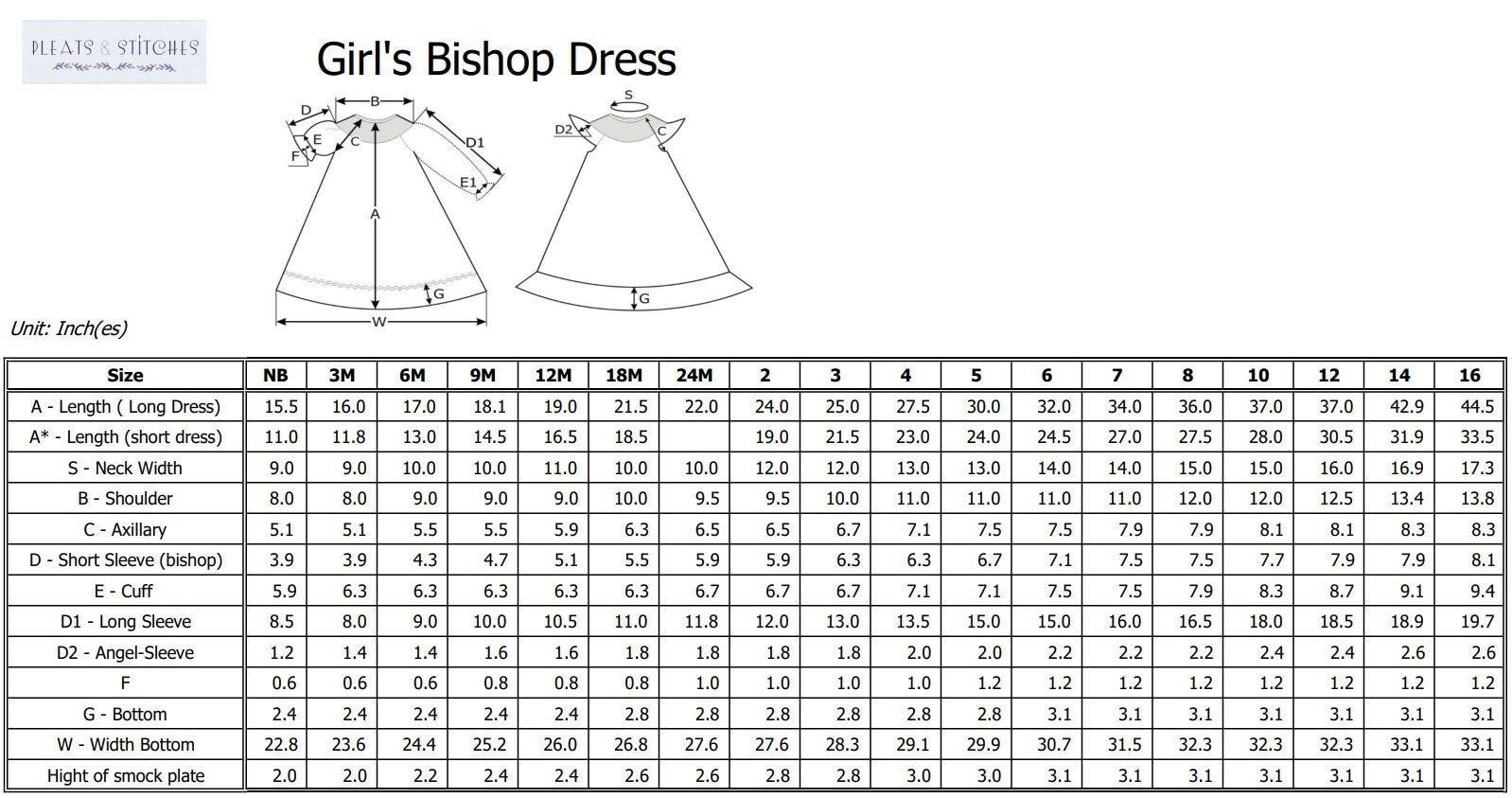 Bishops are designed to be ankle length if ordering current sizes. If you are unsure, you may want to order a size 4 and below and check our size chart (in the pictures).