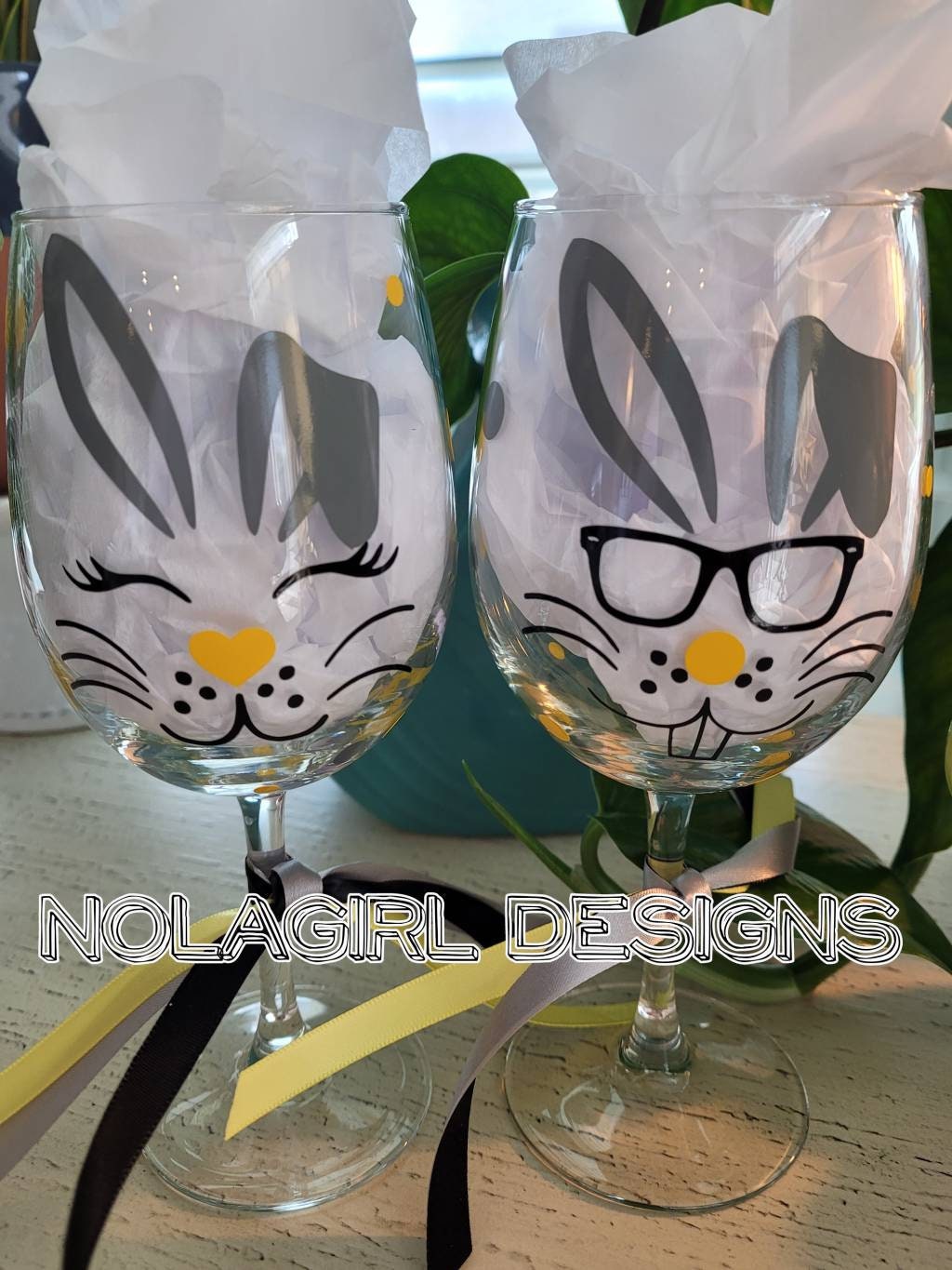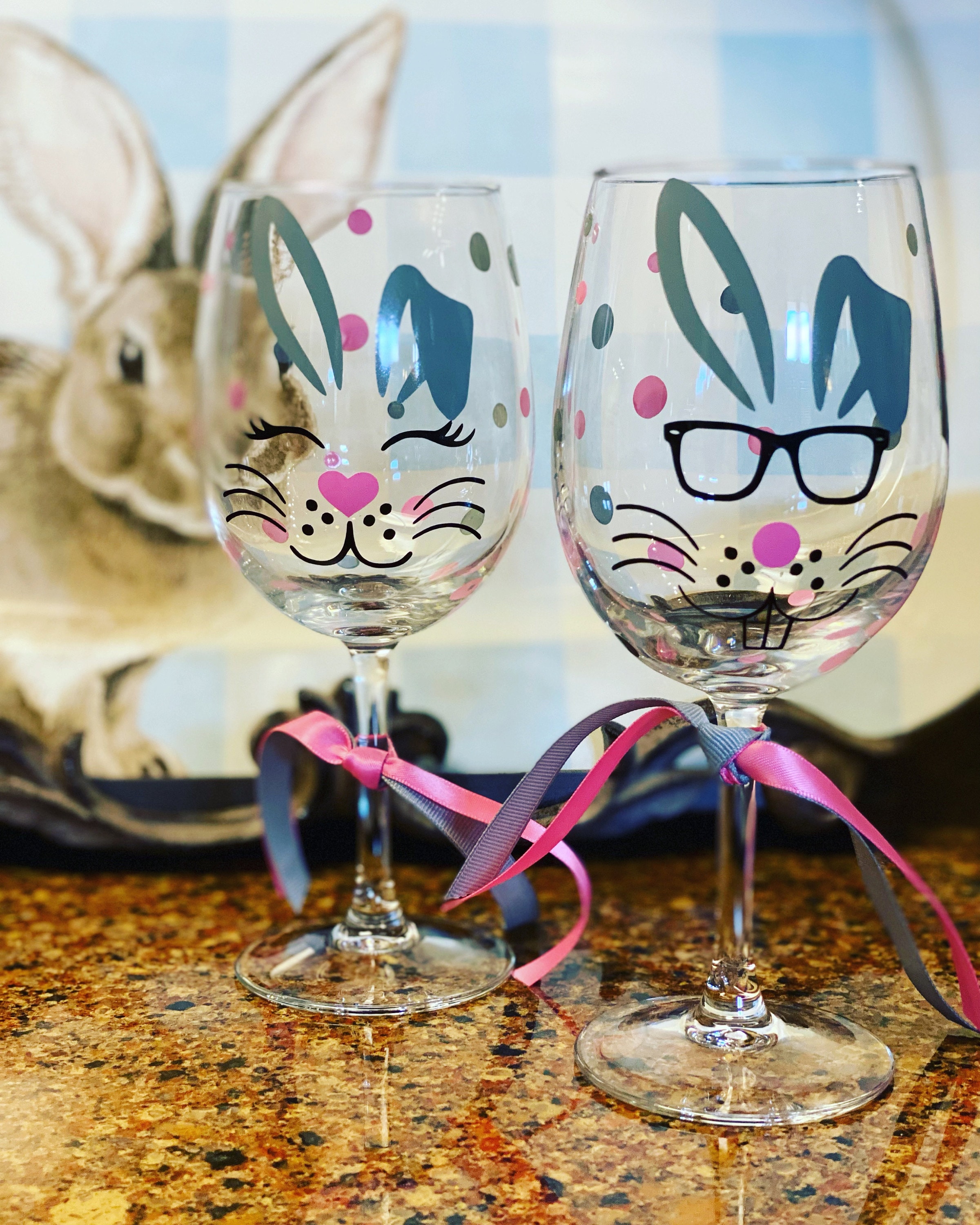 These fun and cheerful wine glasses are sure to be a hit at your Easter party, office party, or Spring bash!