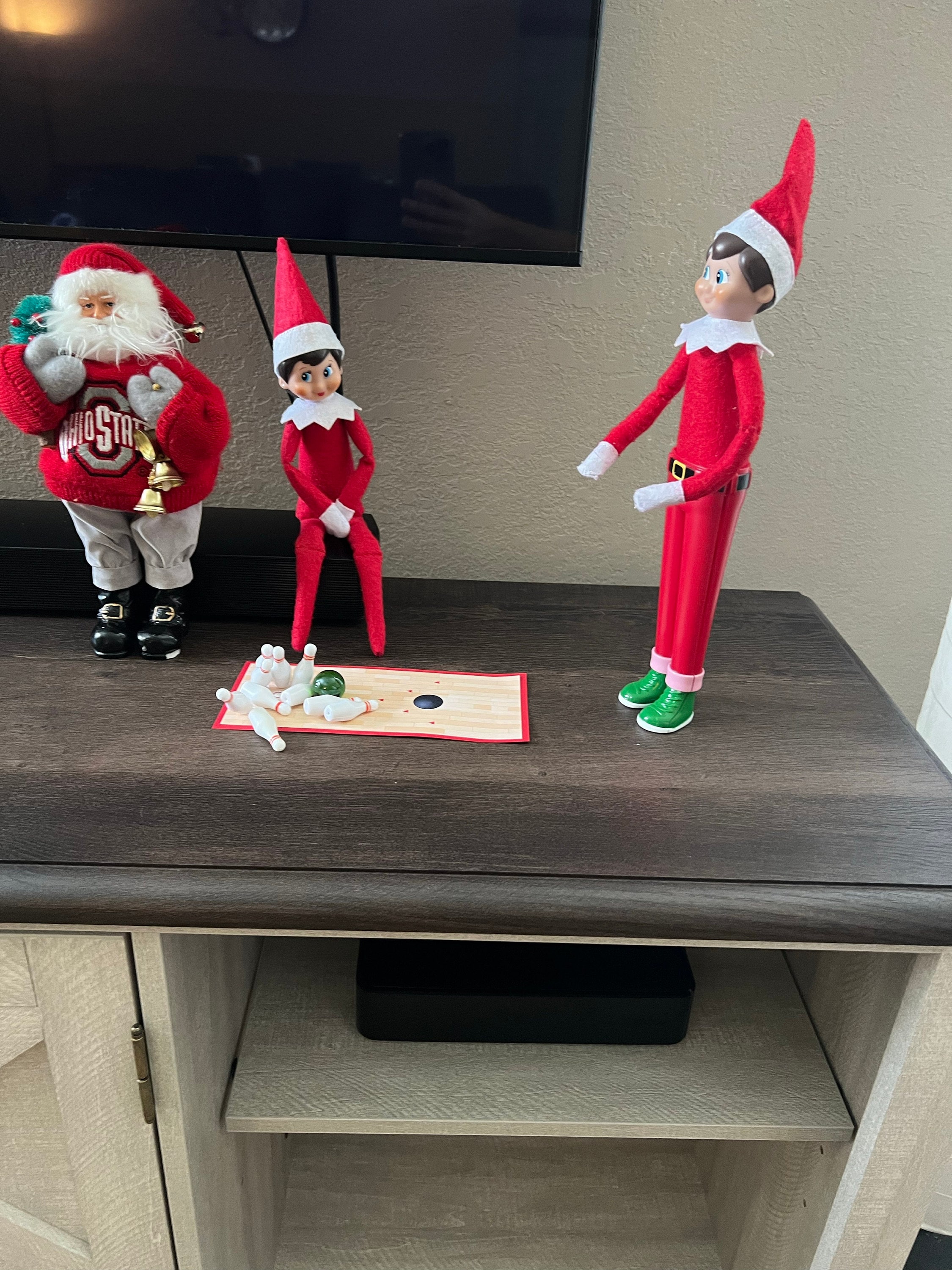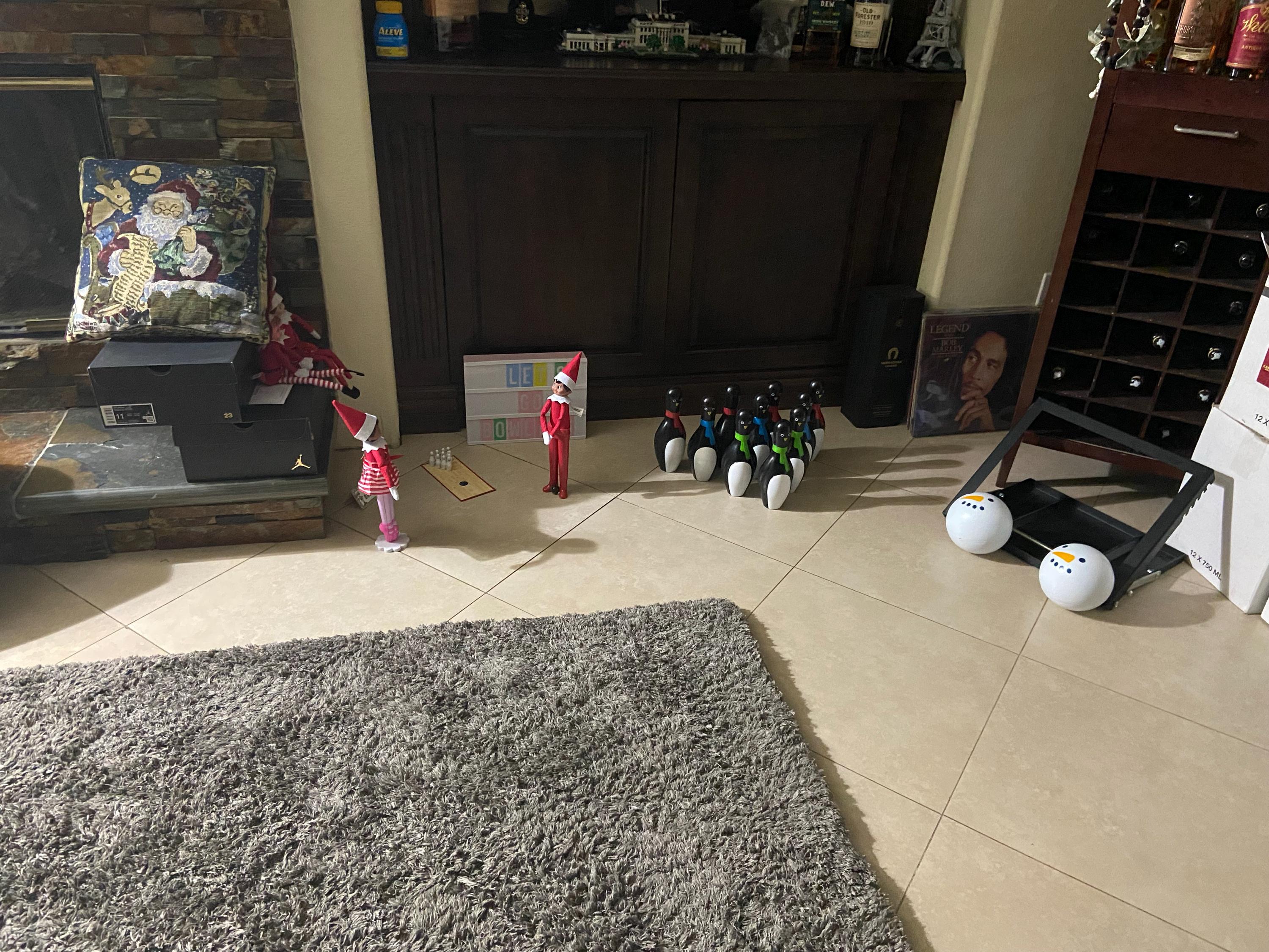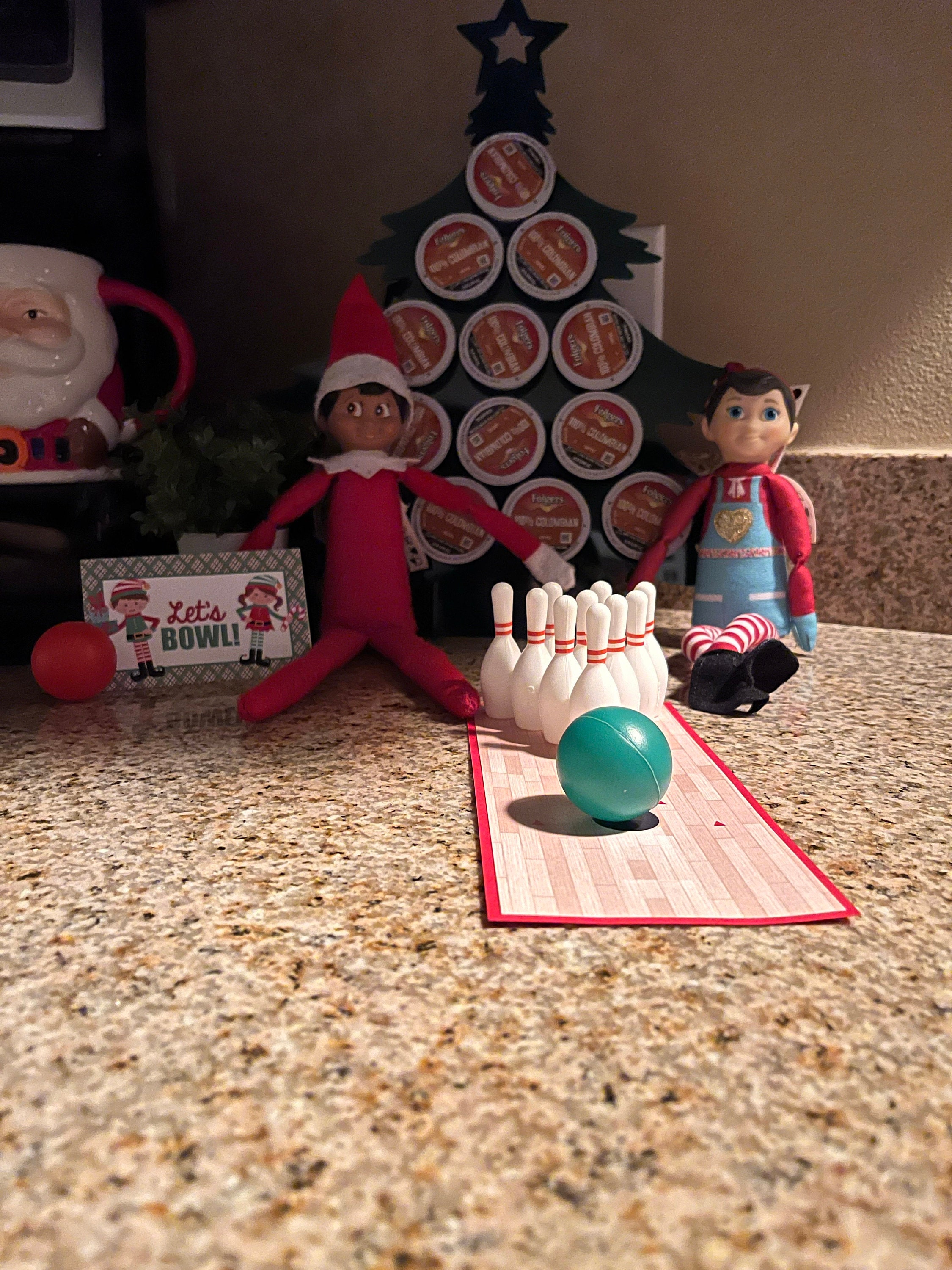 Bring out the bowler in your elf and stage with an elf sized bowling set including 10 bowling pins, 2 bowling balls, printed alley and LET'S BOWL printed tent card as shown to use for fun. Each set includes ten 2 1/4" plastic mini bowling pins and two 1 1/4" mini bowling balls. THE BOWLING ALLEY PLACED INSIDE A CARDBOARD FOLDER INSIDE THE BAG.
