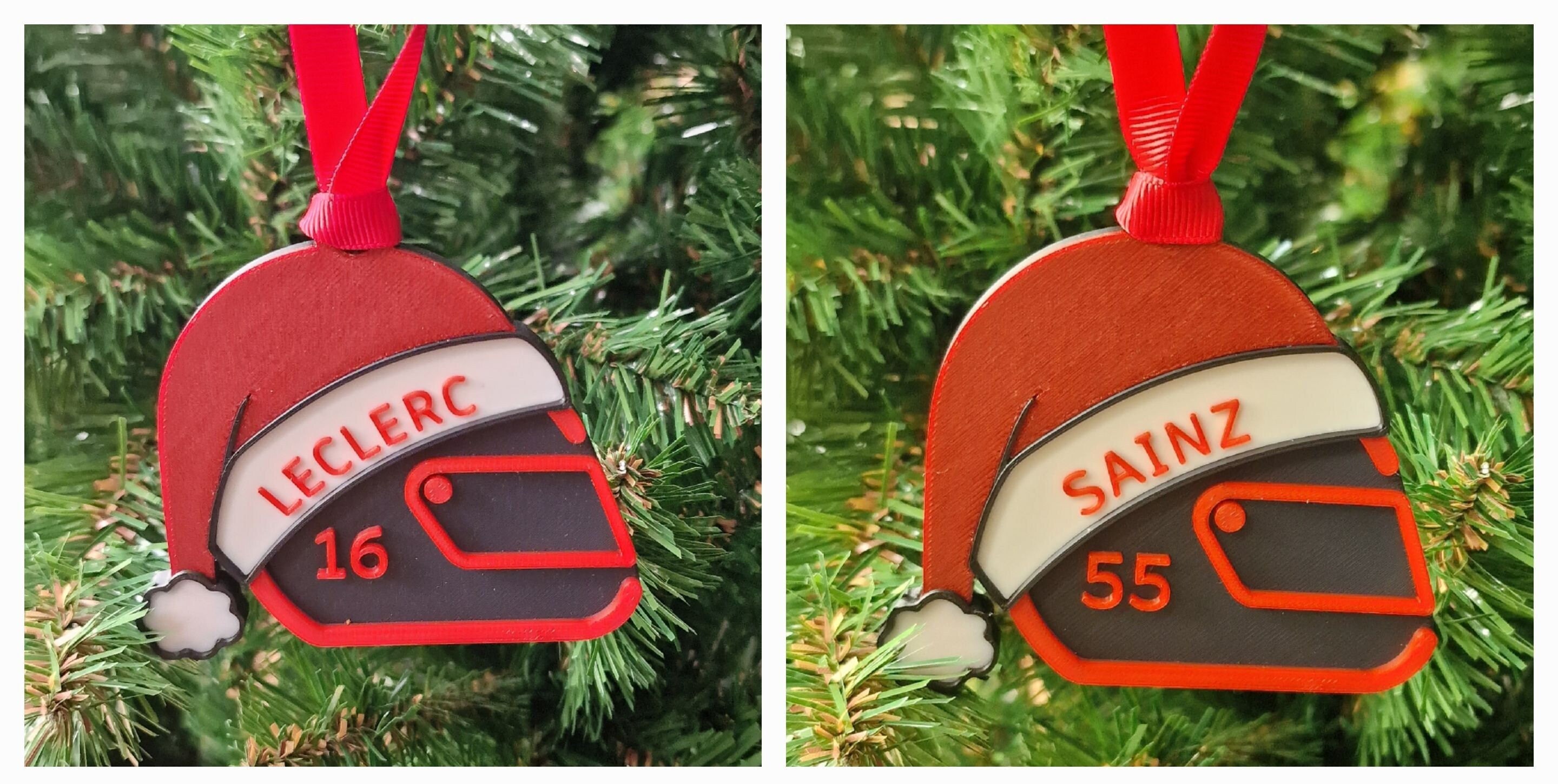 Personalized - This unique ornament combines the festive spirit of a Santa hat with the adrenaline of a driver's helmet, creating a one-of-a-kind decoration that is perfect for car enthusiasts and racing fans alike. The inclusion of a name and number adds a personalized touch to make it truly special.