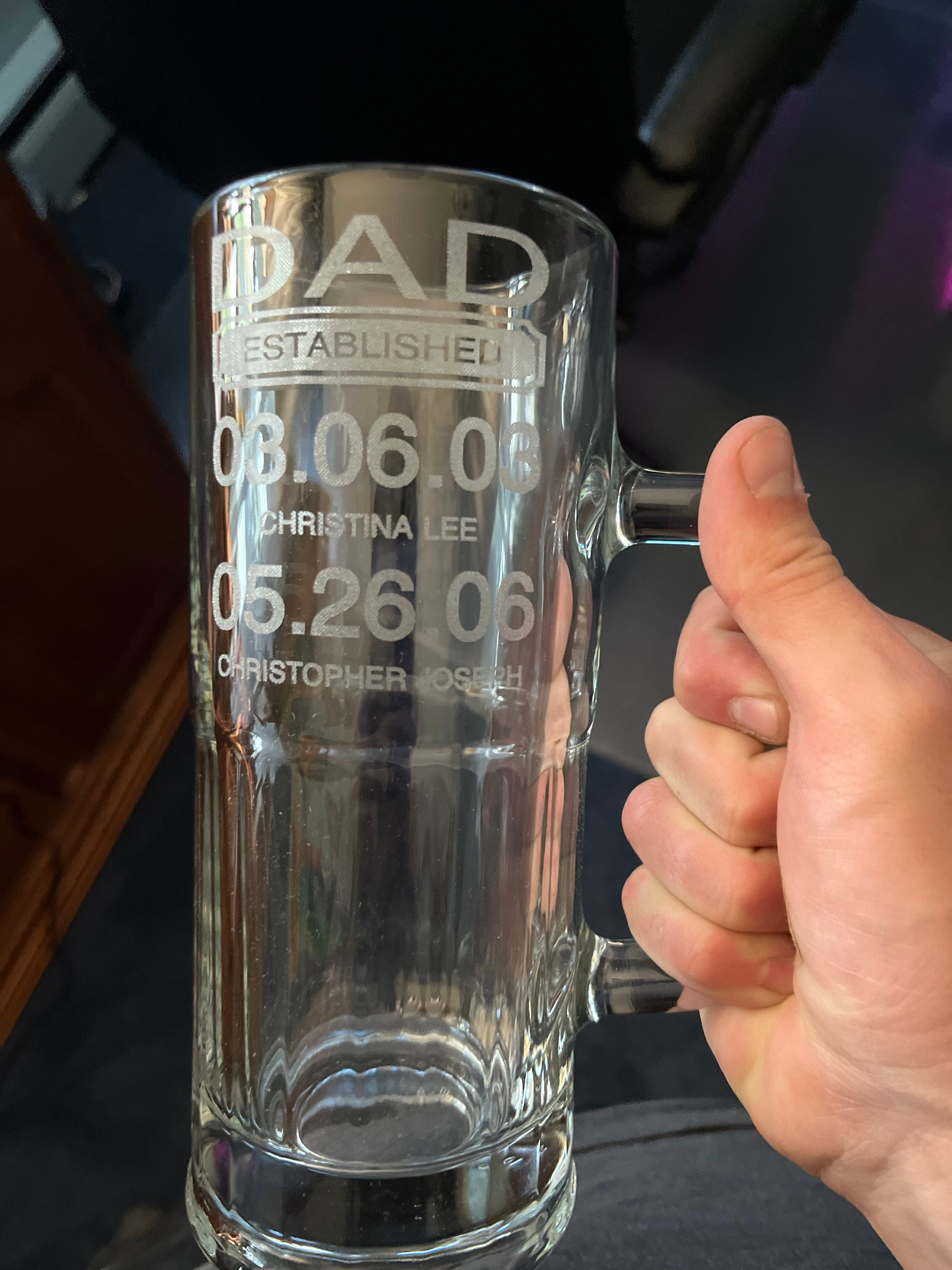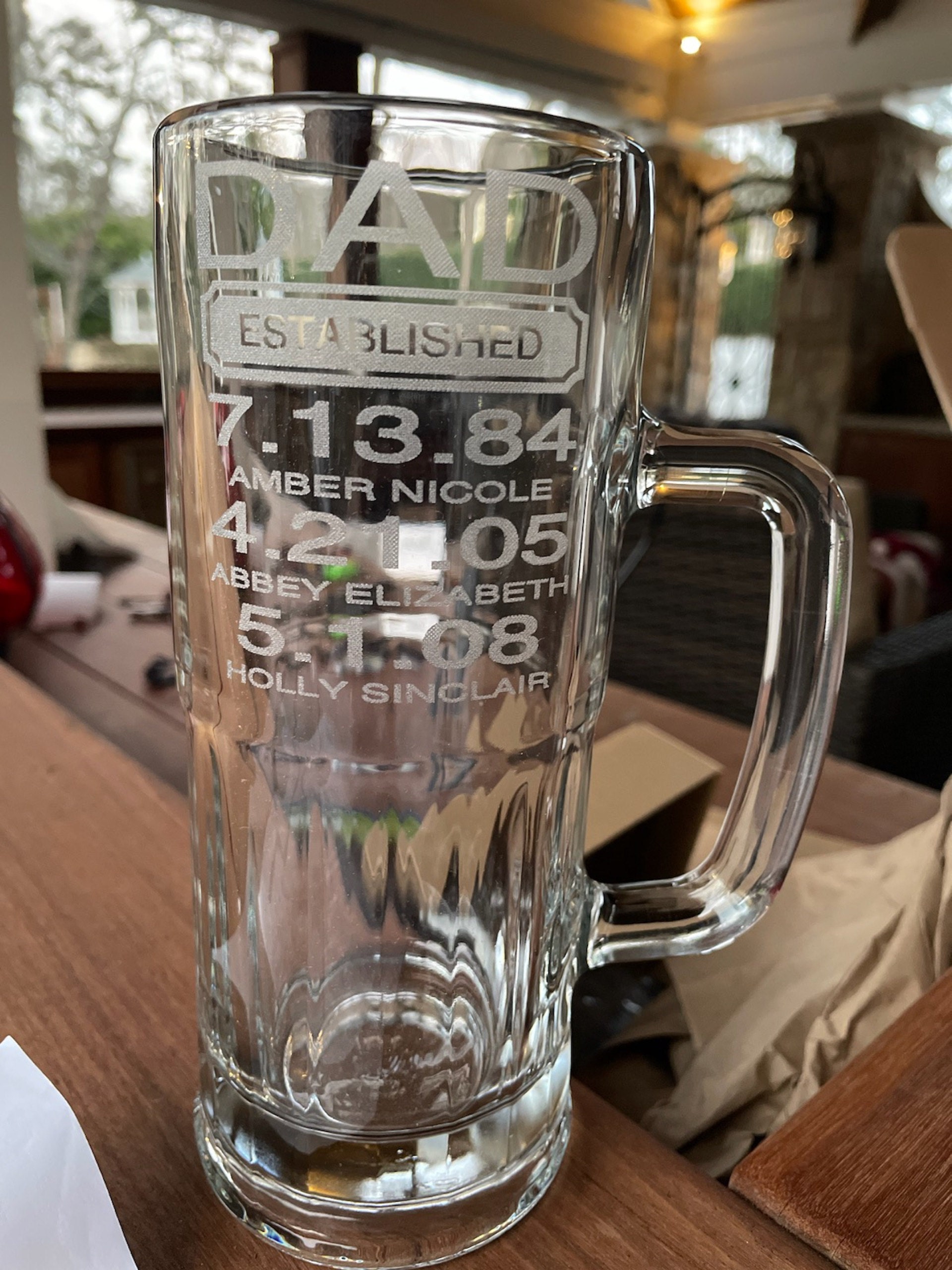 Product Care: Use mild soap and a soft cloth. Our engravings are dishwasher safe, but to preserve the flavor of the beer, never take the dishwasher shortcut.
