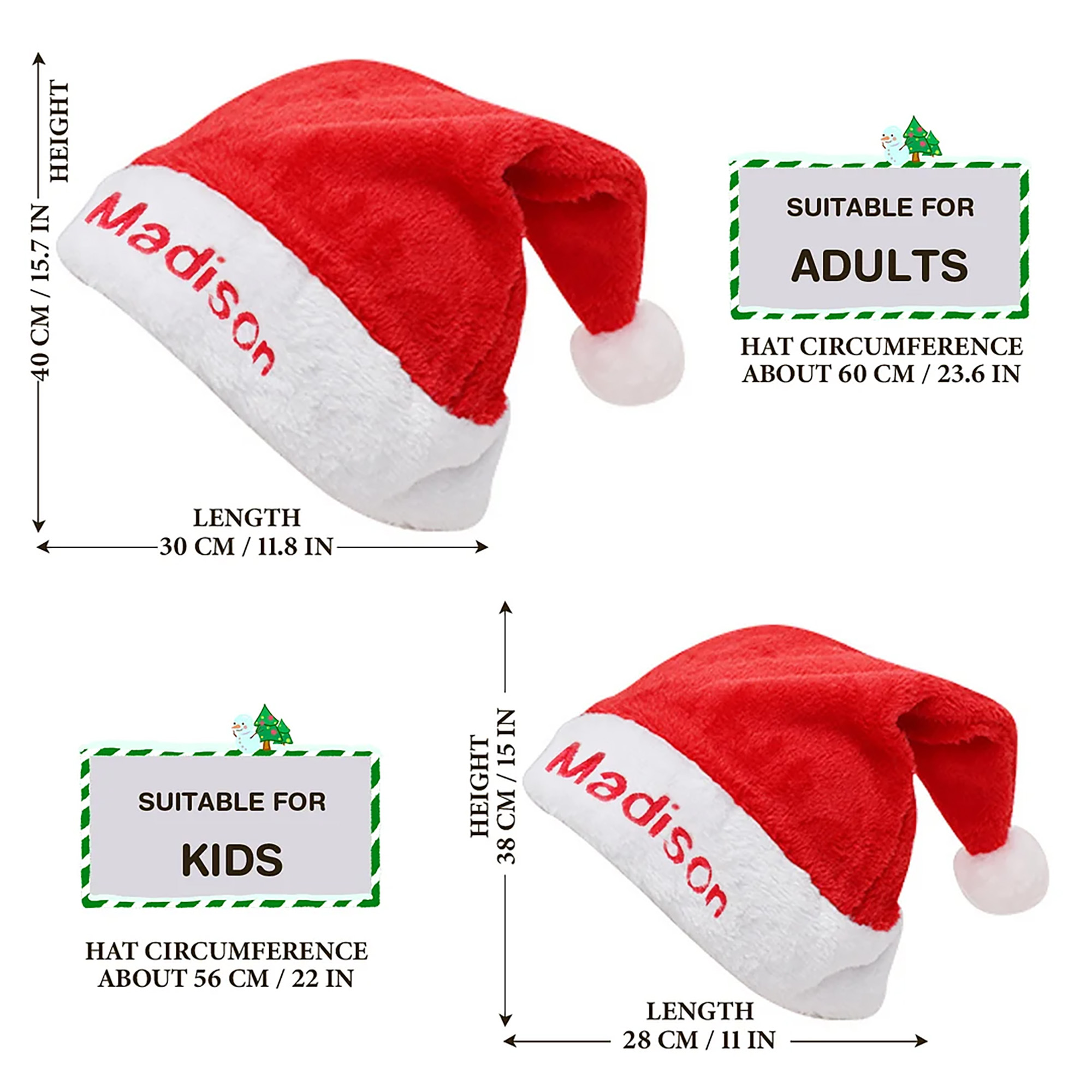 Custom Name Santa Hat for Kids Adults, Personalized Santa Hat with Embroidered Name, Custom Christmas Hat Gifts for Women and Men