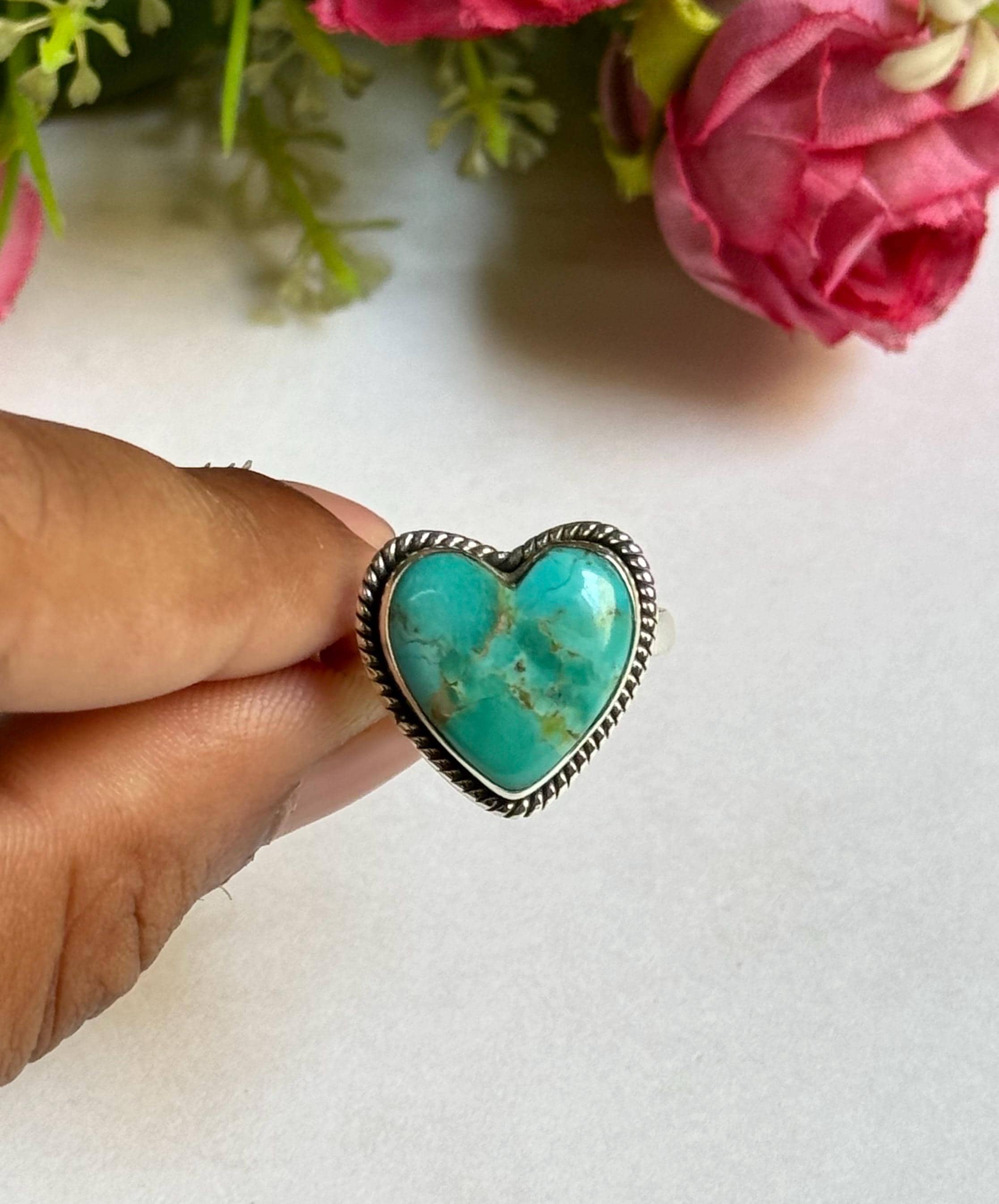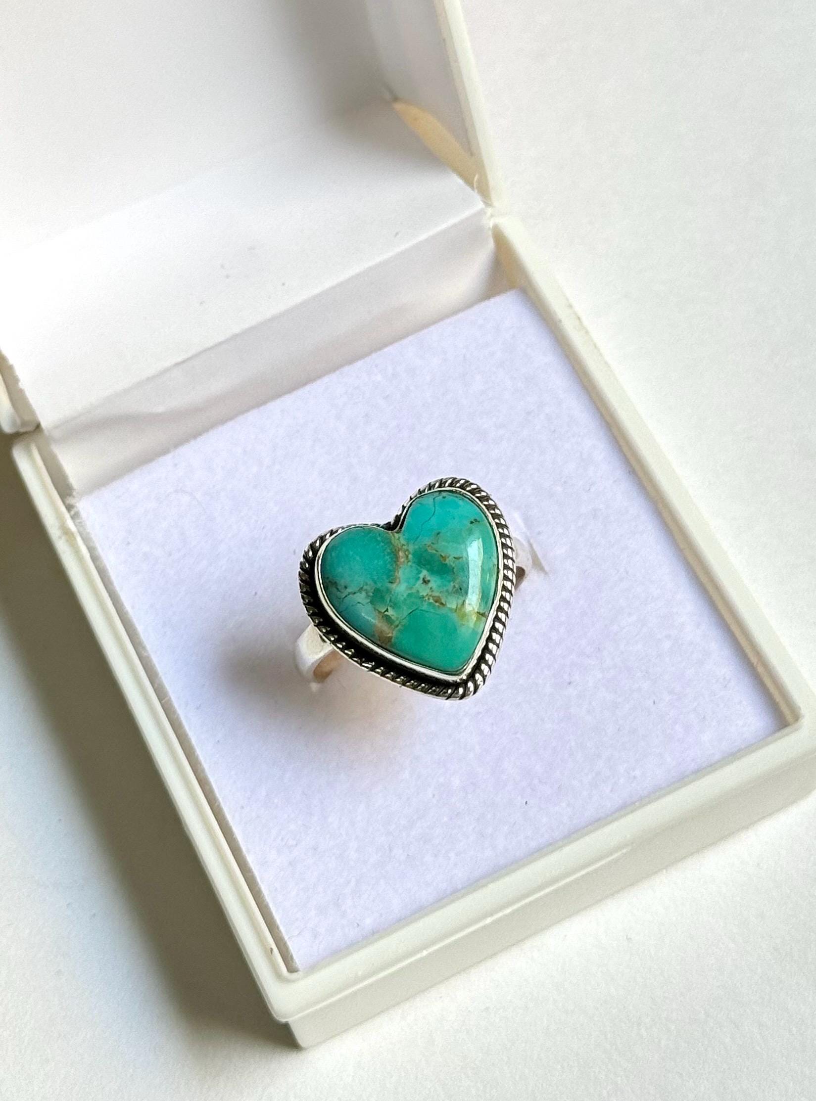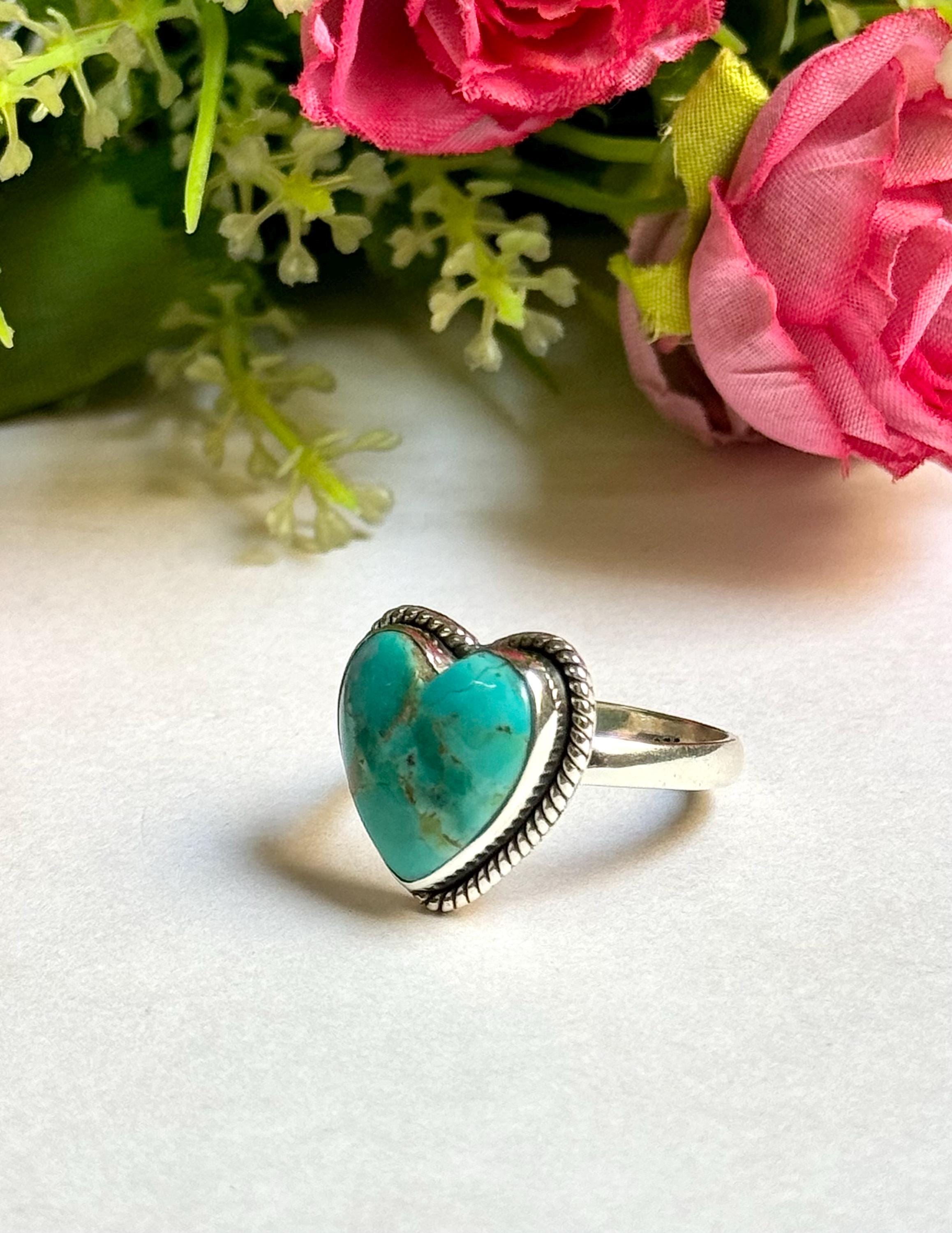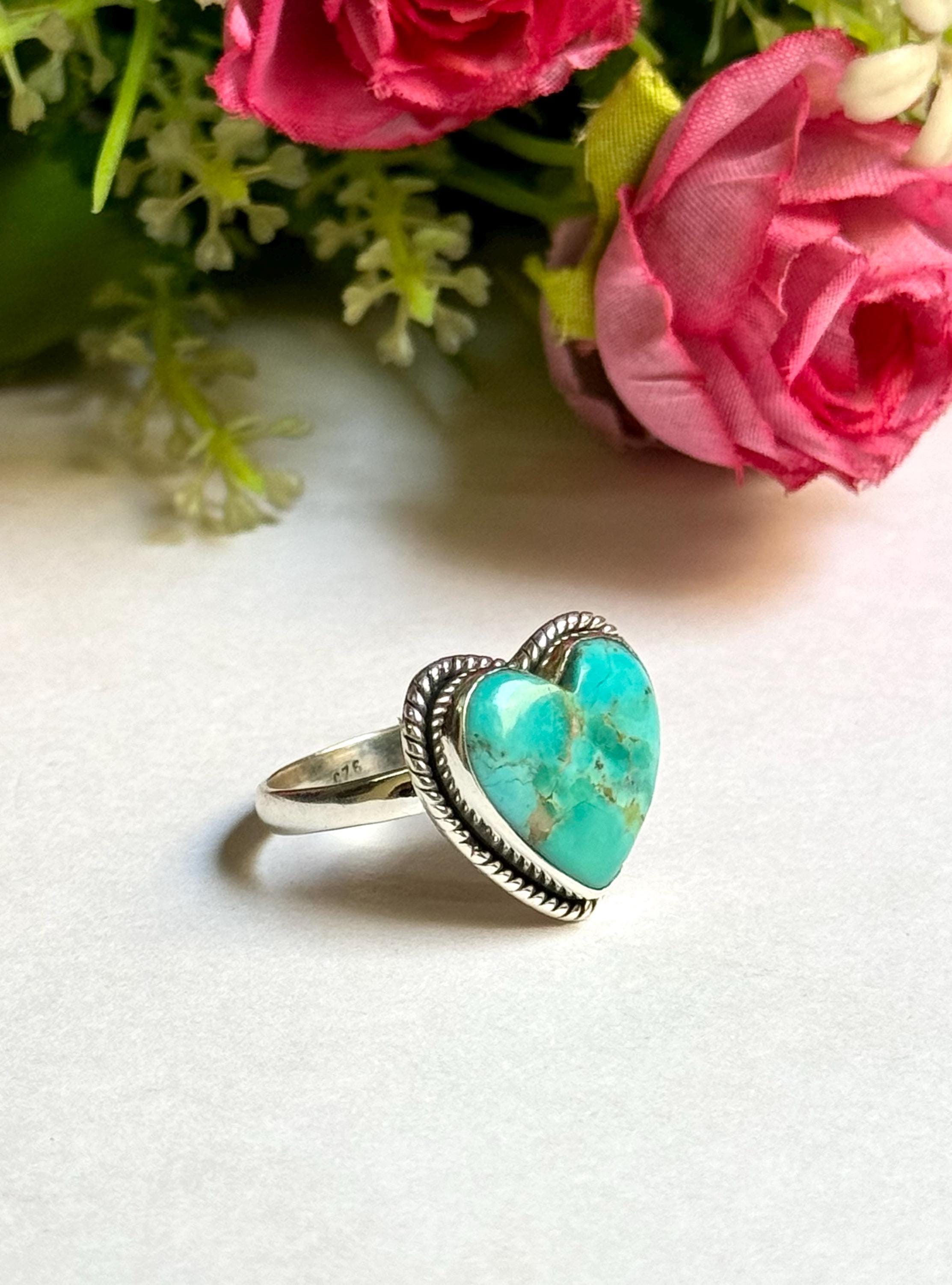 Embrace timeless elegance with our Turquoise Ring. Crafted in 925 Sterling Silver, this stunning piece features a large heart-cut turquoise stone, exuding charm and style. Elevate any look with the vibrant beauty of this solitaire ring.