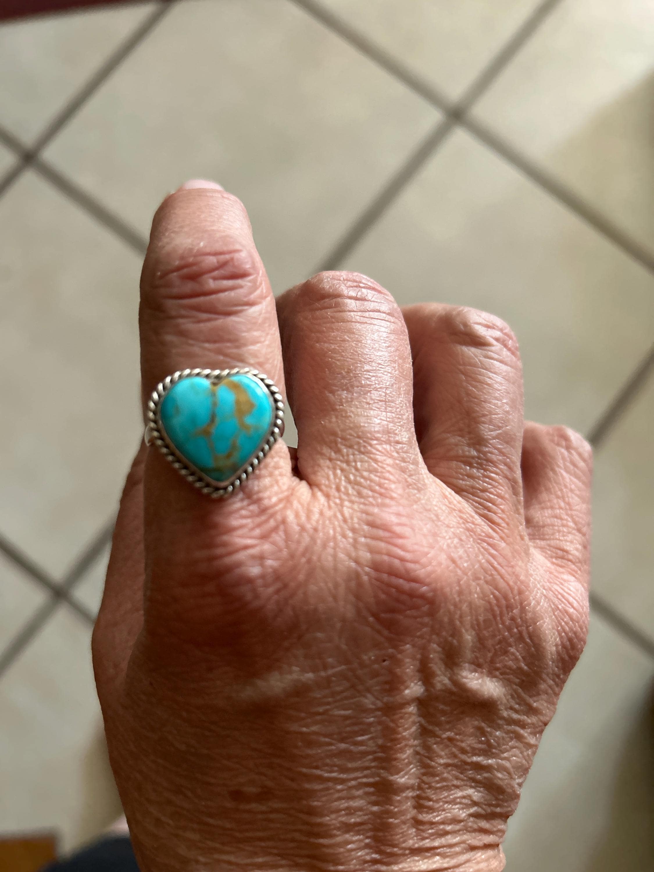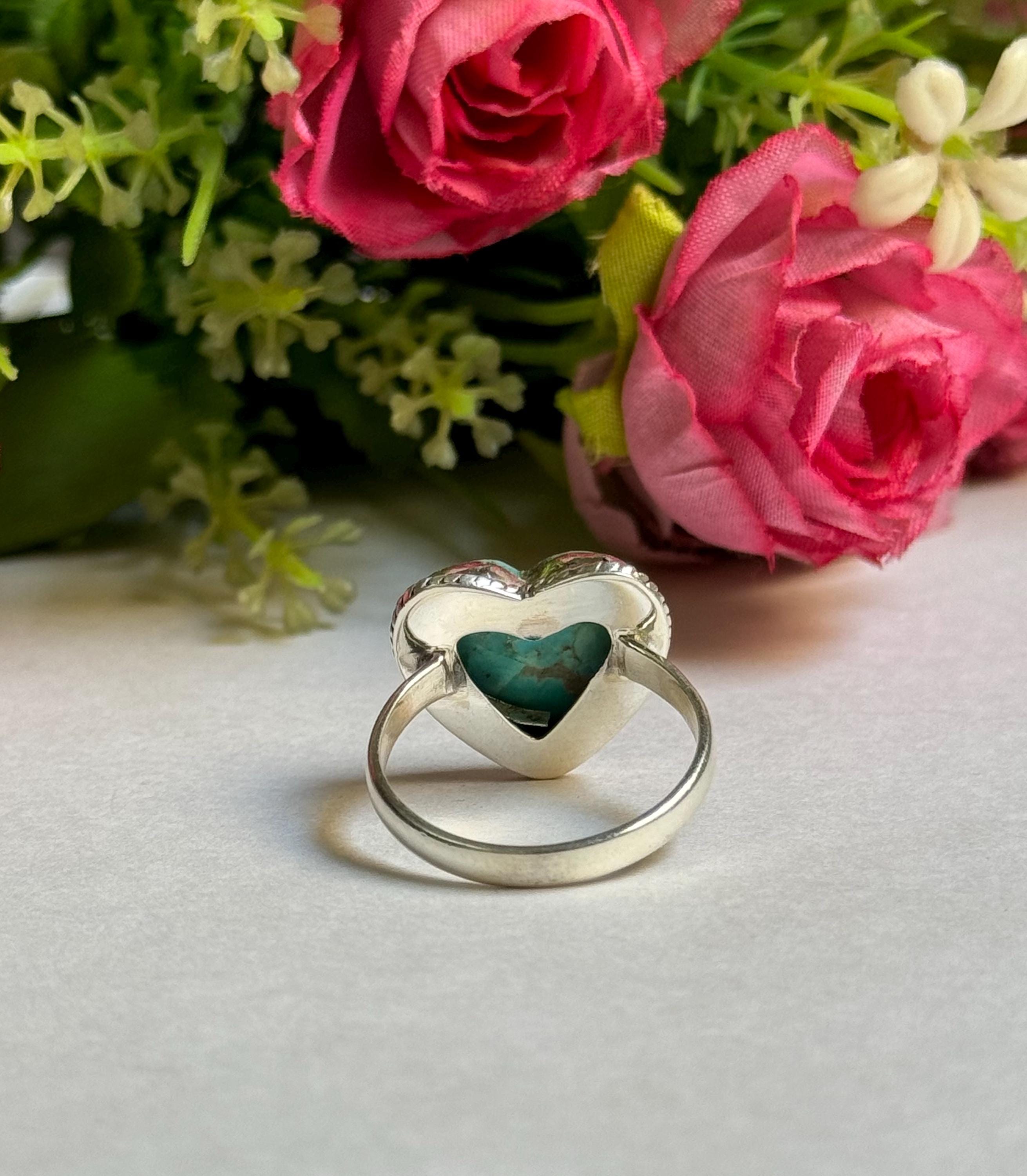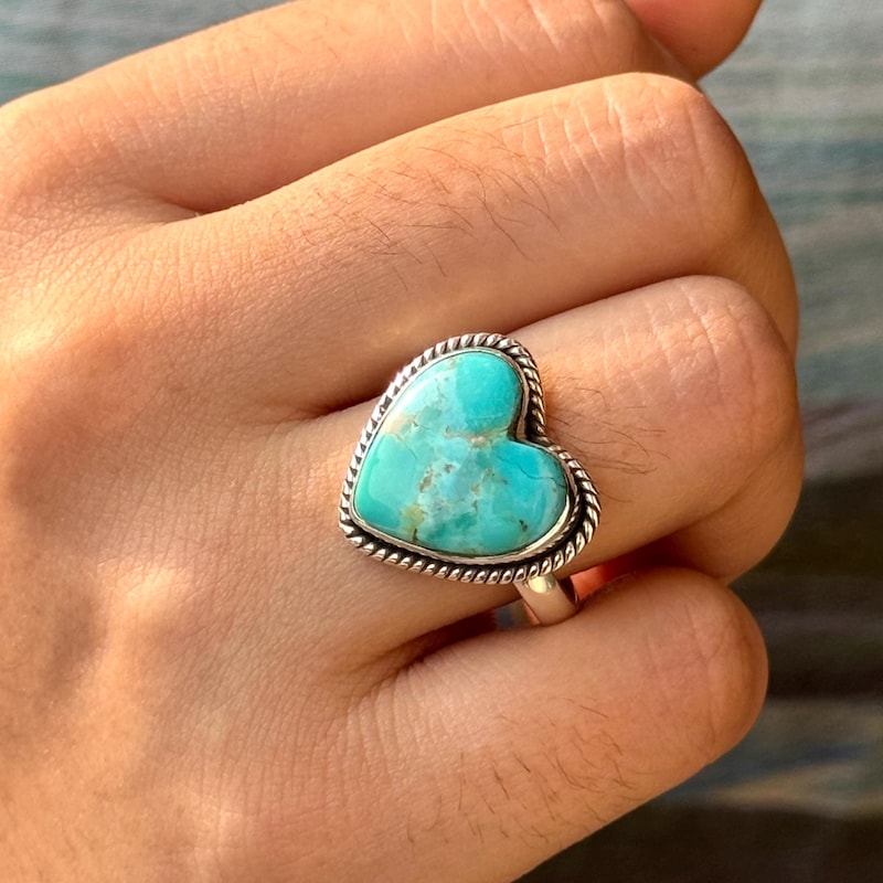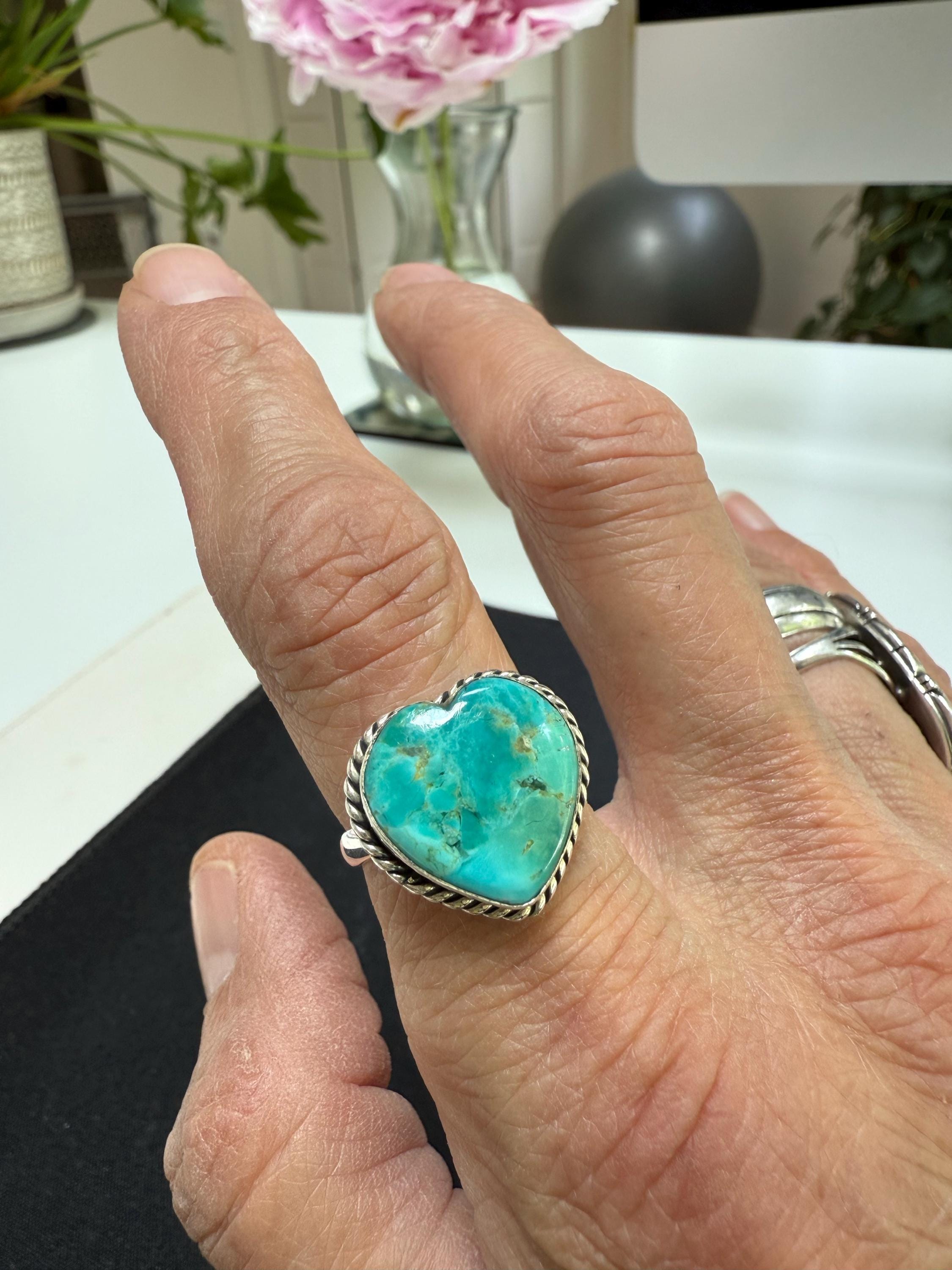 Embrace timeless elegance with our Turquoise Ring. Crafted in 925 Sterling Silver, this stunning piece features a large heart-cut turquoise stone, exuding charm and style. Elevate any look with the vibrant beauty of this solitaire ring.
