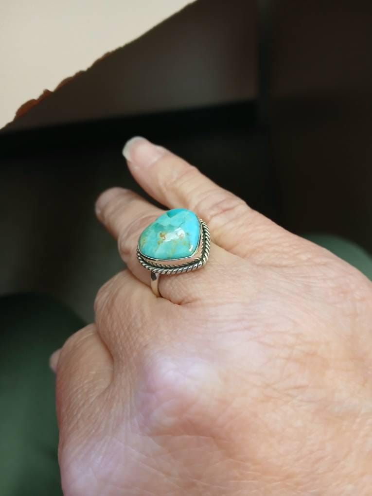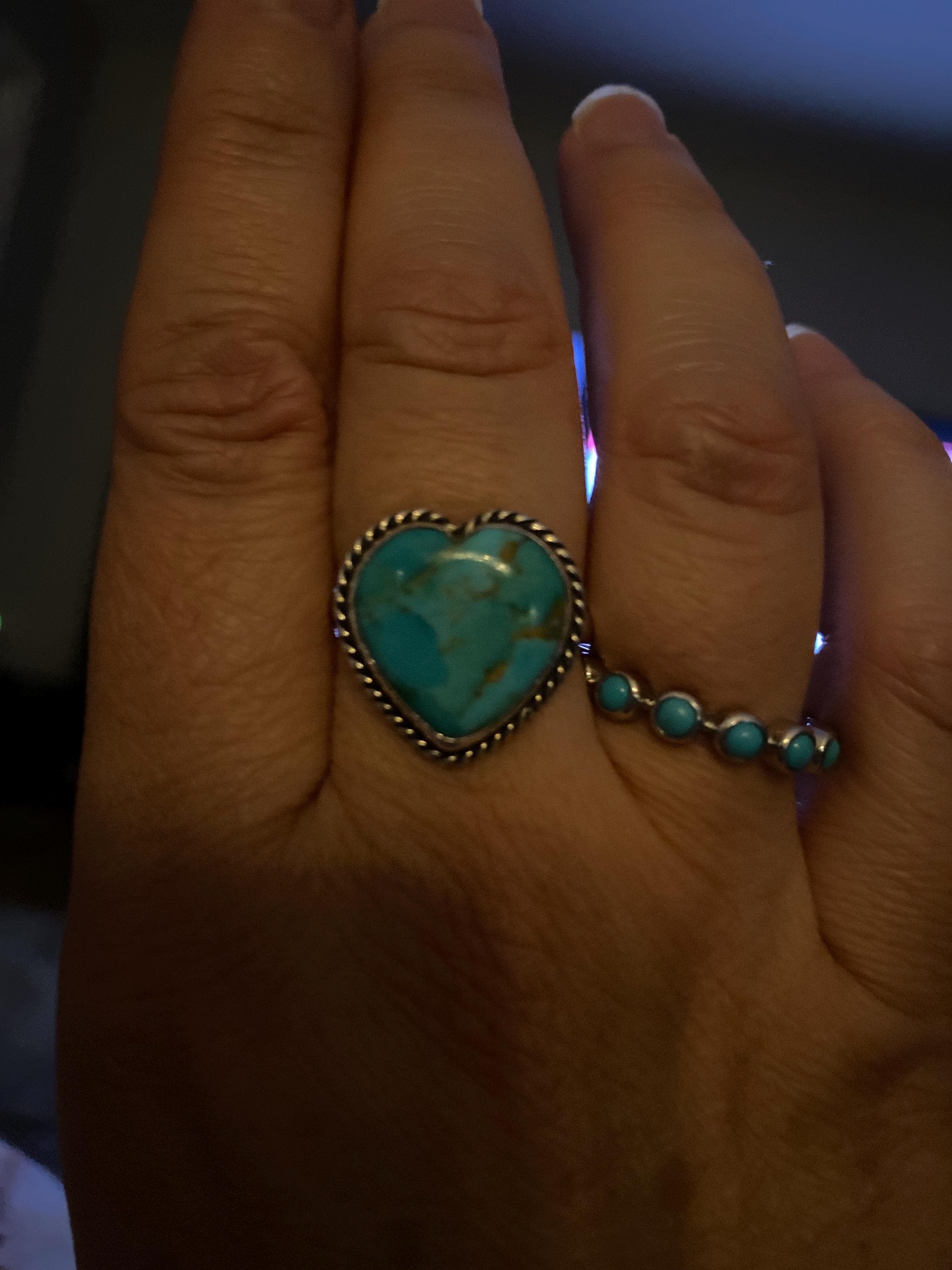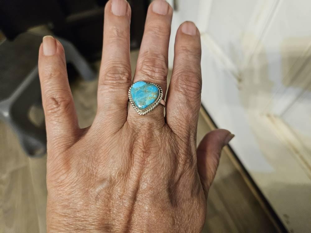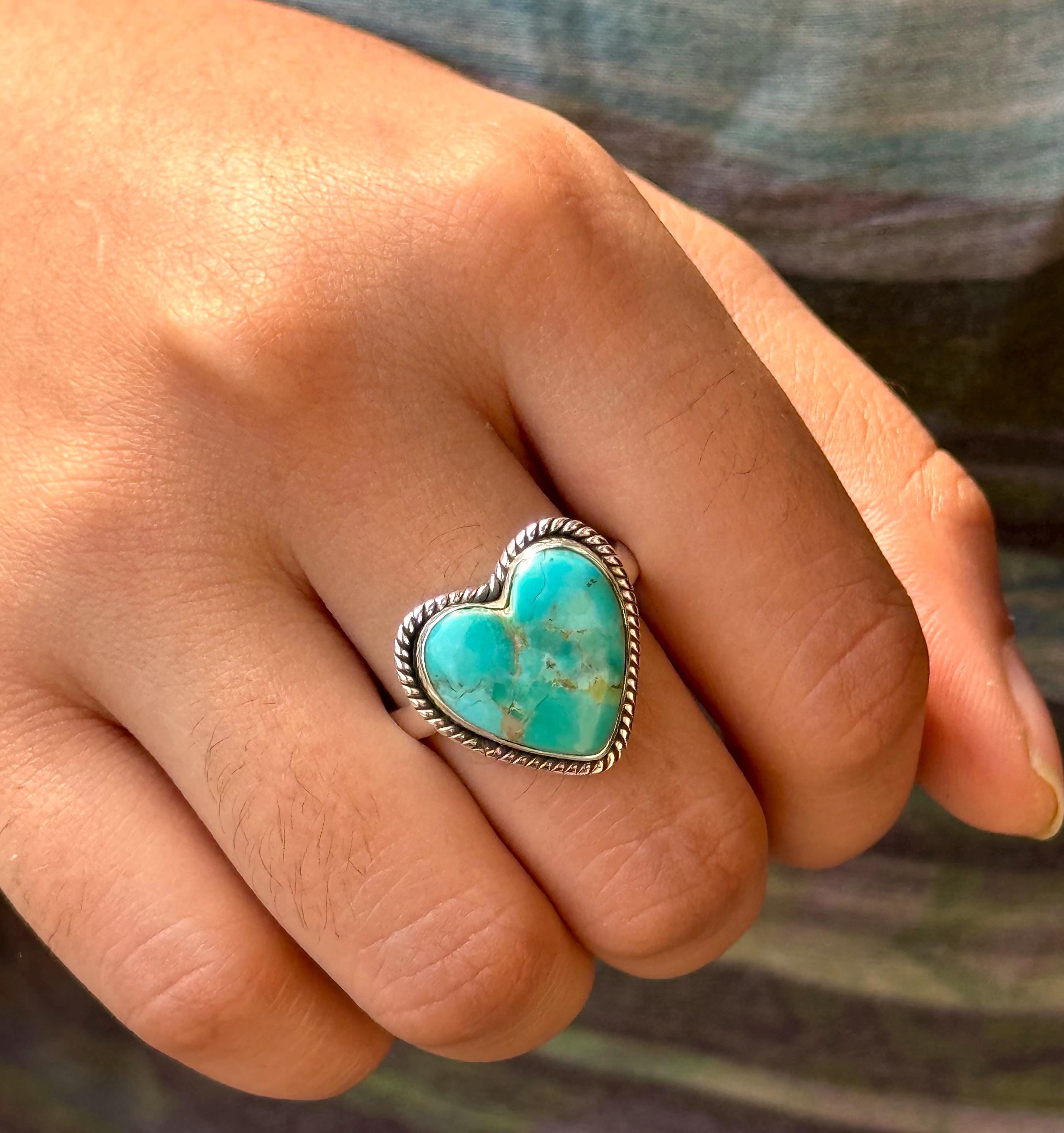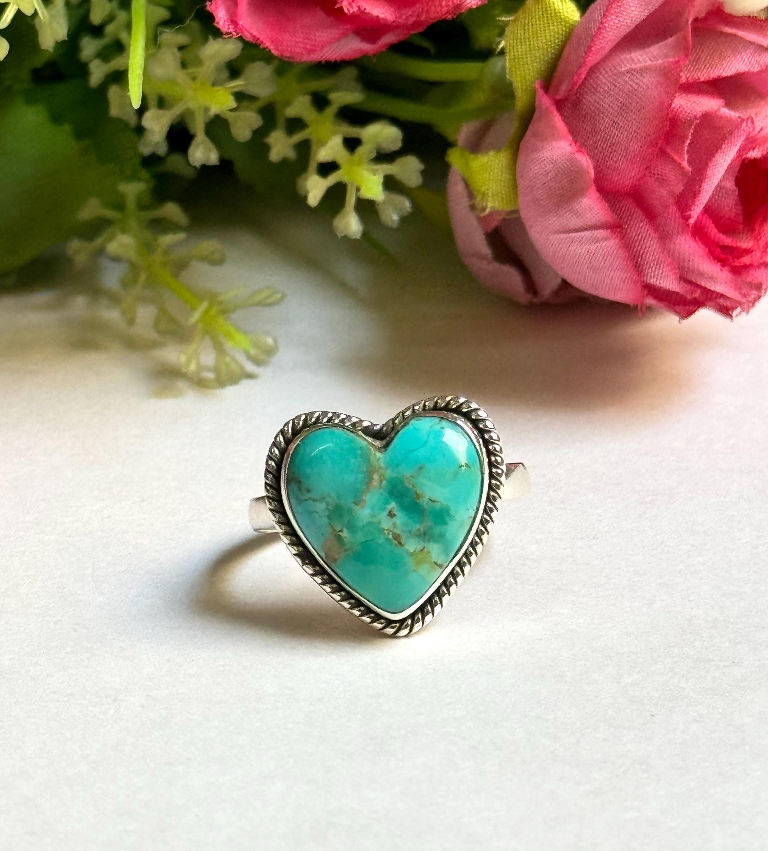 Embrace timeless elegance with our Turquoise Ring. Crafted in 925 Sterling Silver, this stunning piece features a large heart-cut turquoise stone, exuding charm and style. Elevate any look with the vibrant beauty of this solitaire ring.