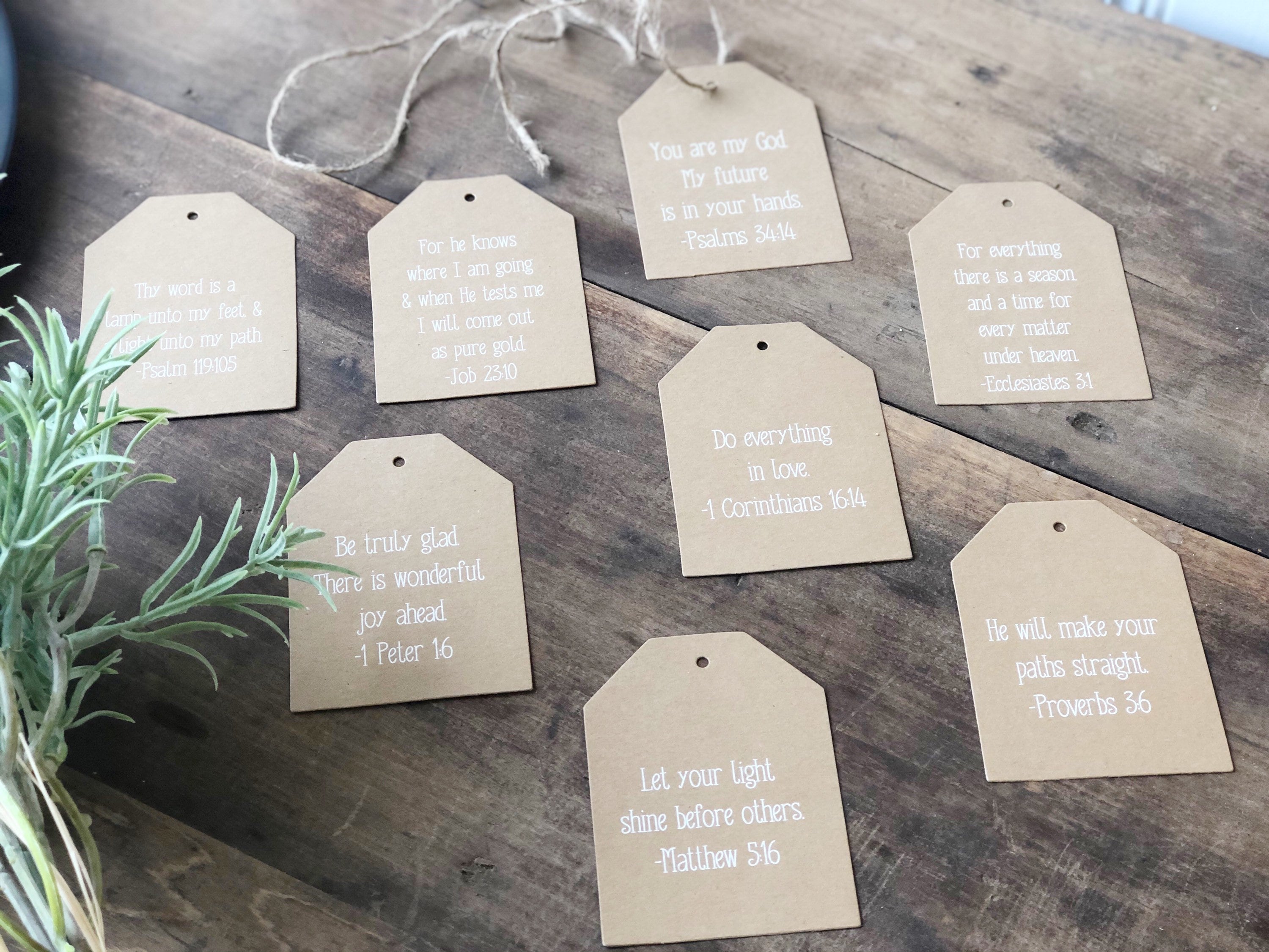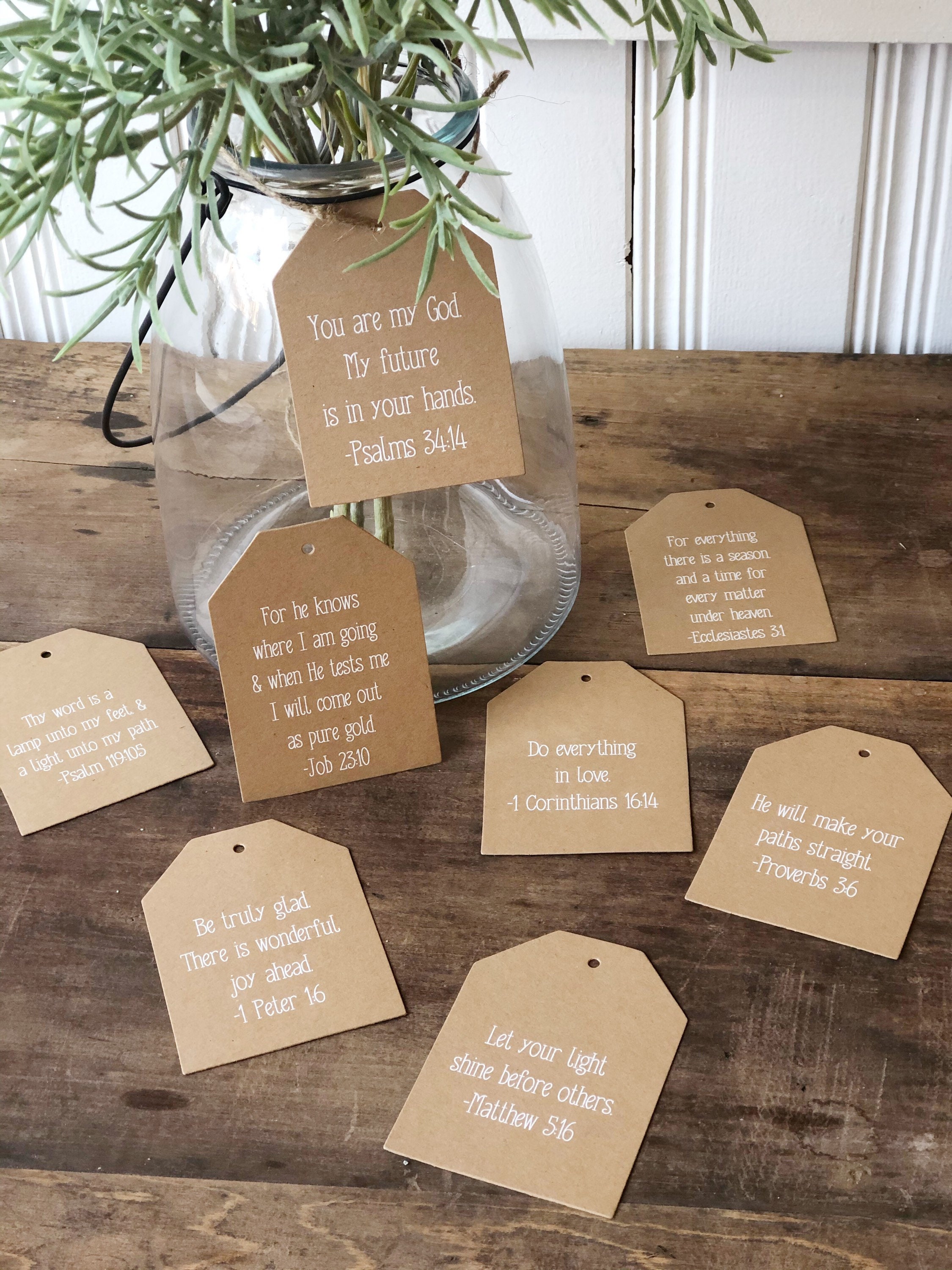 Girl/Guy Graduation Centerpiece Tags - Christian Bible Verse Graduation Tags - 8 PRINTED Bible Verse Tagss