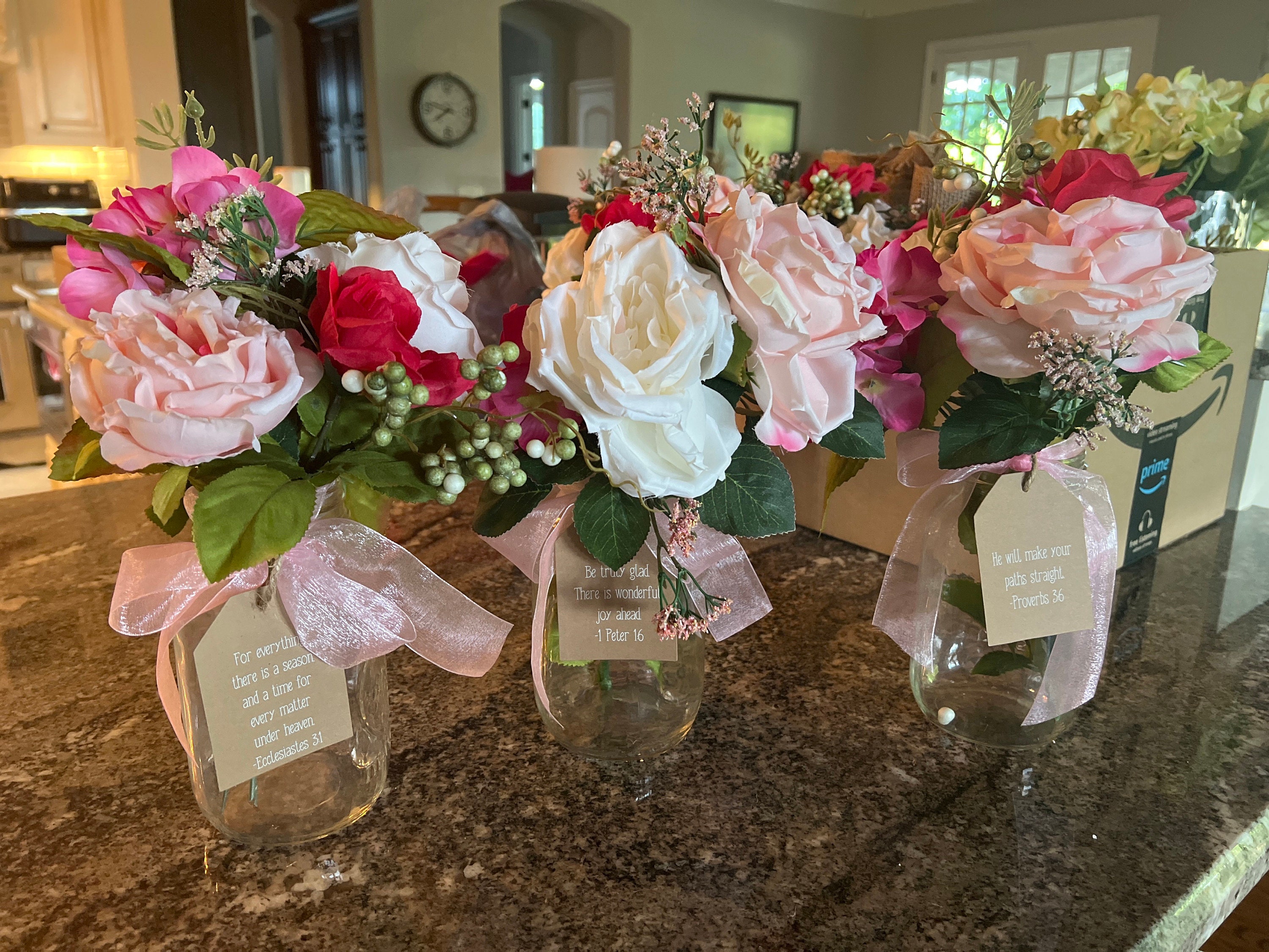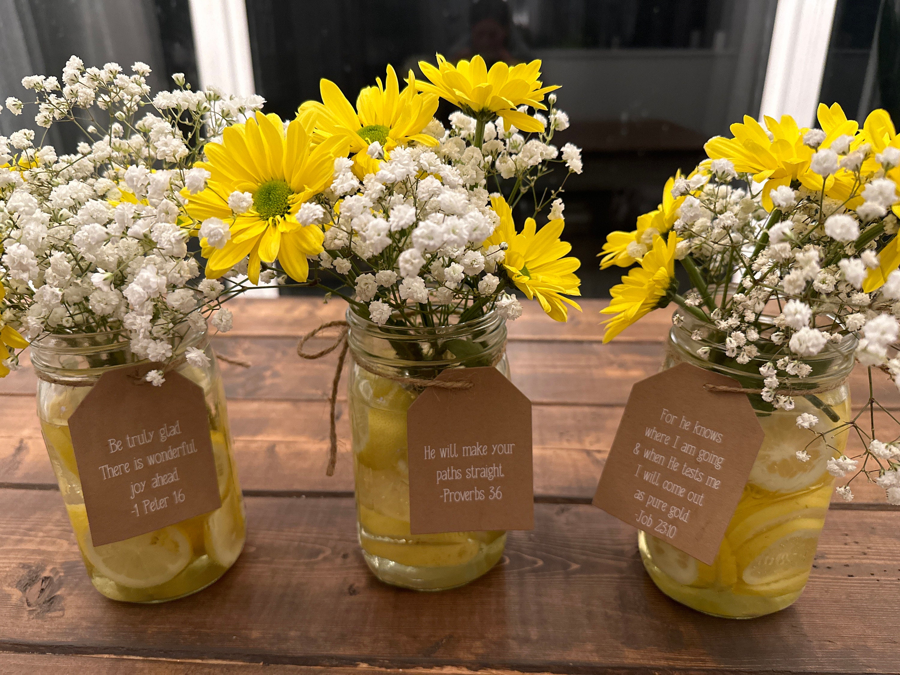 Each set will contain one of each of these bible verses shown in the photographs, motivational and inspirational, they make a sweet little addition to any centerpiece or gift, we created them for graduation season but they would also work well for church gatherings, retirement parties, or celebrations of any type.