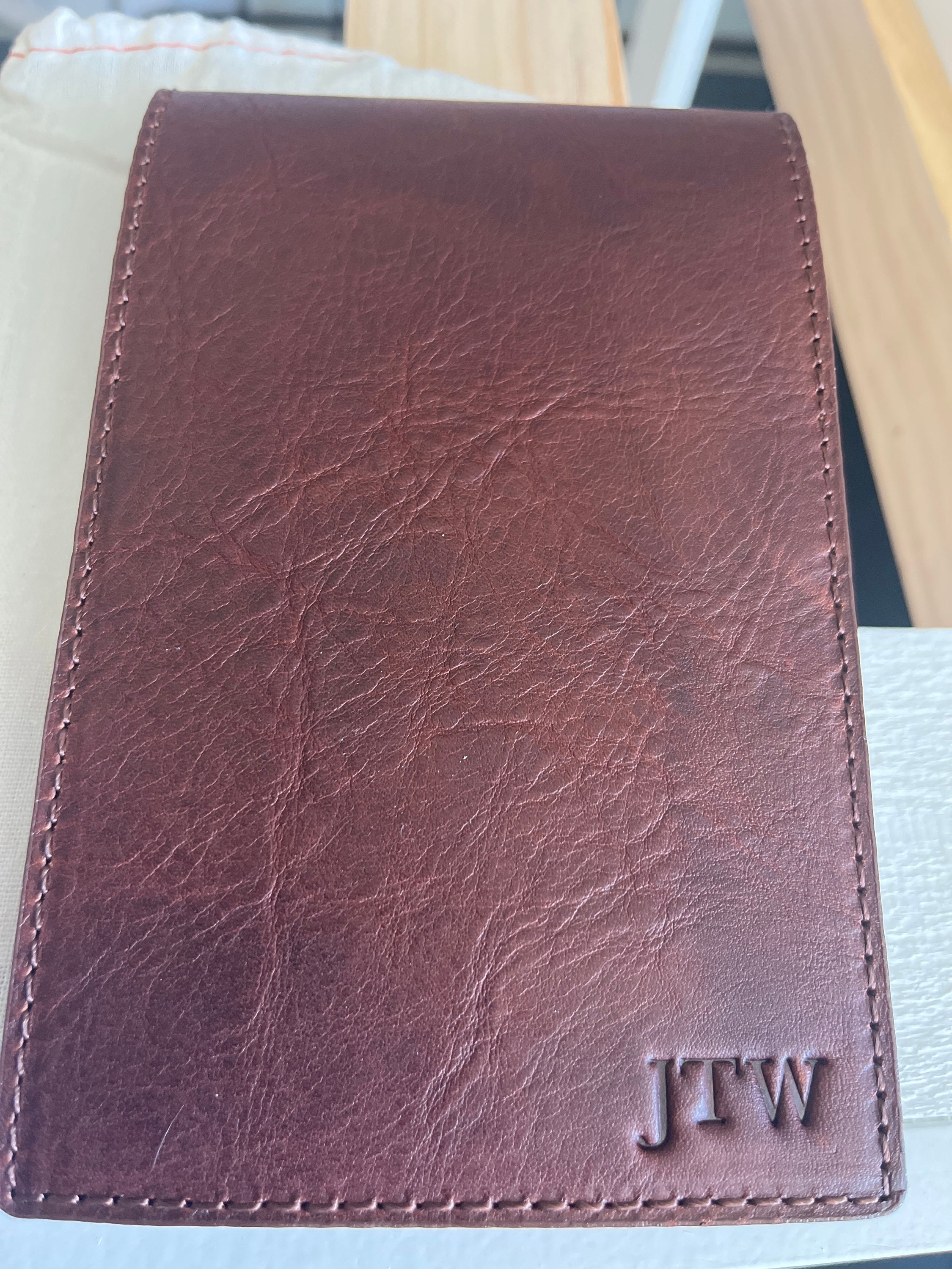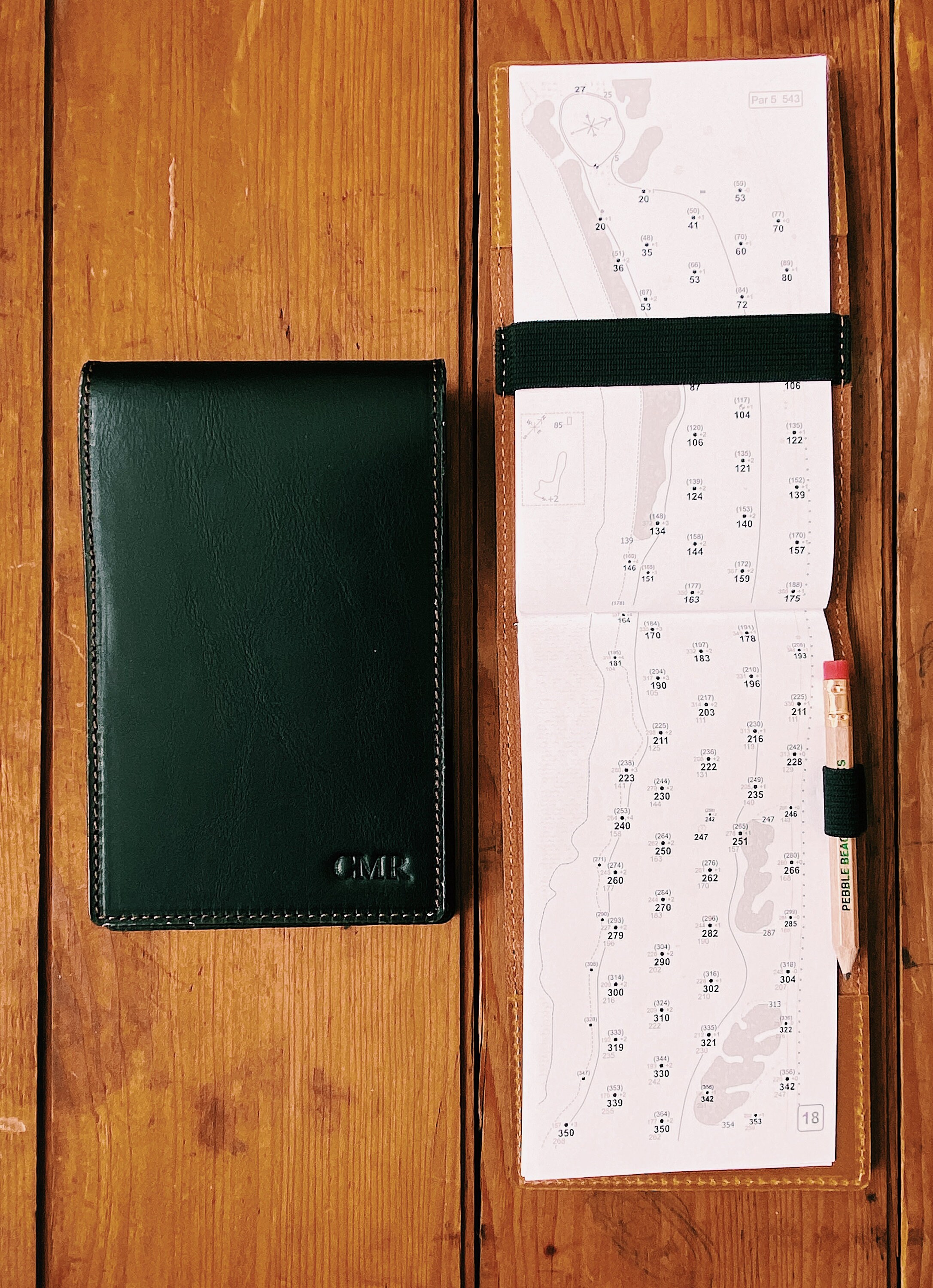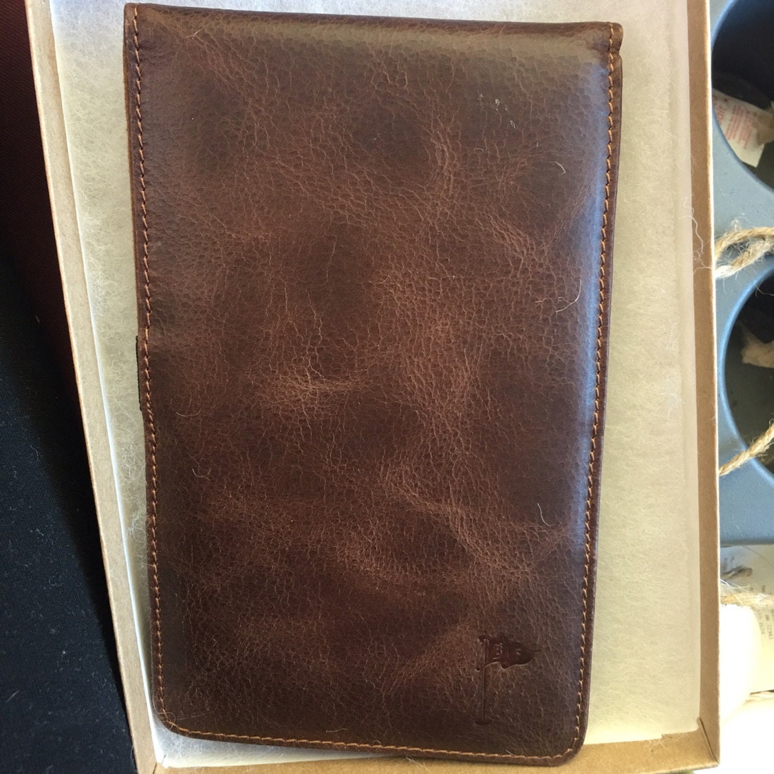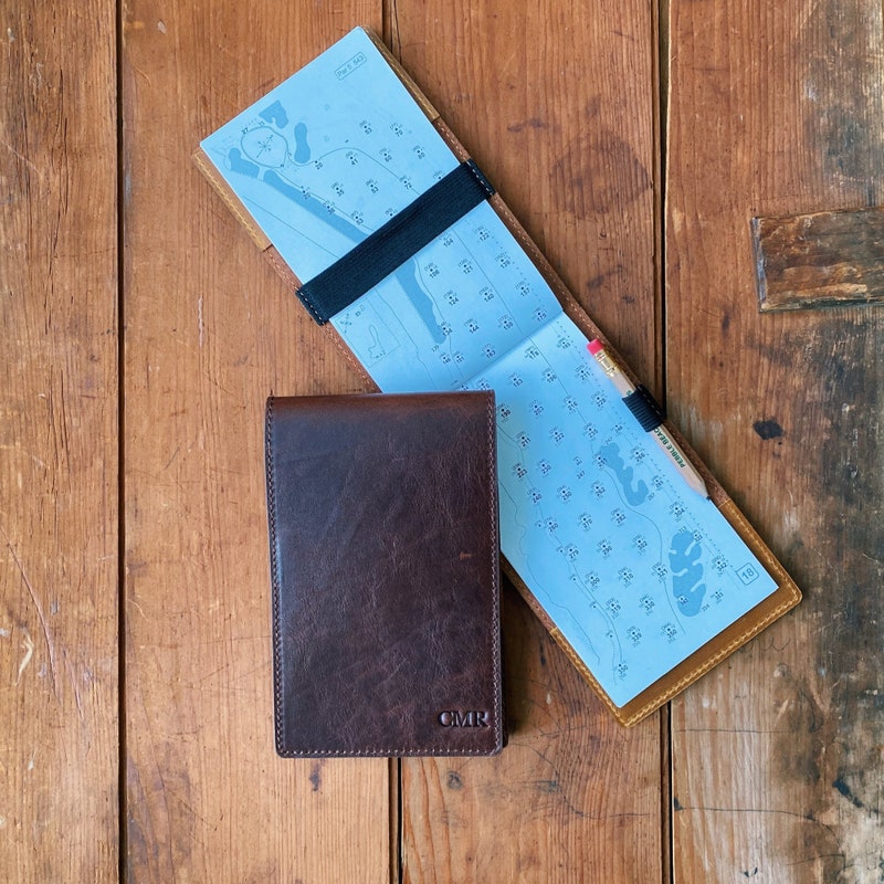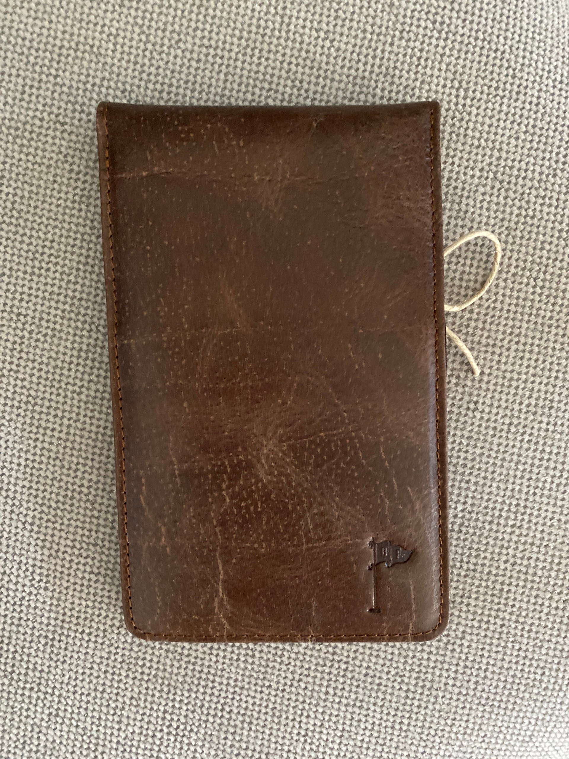 Handcrafted Golf Scorecard Holder. This piece is made from genuine full grain vintage tanned leather.