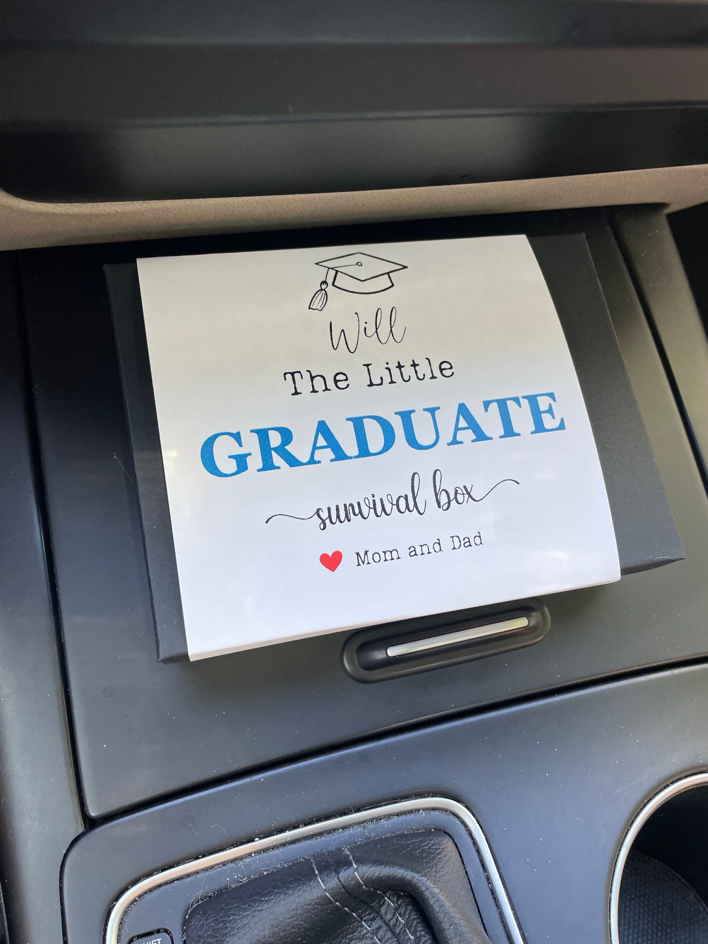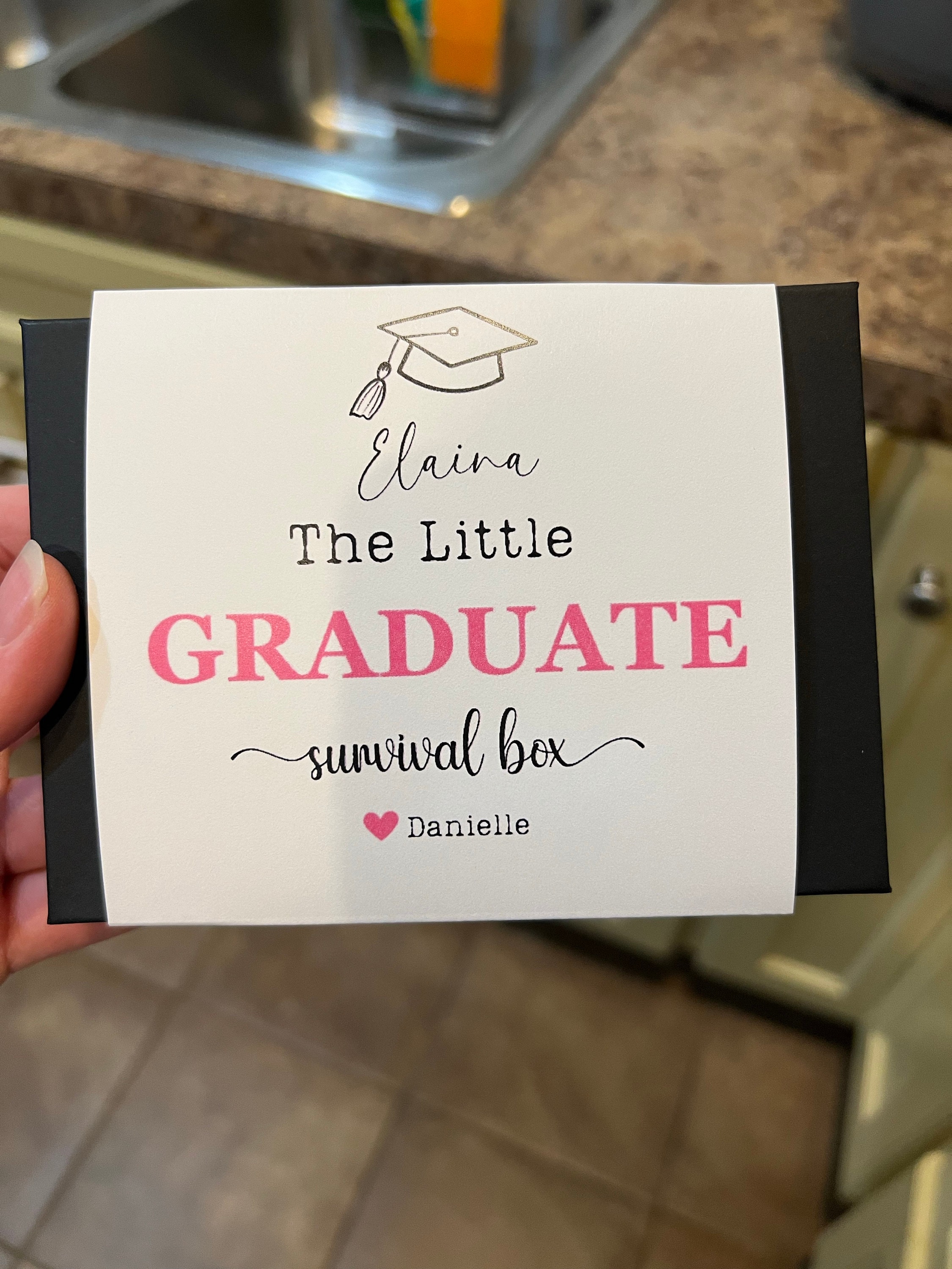 These cute little boxes contain 20 loose cards that you can use to stick gift cards or cash. It's the perfect gift for graduation. We personalize the box sleeve with your name for free.
