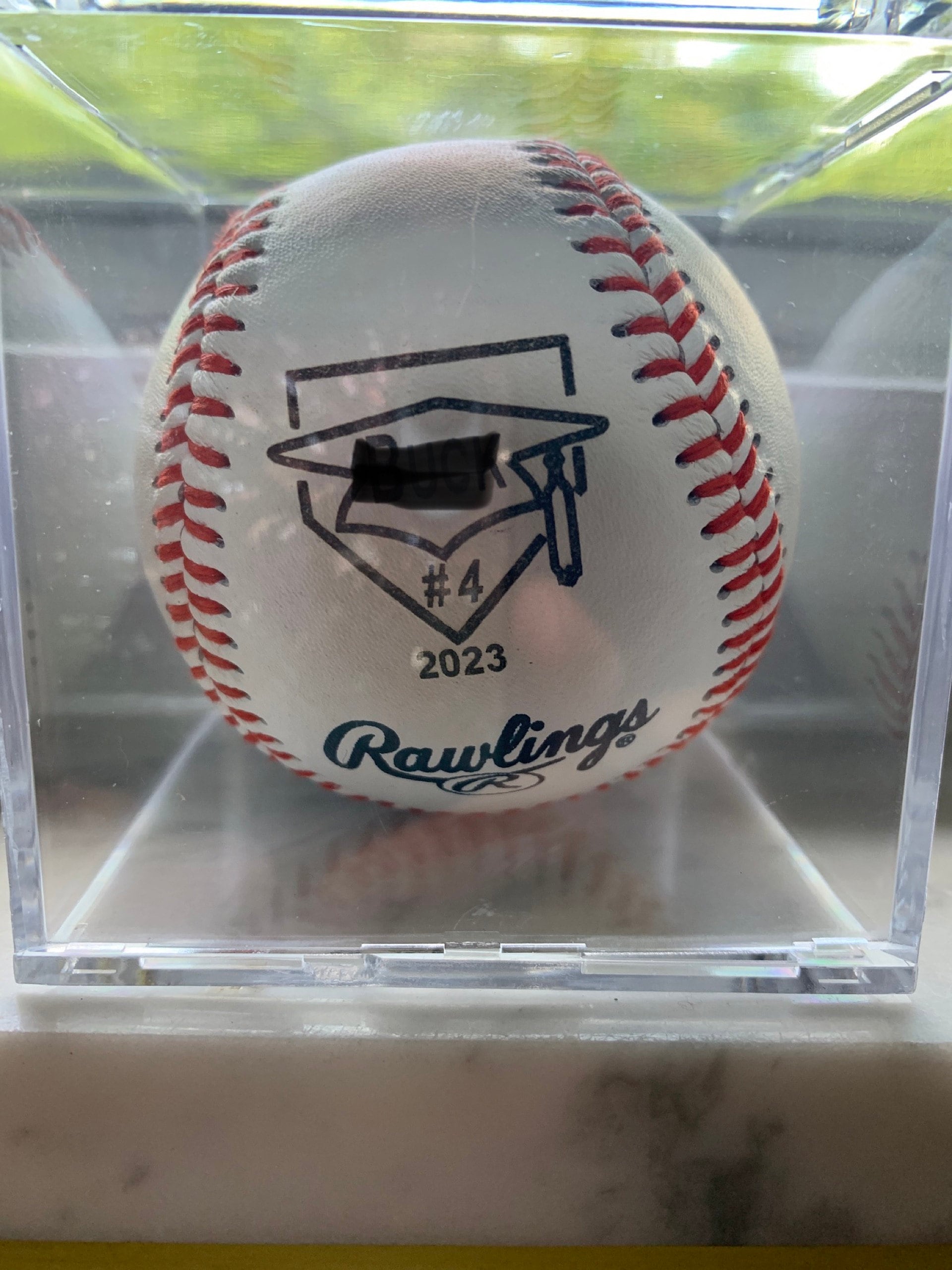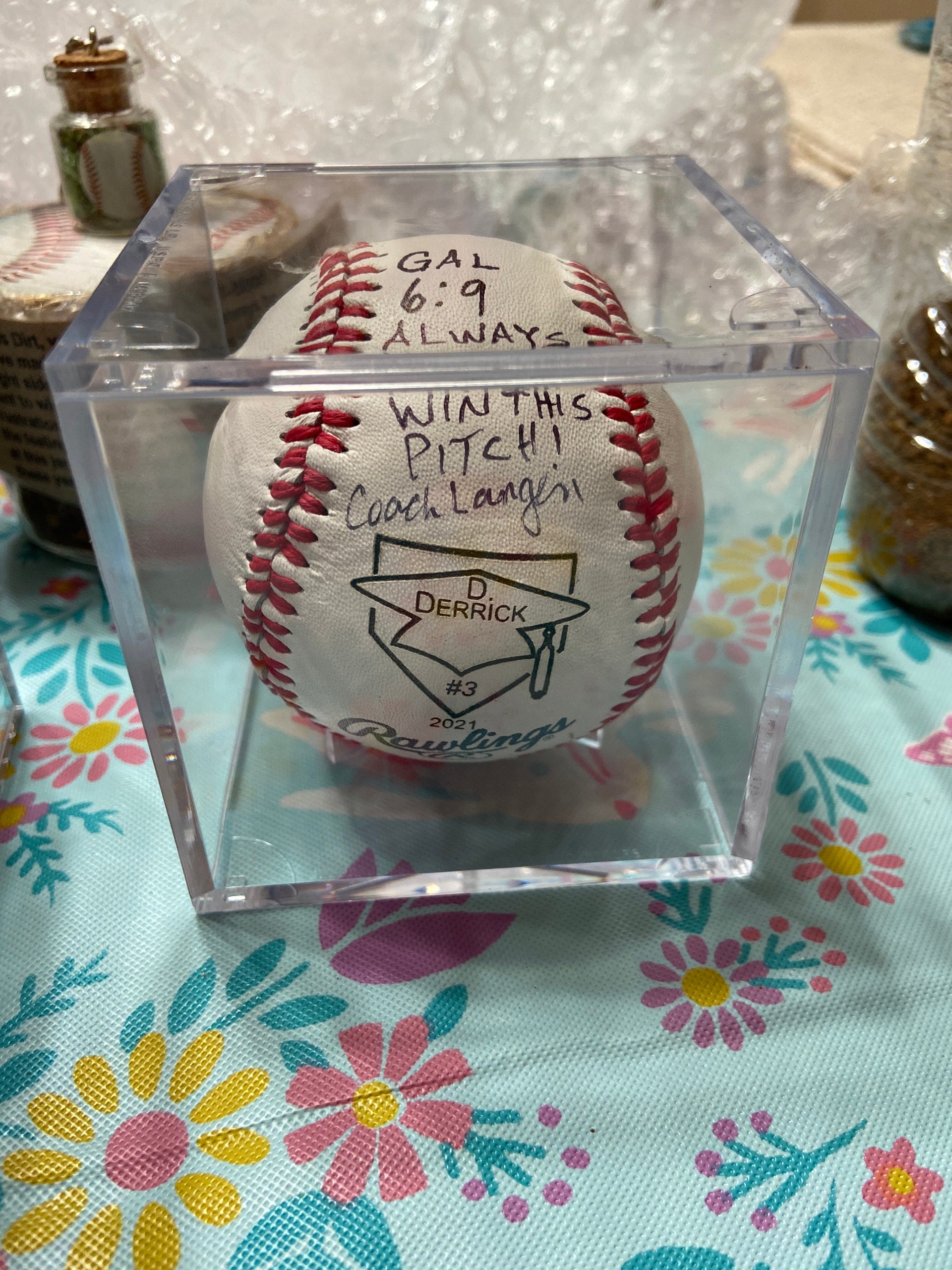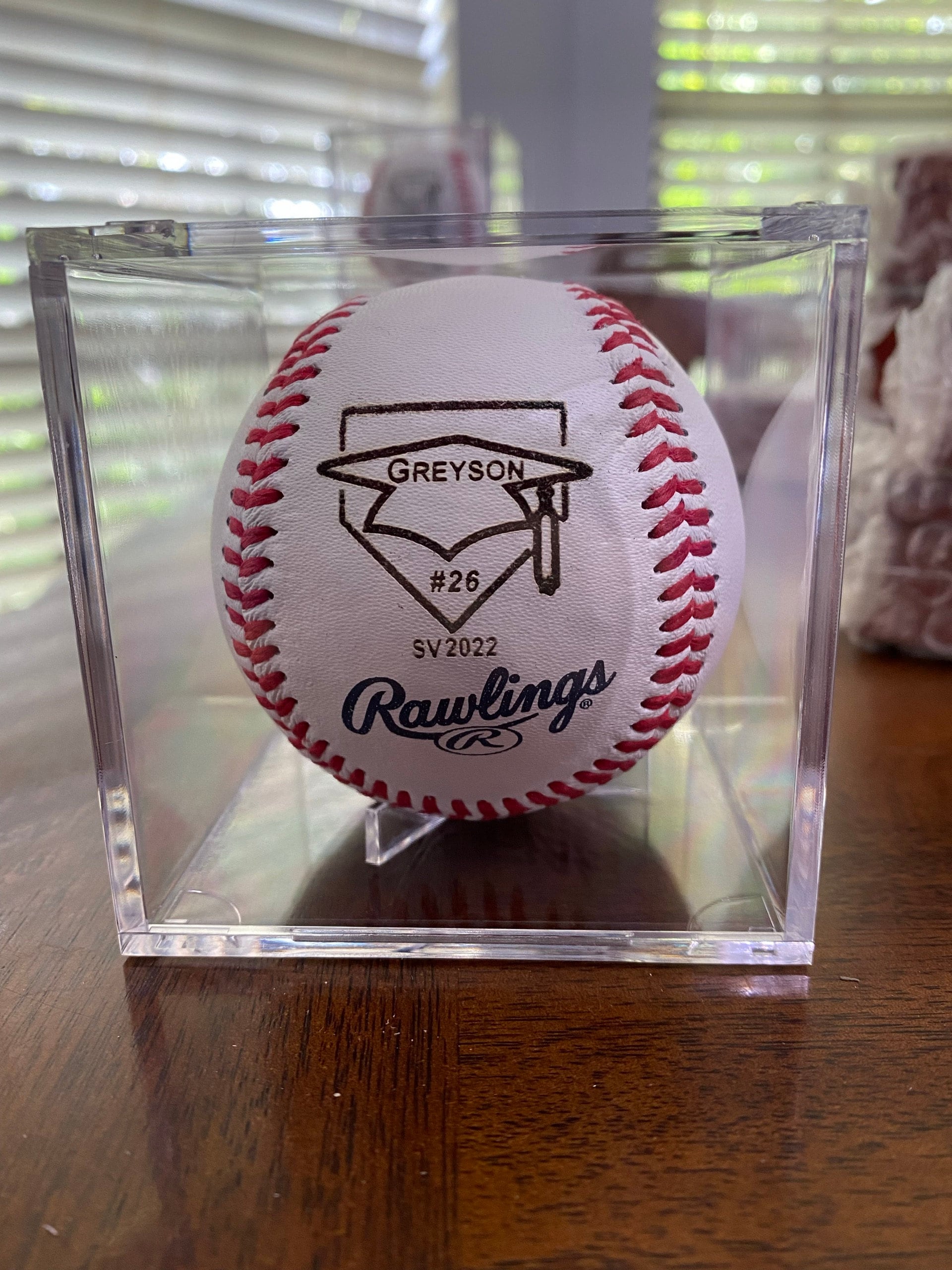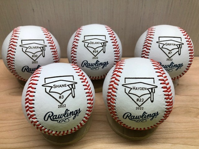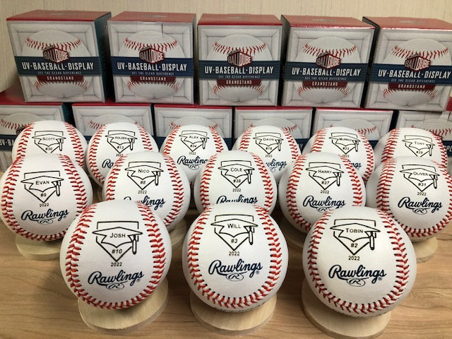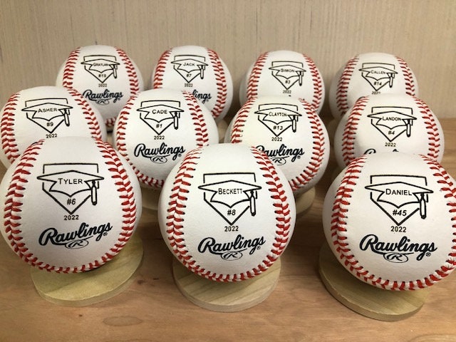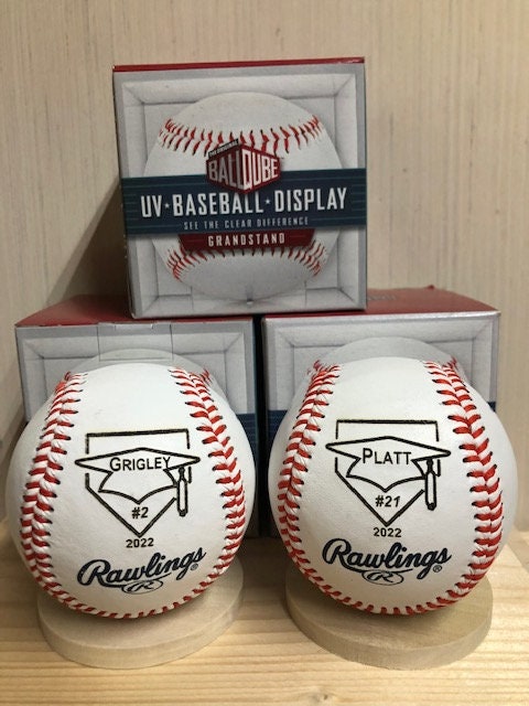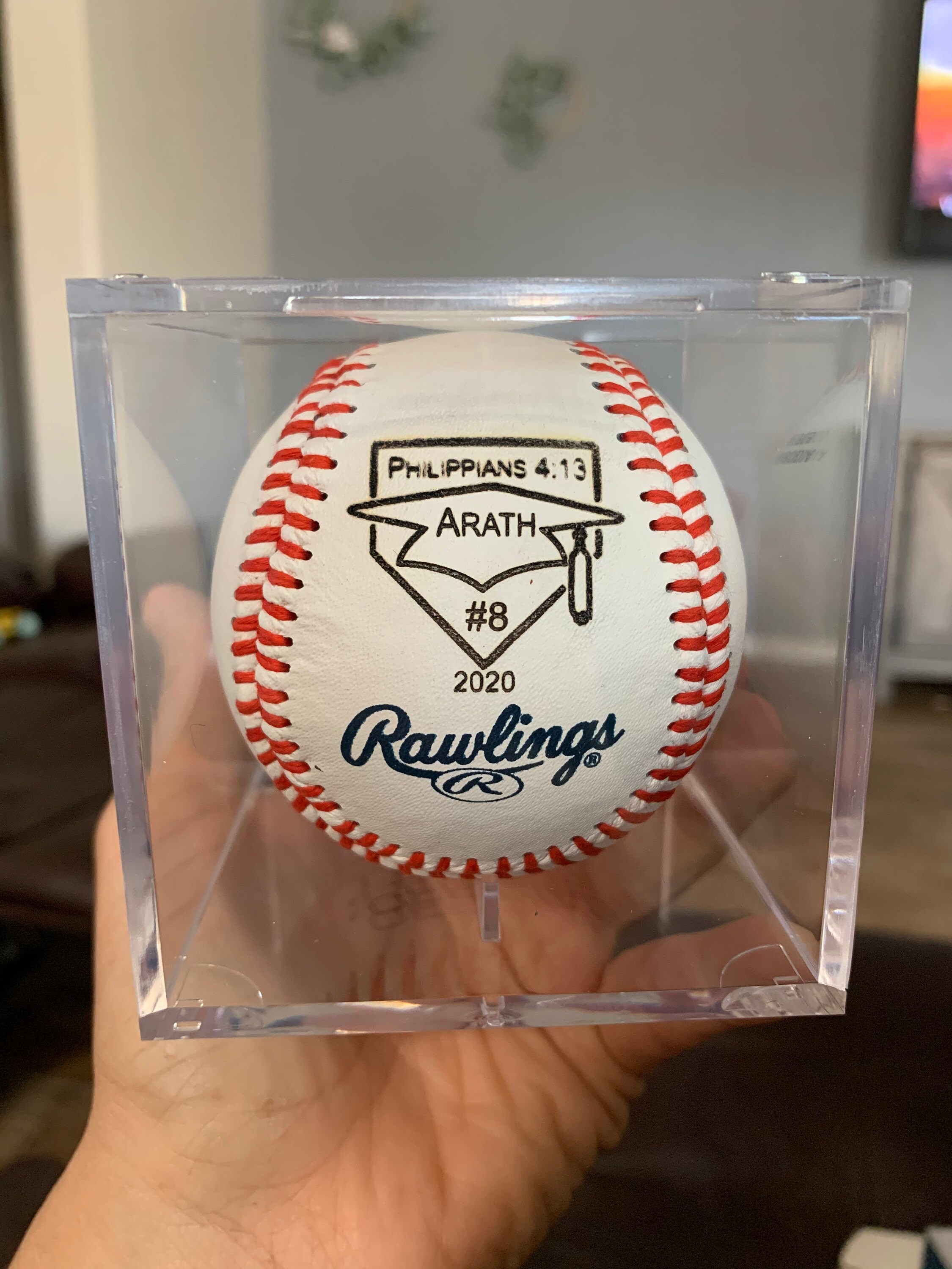This full size leather bound Little League engraved baseball is the perfect gift for your graduate! You can buy one or buy several to give to your graduate friends. It's the perfect way to celebrate his/her great accomplishment and create lifelong memories! The engraving on this baseball is approximately 1" x 1".