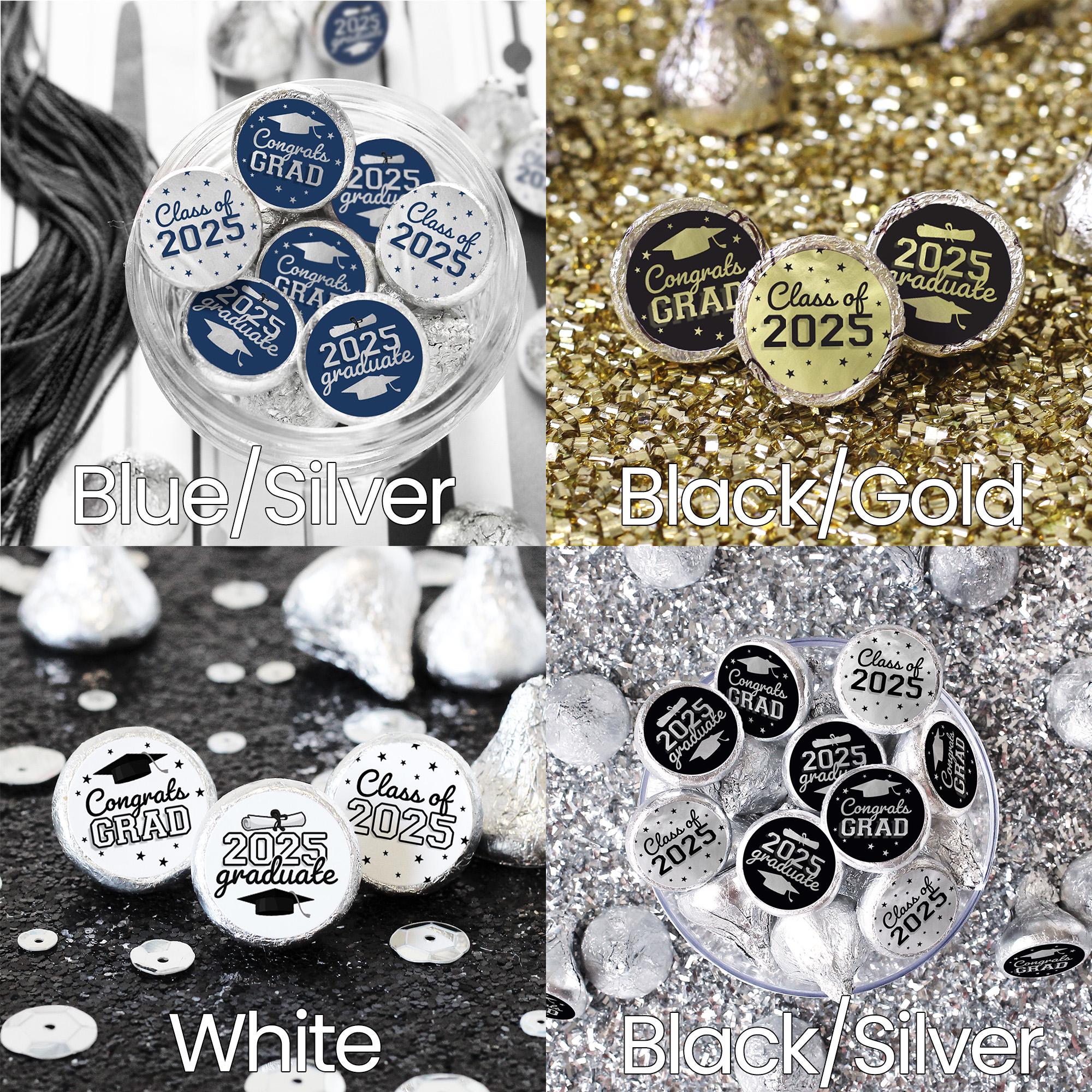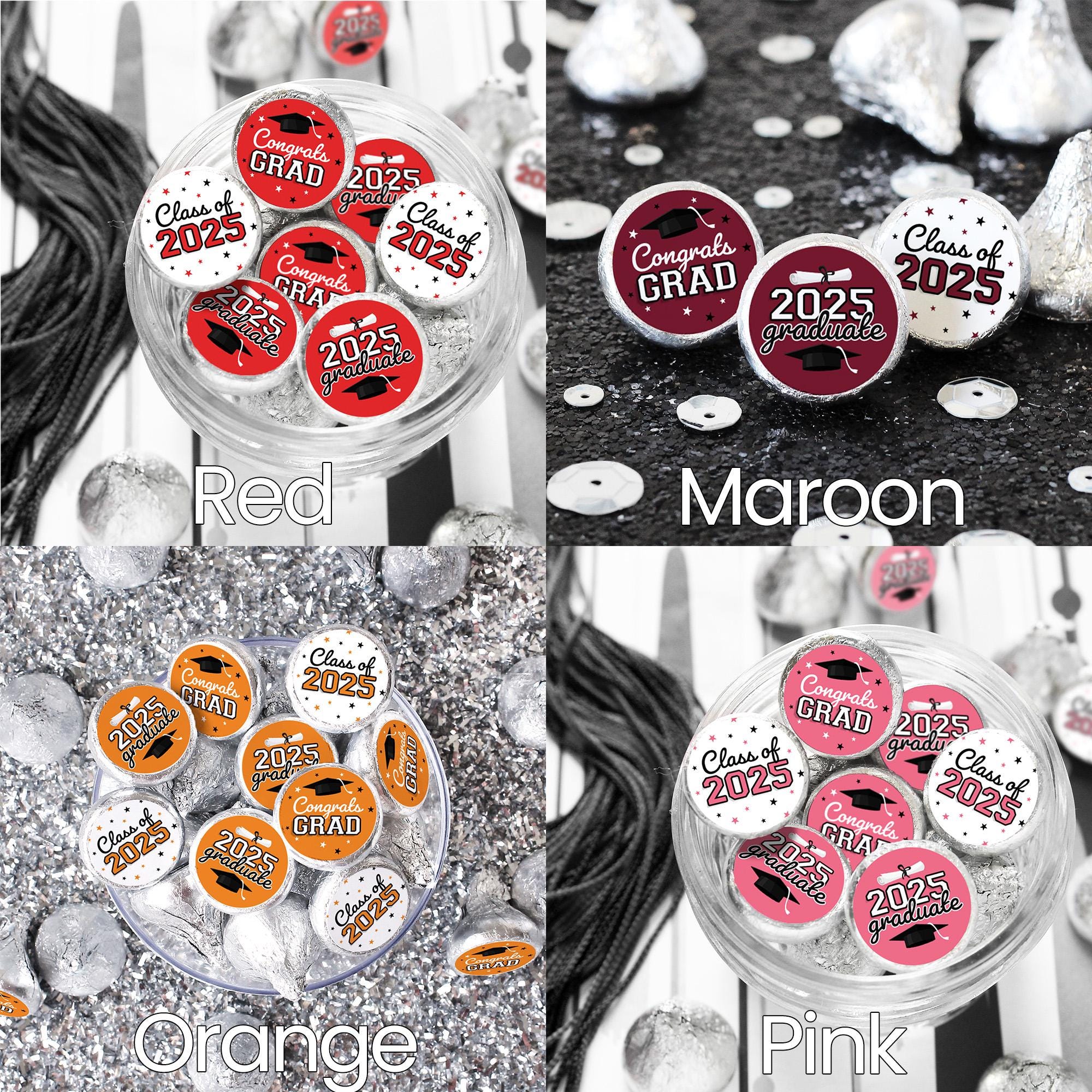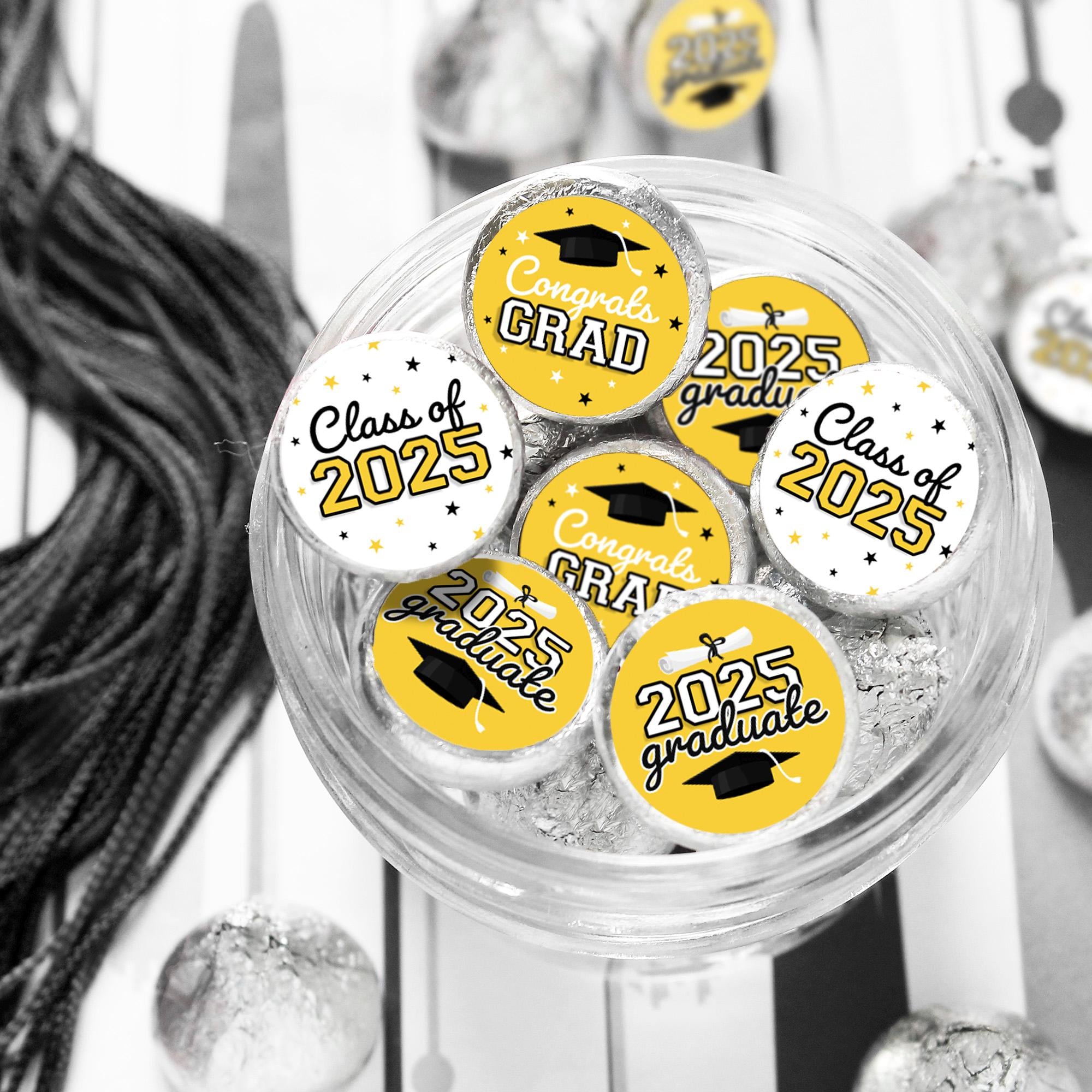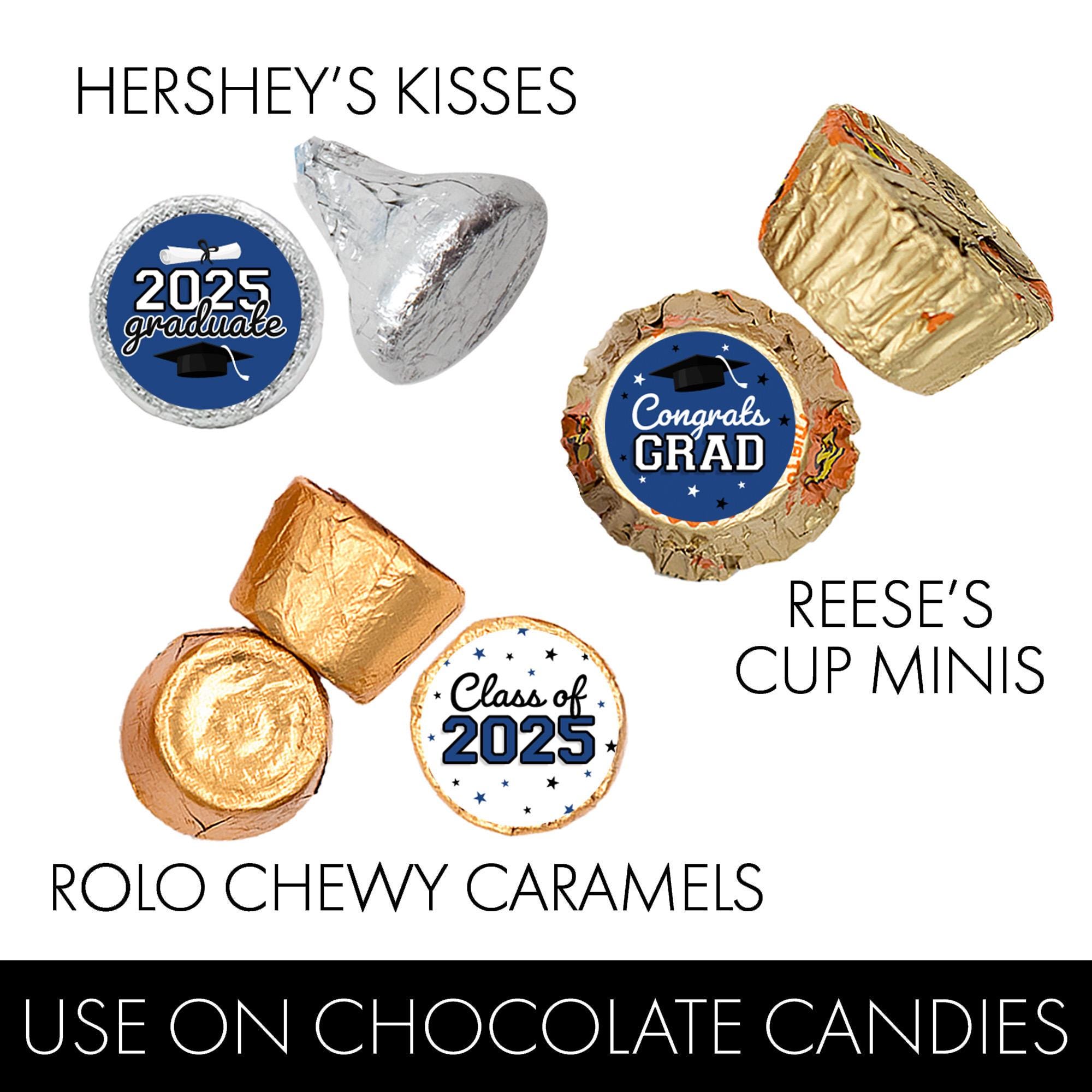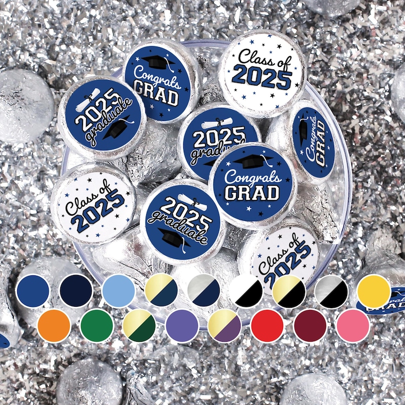 Celebrate the Class of 2025 with these Graduation 2025 Candy Stickers! Perfect for both Chocolate Kisses and Candy Favors, these stickers are perfect for adding a personal touch to your graduation party decor. They are a must-have for your 2025 graduation celebration and come in 17 school colors, making them a great addition to any graduation party supplies or graduation decorations. Make your party extra sweet with these fun and colorful stickers!