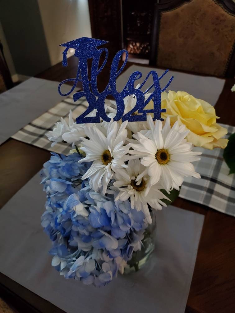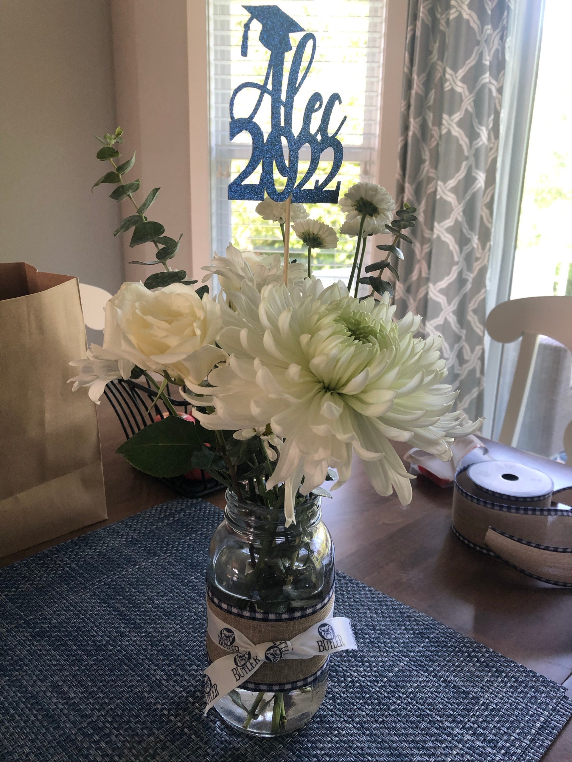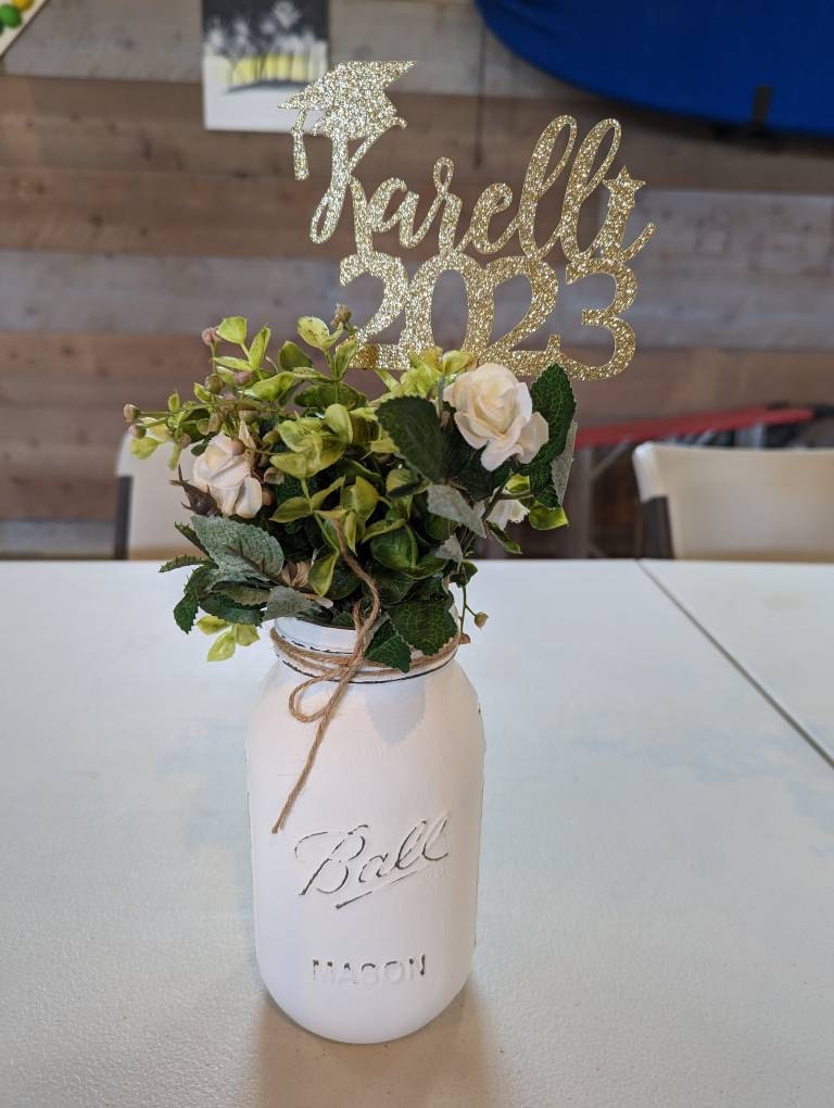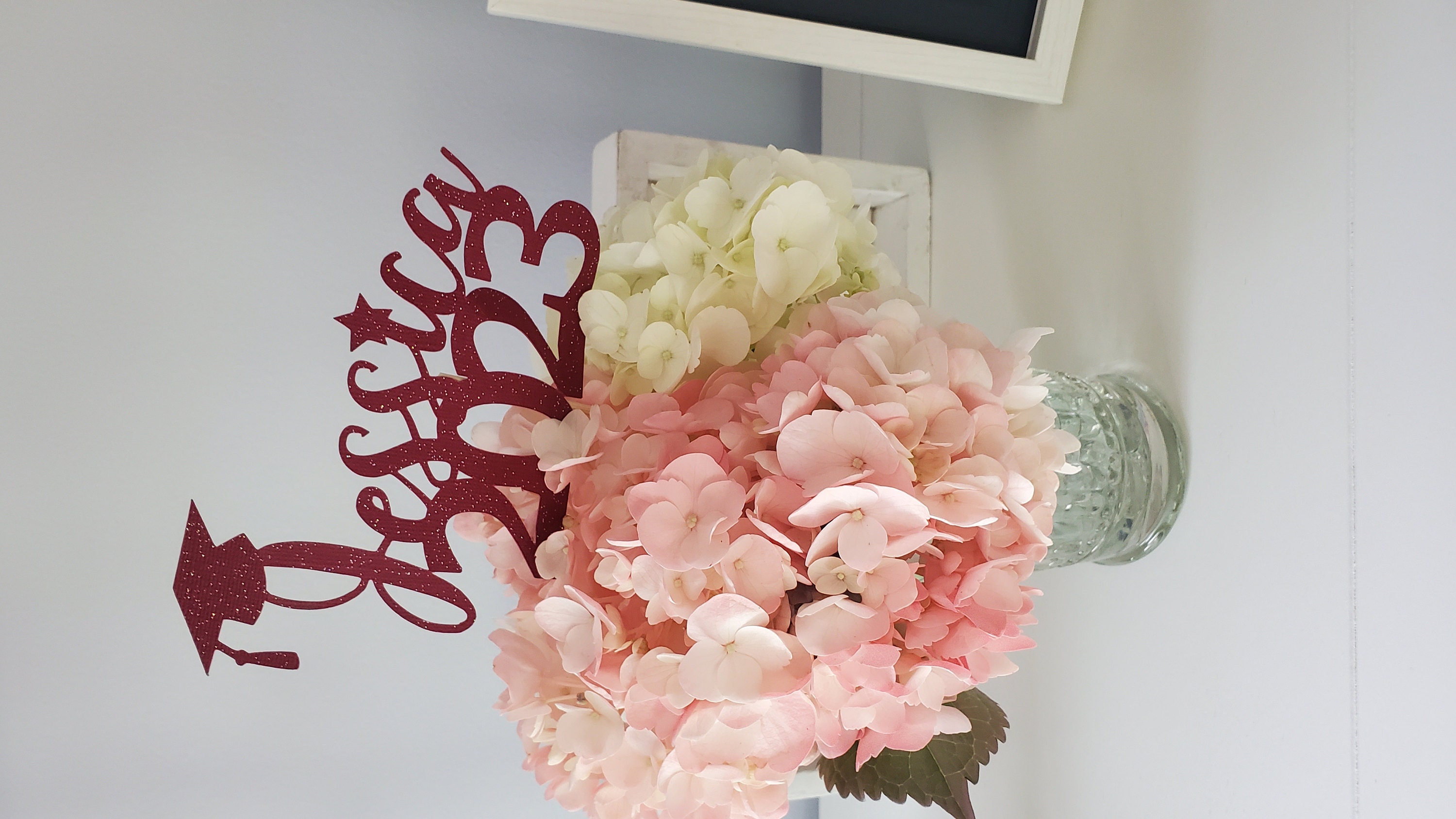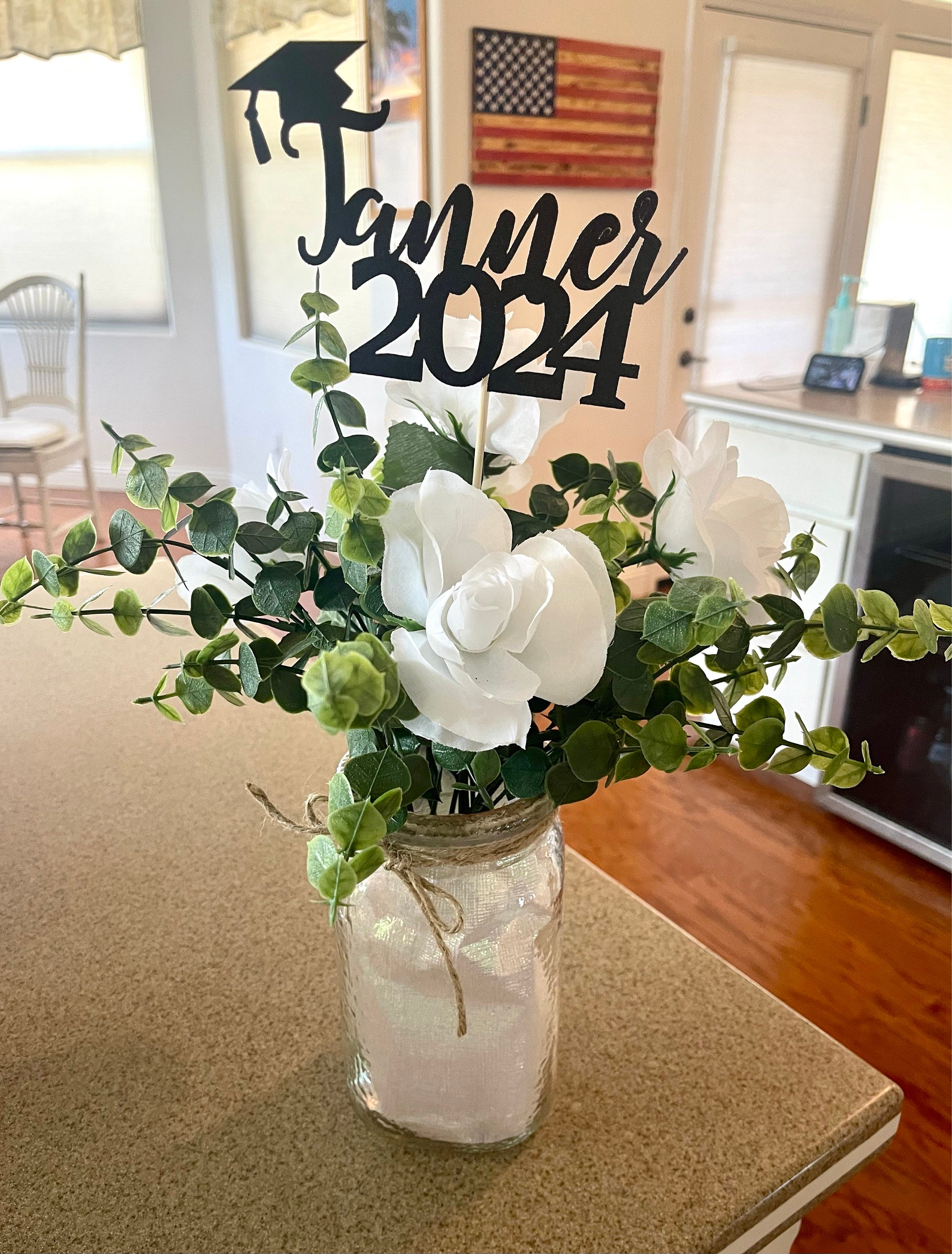 If you are looking for a non-cursive option, check out the "block font" version of this centerpiece in the link below!
