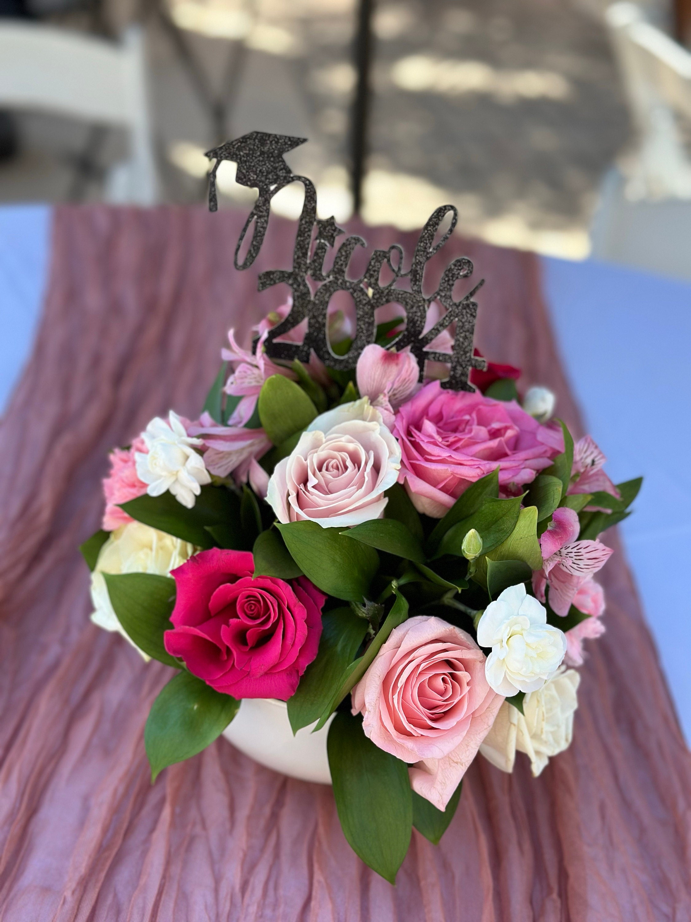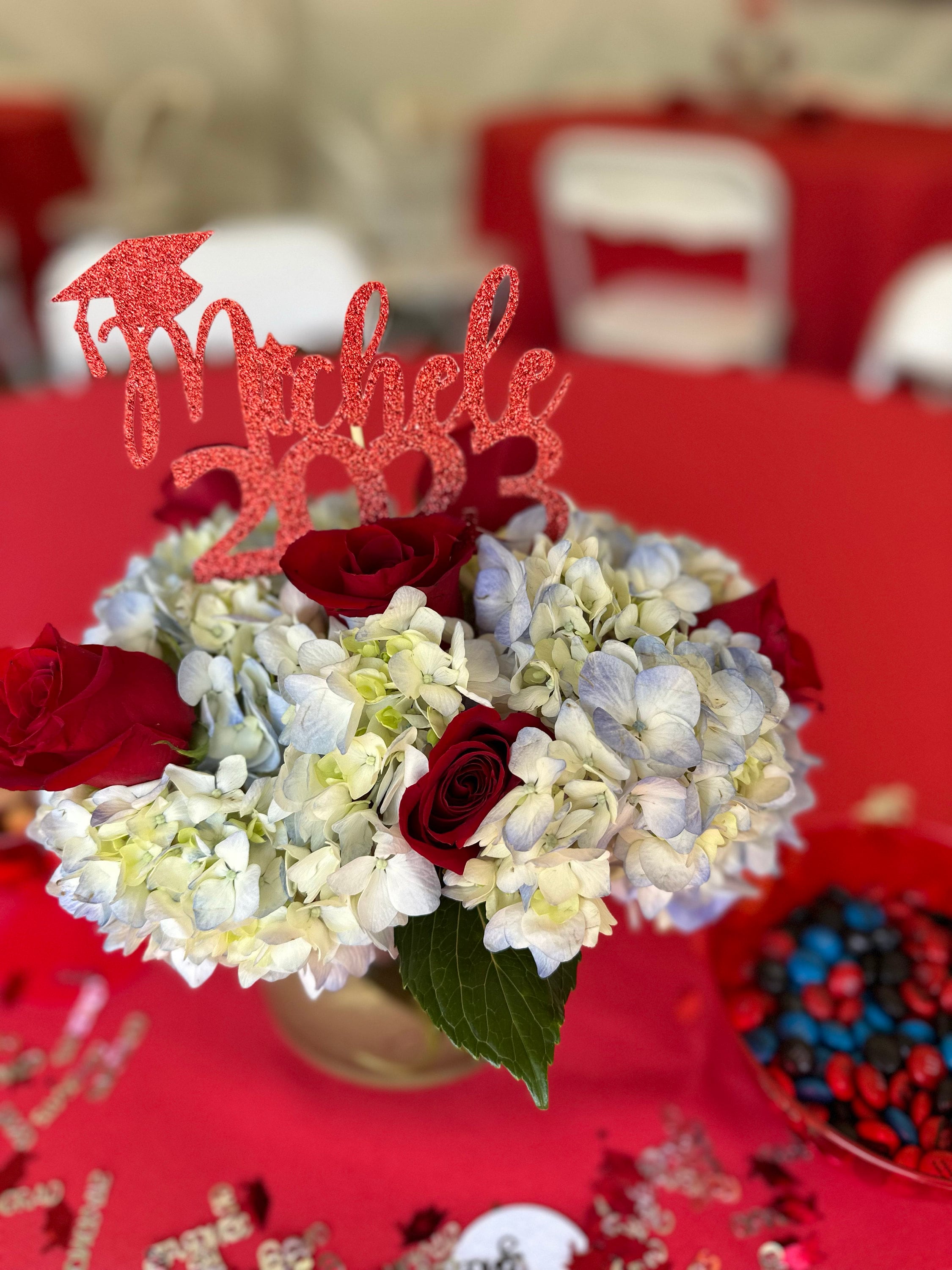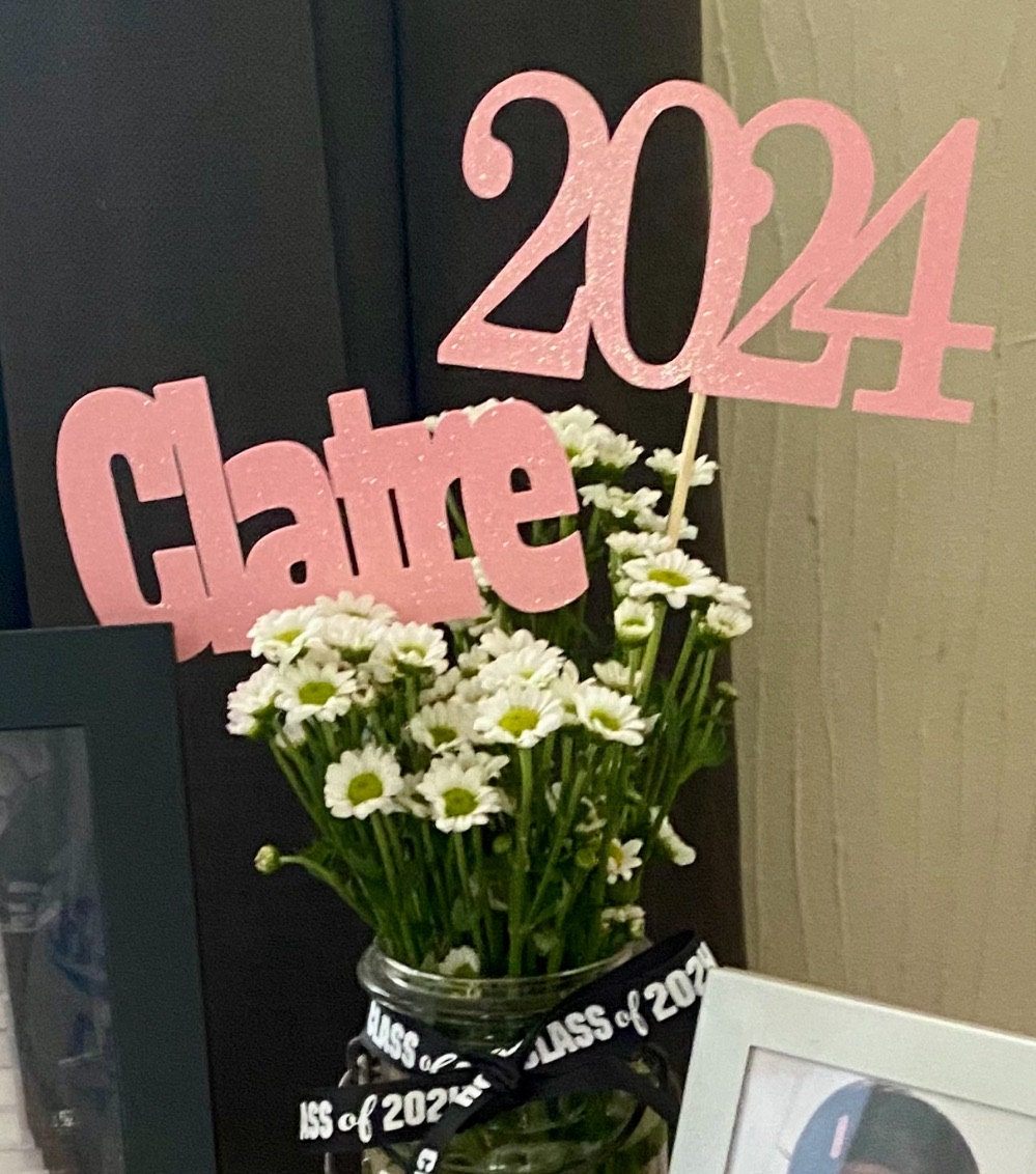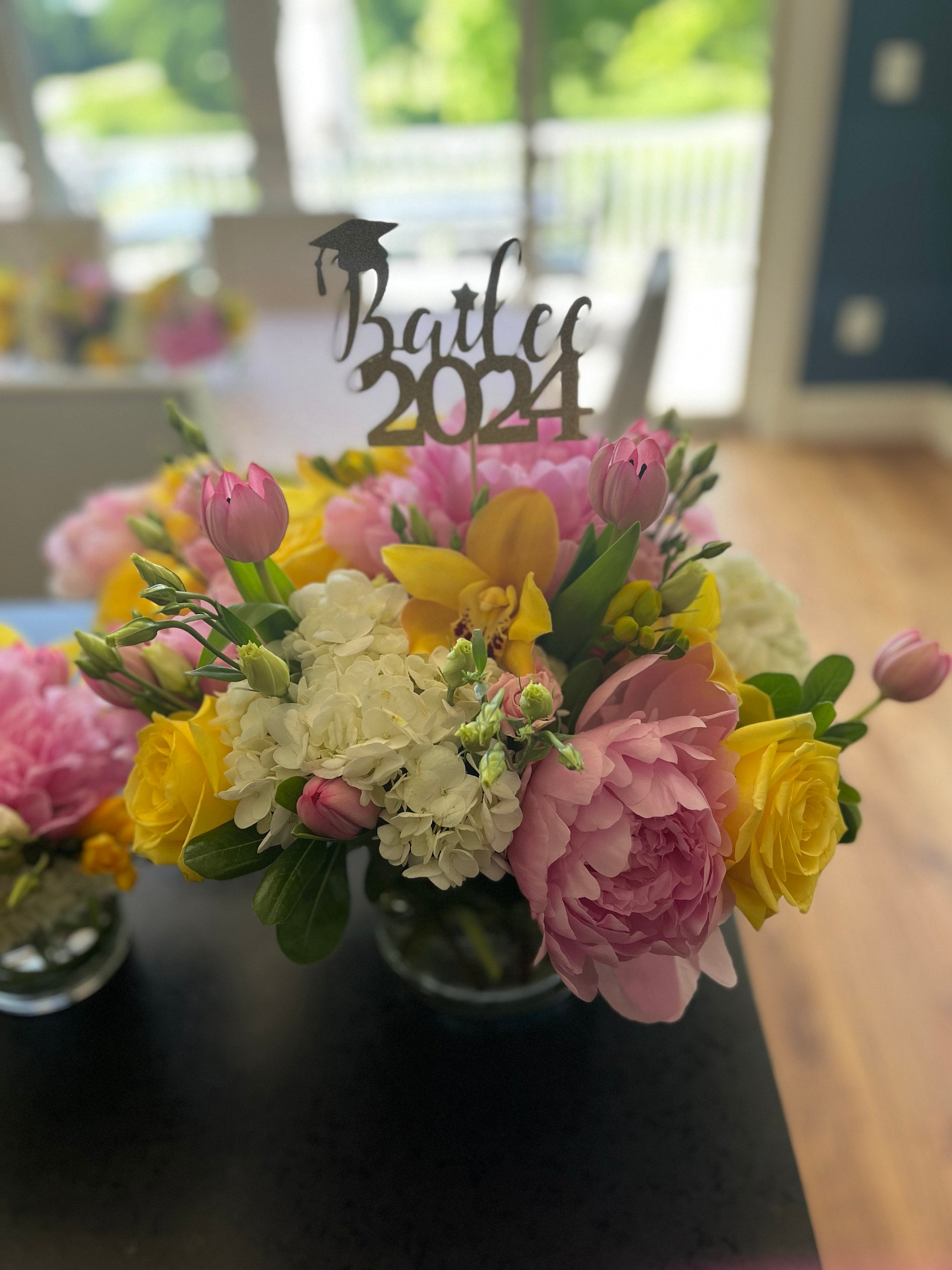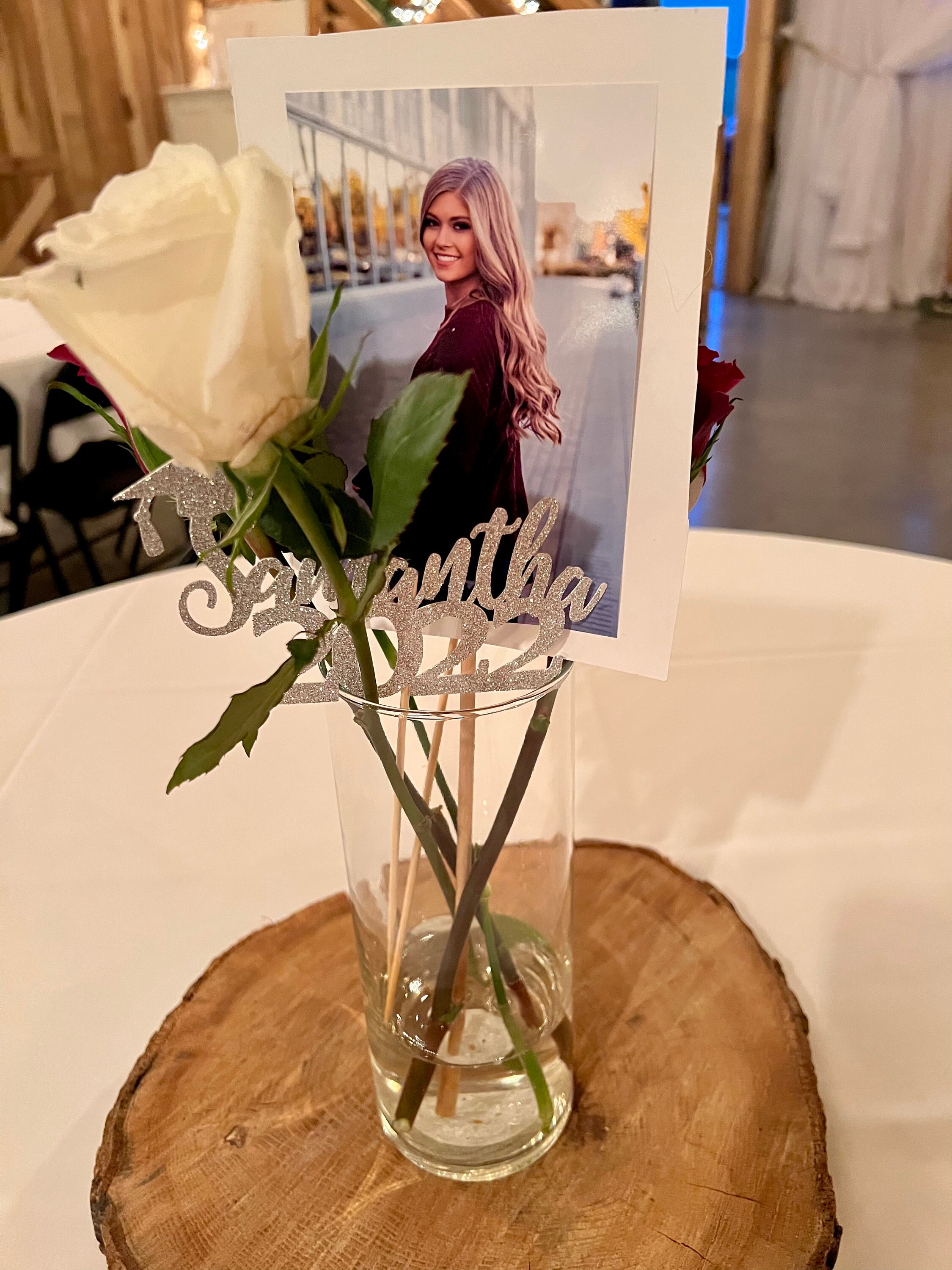 If you are looking for a non-cursive option, check out the "block font" version of this centerpiece in the link below!