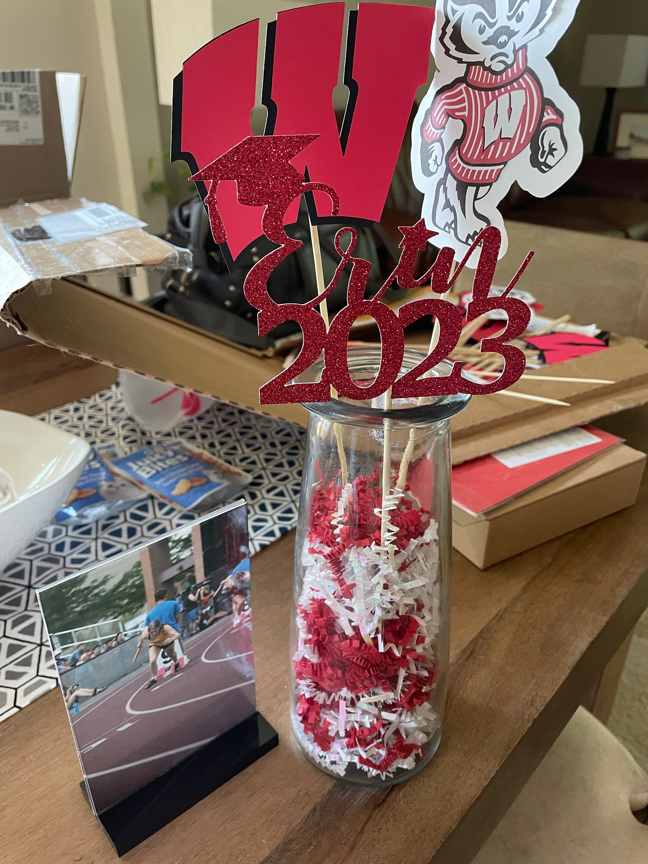 These centerpiece sticks are made from glitter cardstock and will make your celebration a hit! Stick them anywhere or use as photo props!