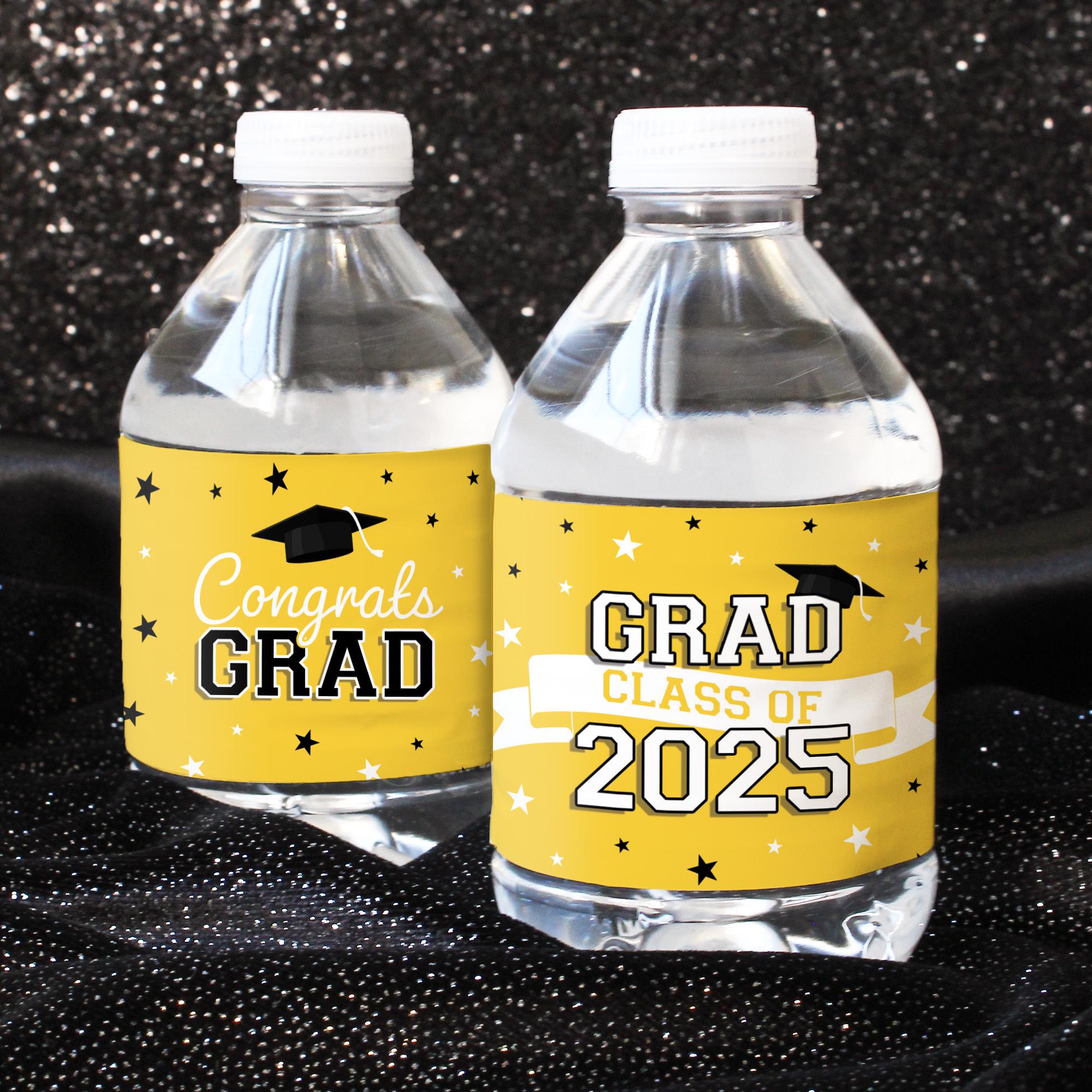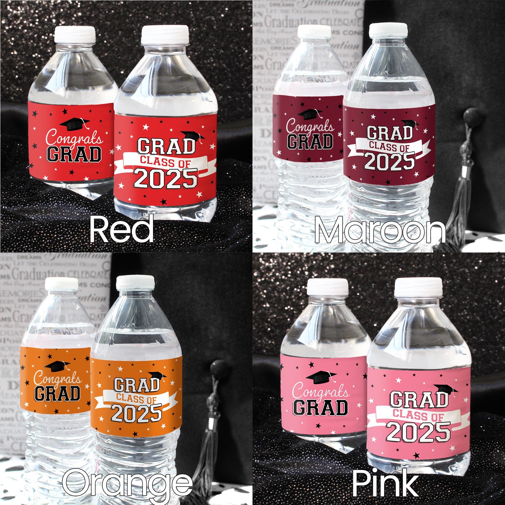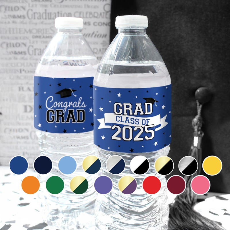 Add a personalized touch to your celebration with these 2025 Graduation Water Bottle Labels! Perfect for Graduation Party Decorations, these waterproof stickers are designed to celebrate the Graduation Class of 2025 in style. Ideal for Graduation 2025 parties, they make a great addition to your Graduation Party Supplies and can easily transform your water bottles into fun party favors. Available in 17 school colors, these Graduation Water Bottle Labels 2025 are the perfect Graduation Decorations and Graduation Party Stickers to make your grad party memorable and unique!