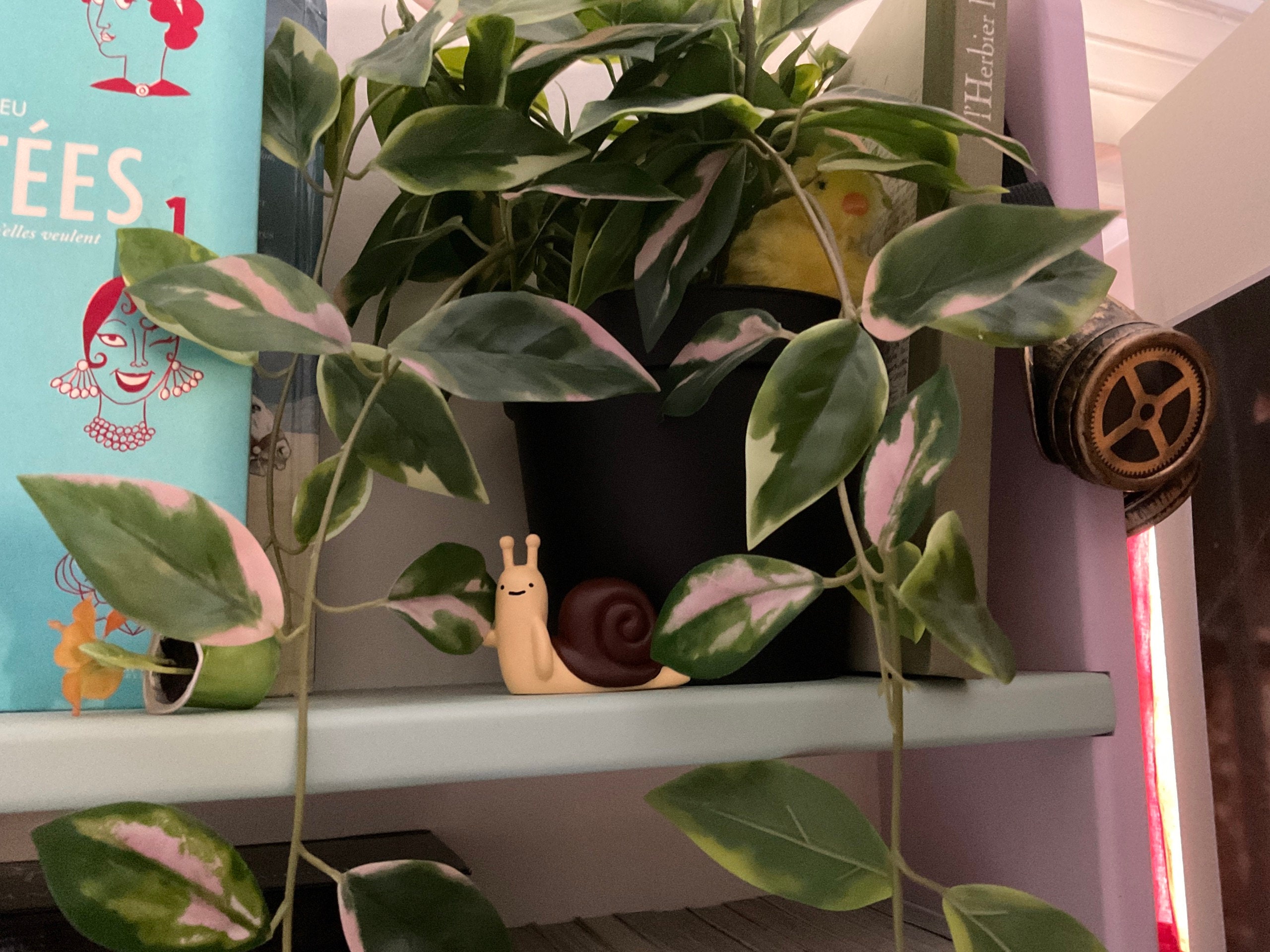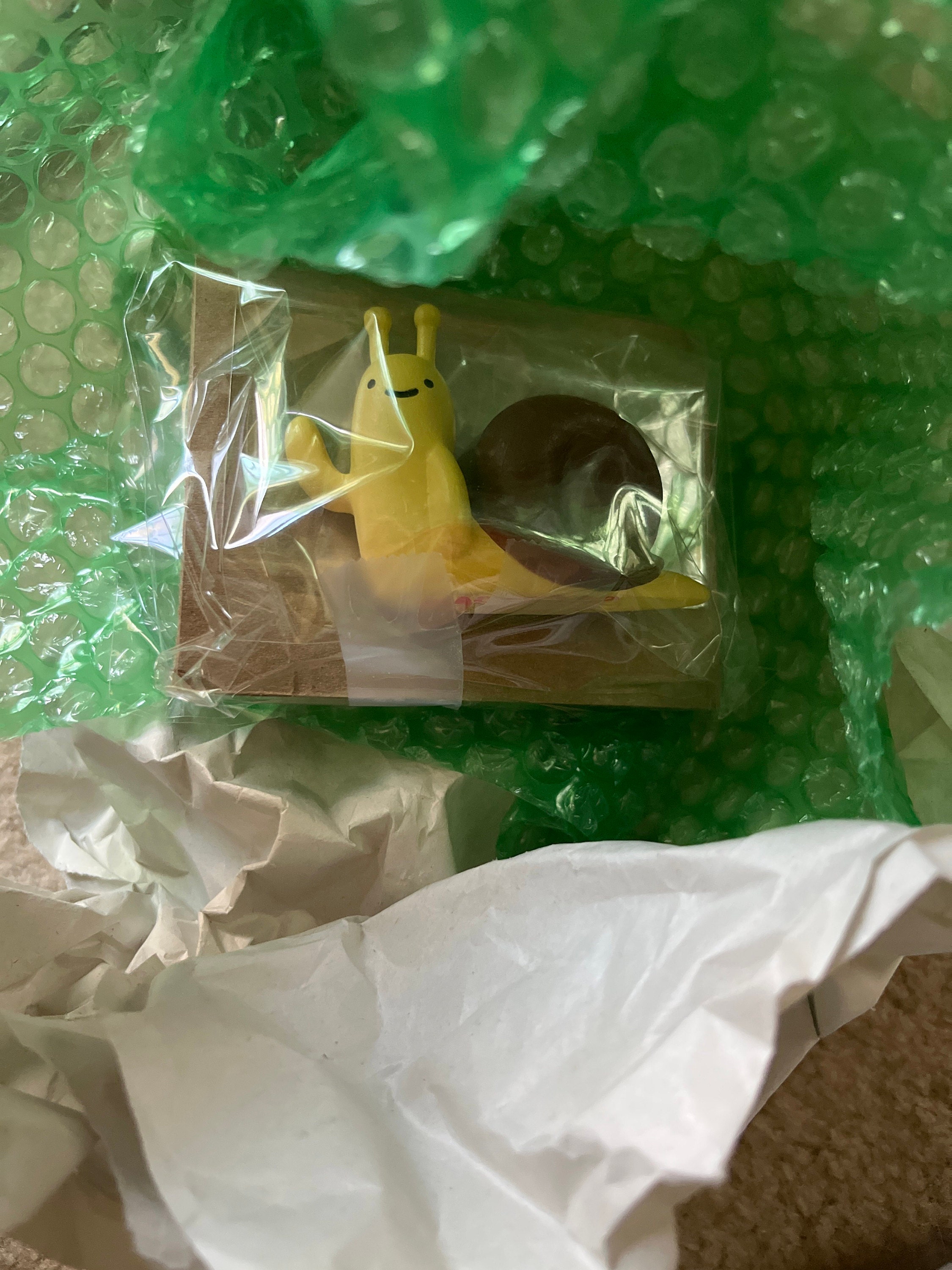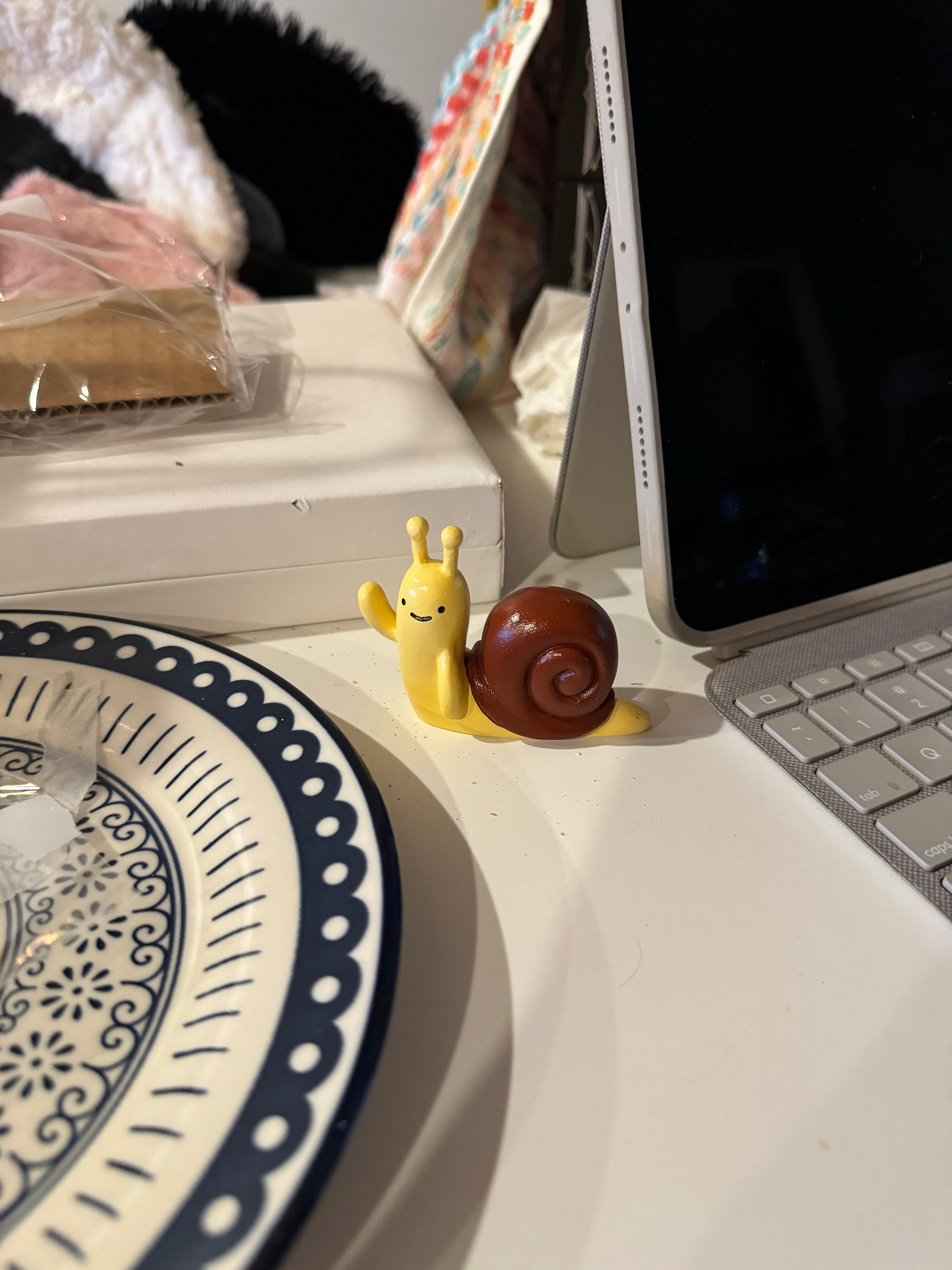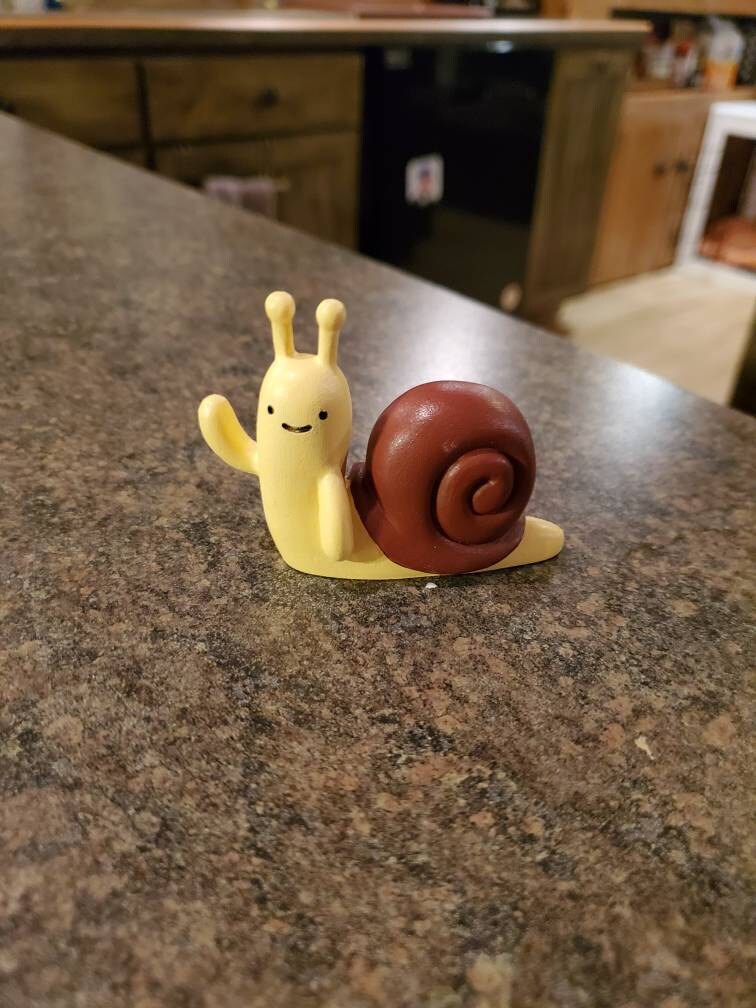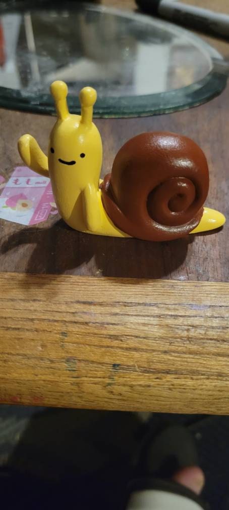 This is an original work of art, a resin mini figure of the A kawaii snail.