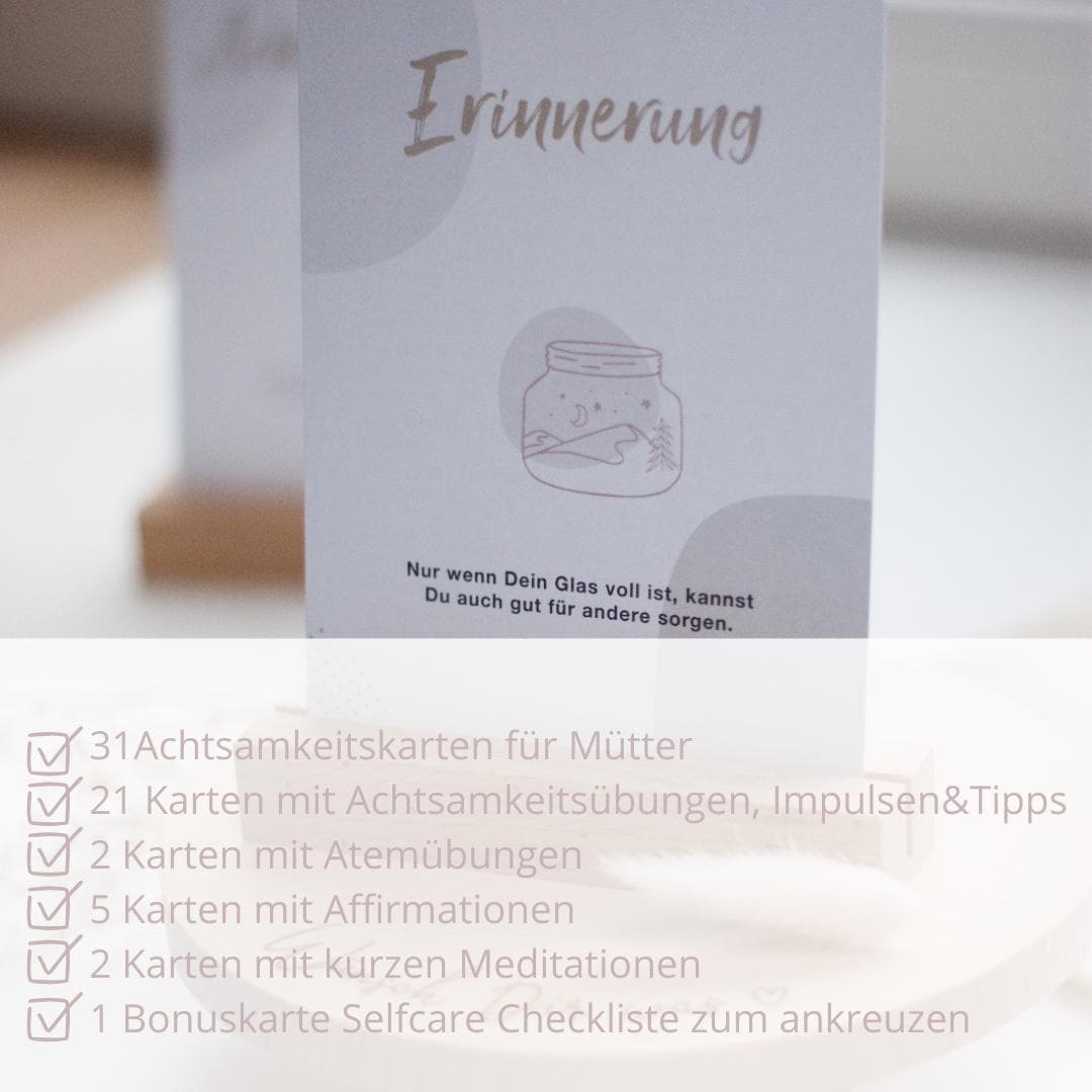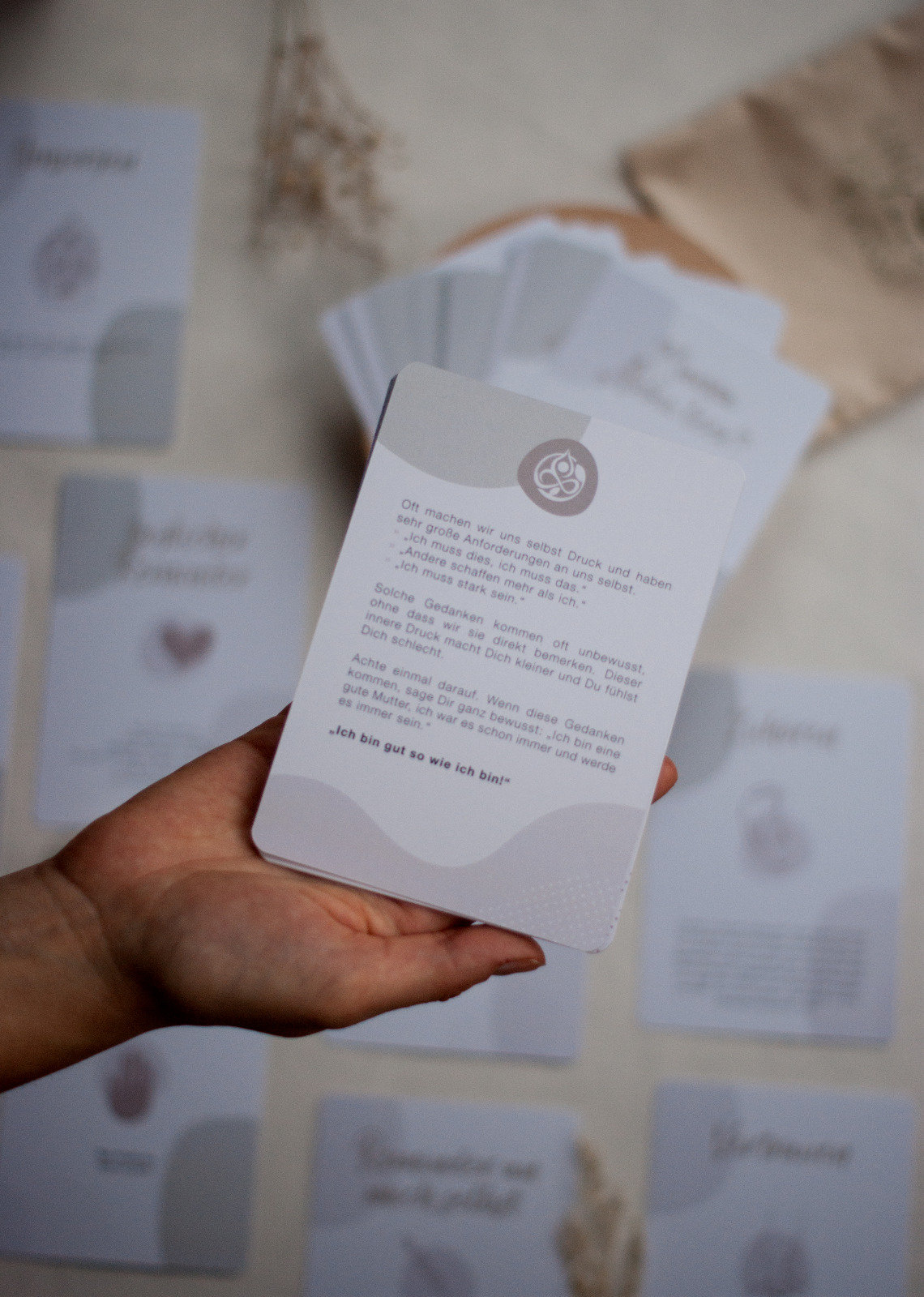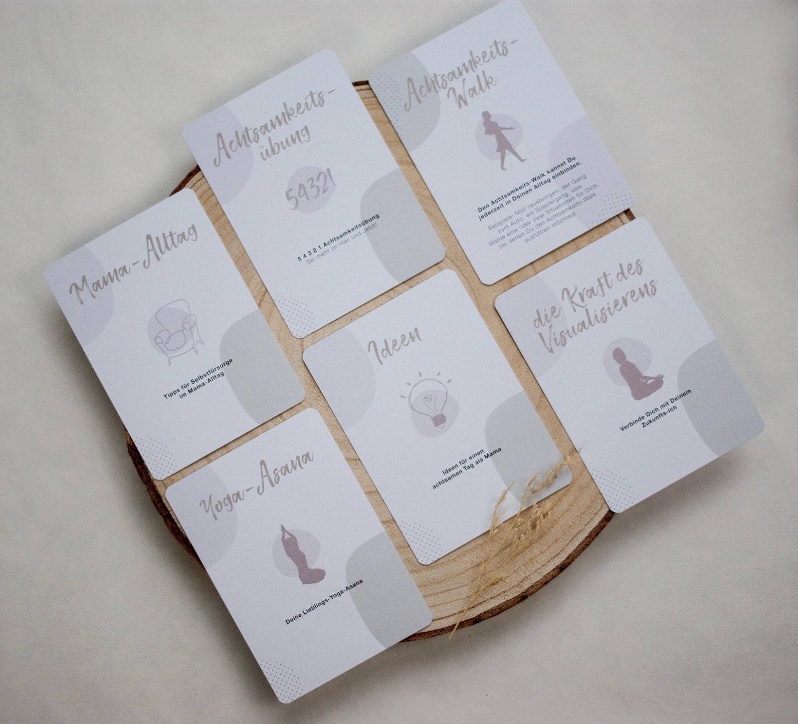 Treat yourself with this valuable self-care or give another wonderful mom a gift. Whether for a birthday, a birth, as a small gift, Mother's Day or Christmas. This special card set is a great companion for every mom.