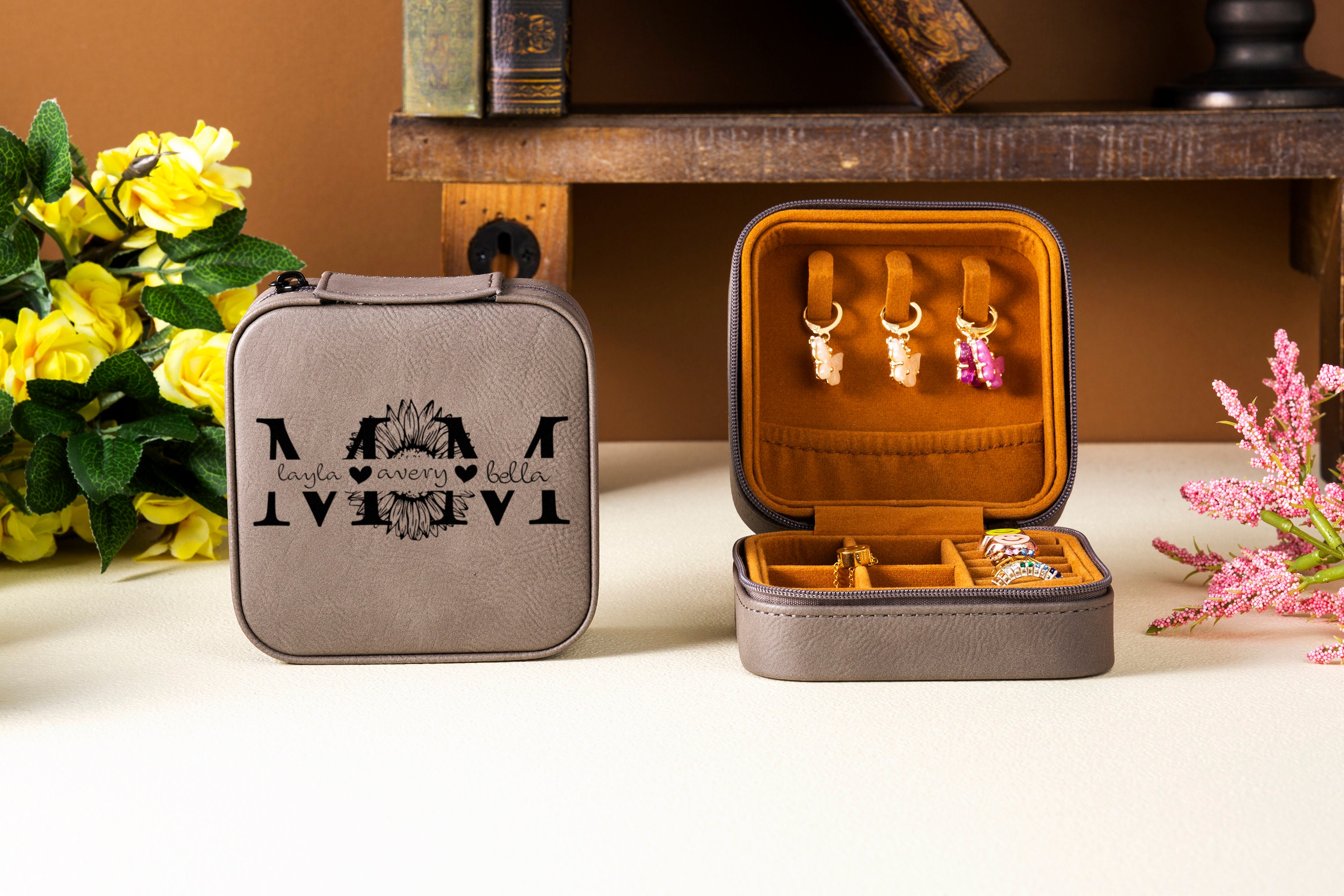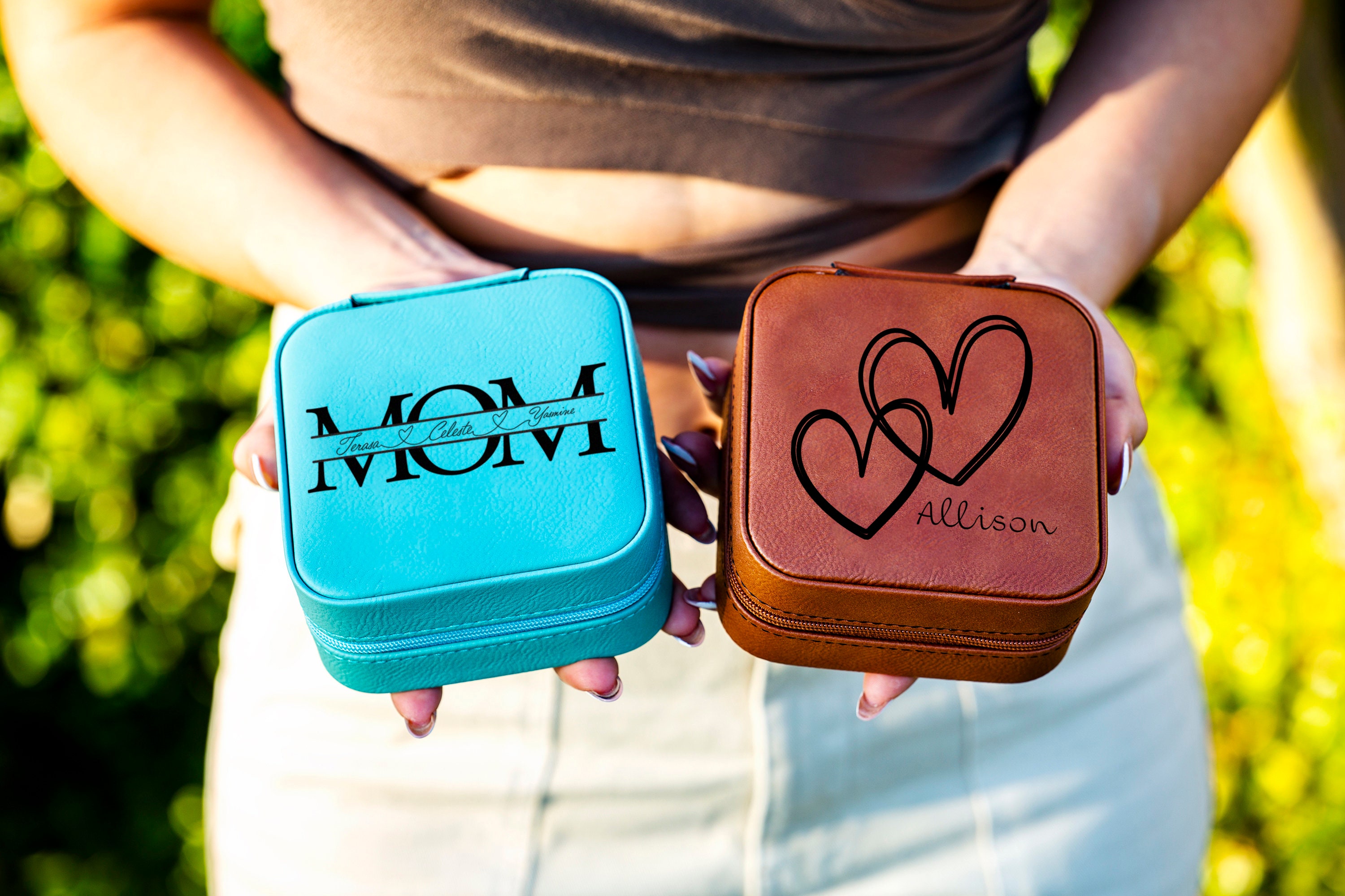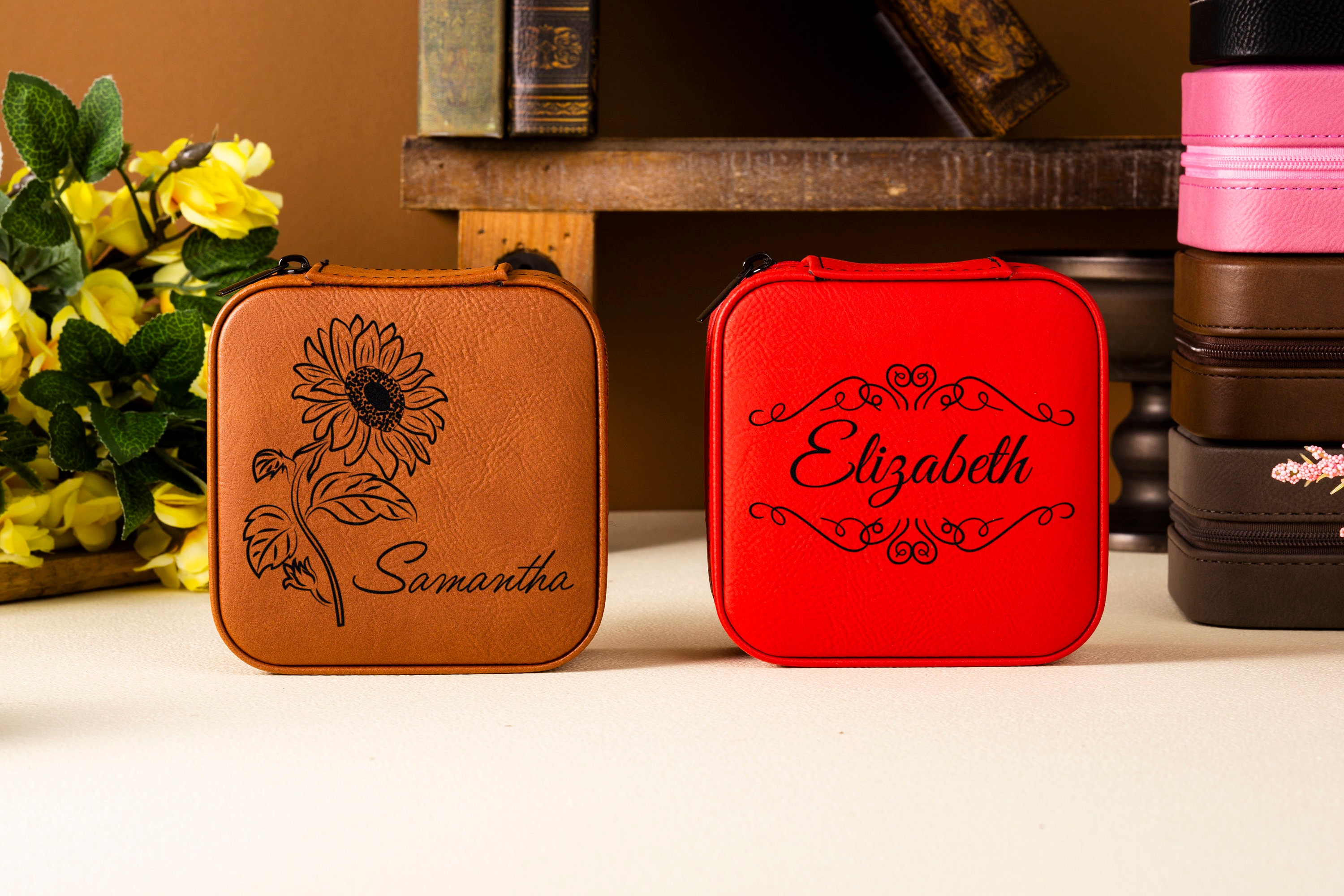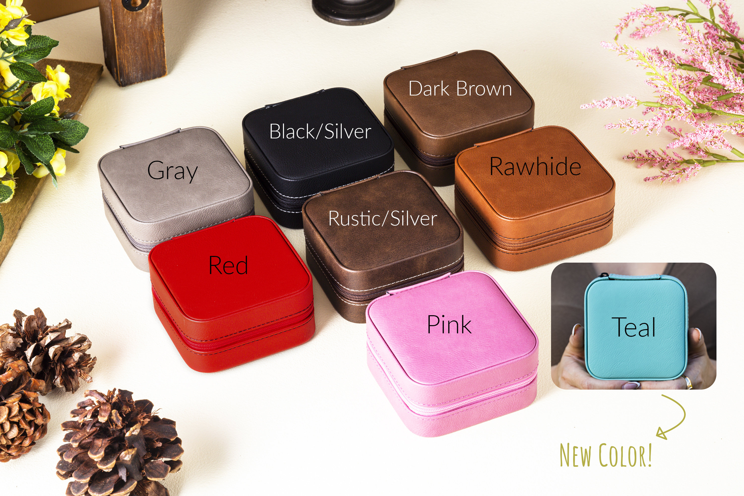 ❤Travel jewelry box is small and compact and can fit in your suitcase or purse. The box has compartments inside for chains, rings, earrings or any jewelry you want to take with you. Personalized on the front, back or both, they make the perfect custom gift for any occasion. Perfect for bridesmaid gifts!