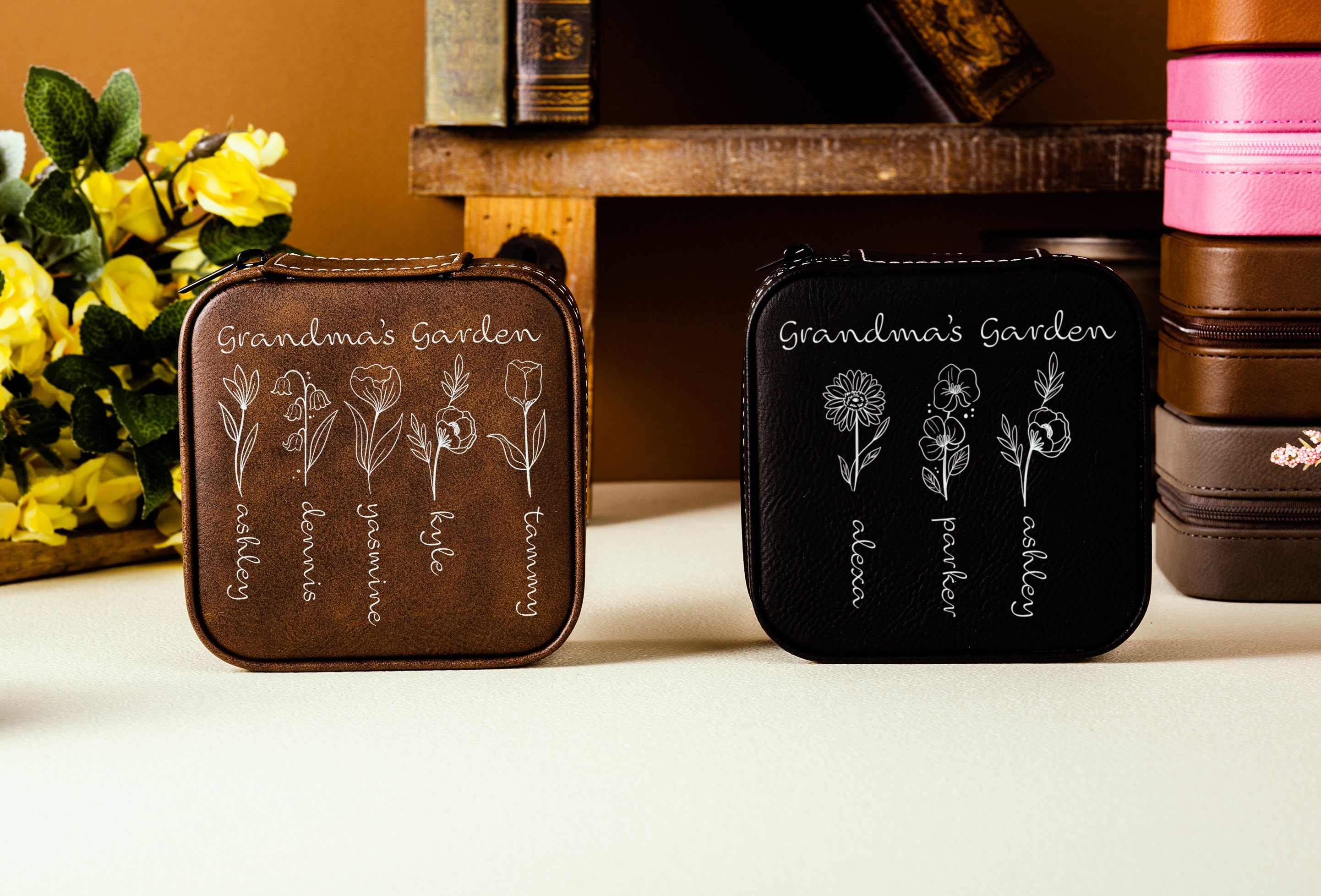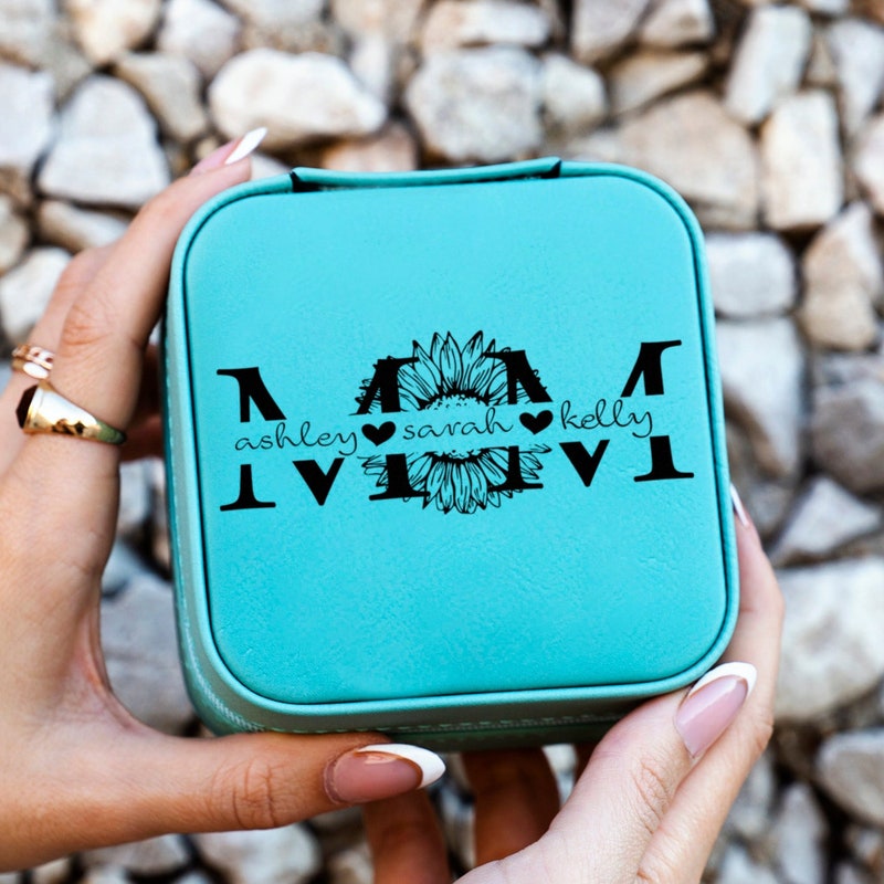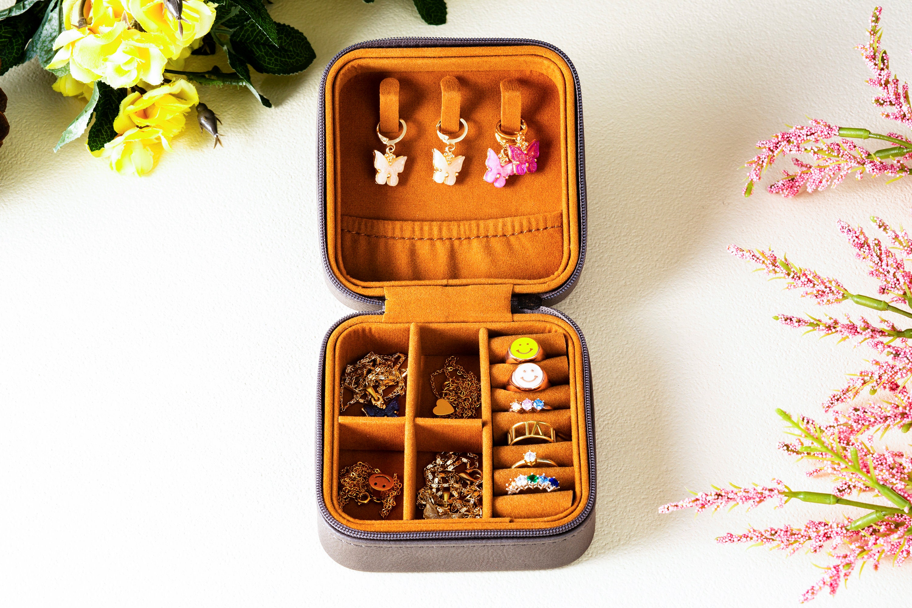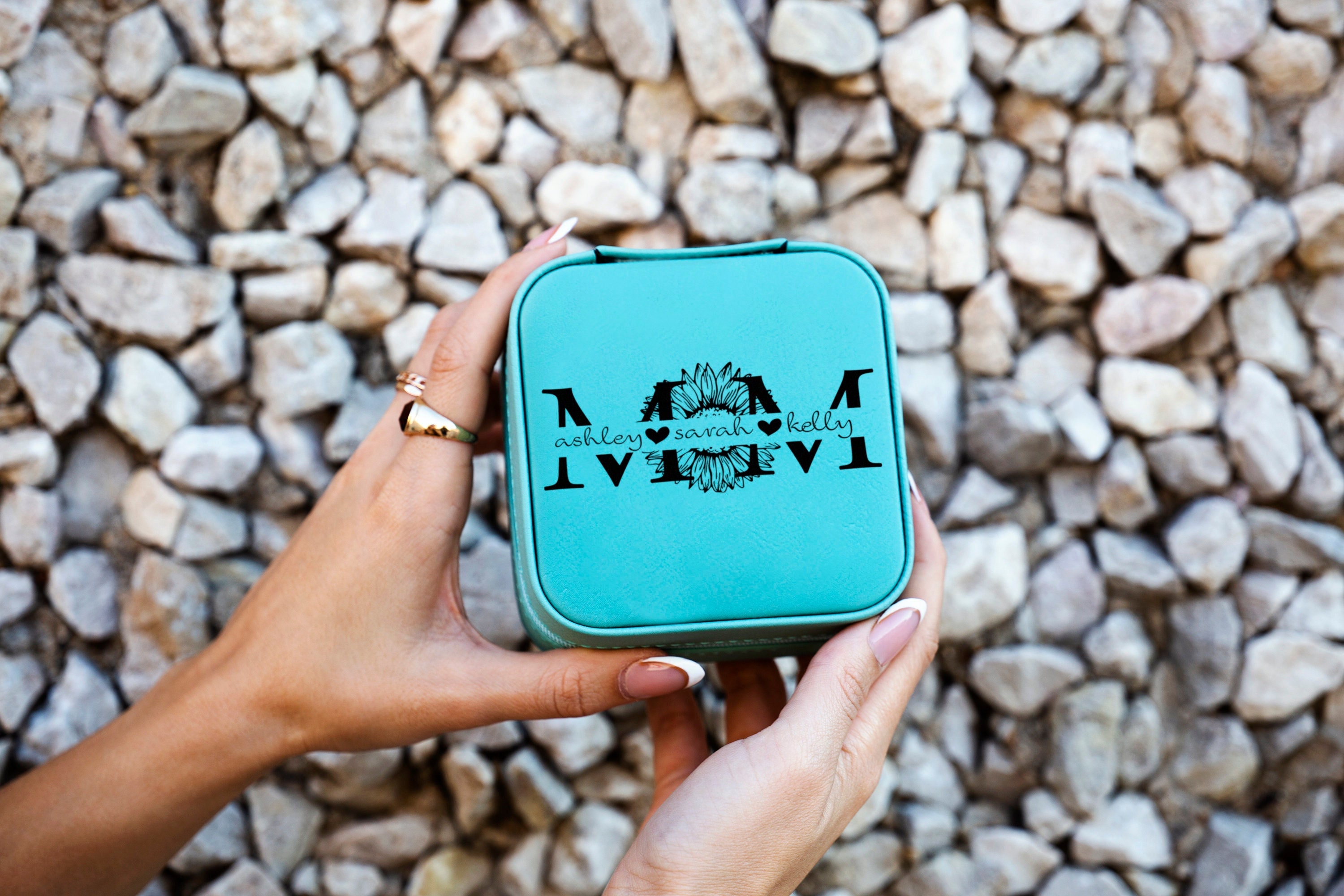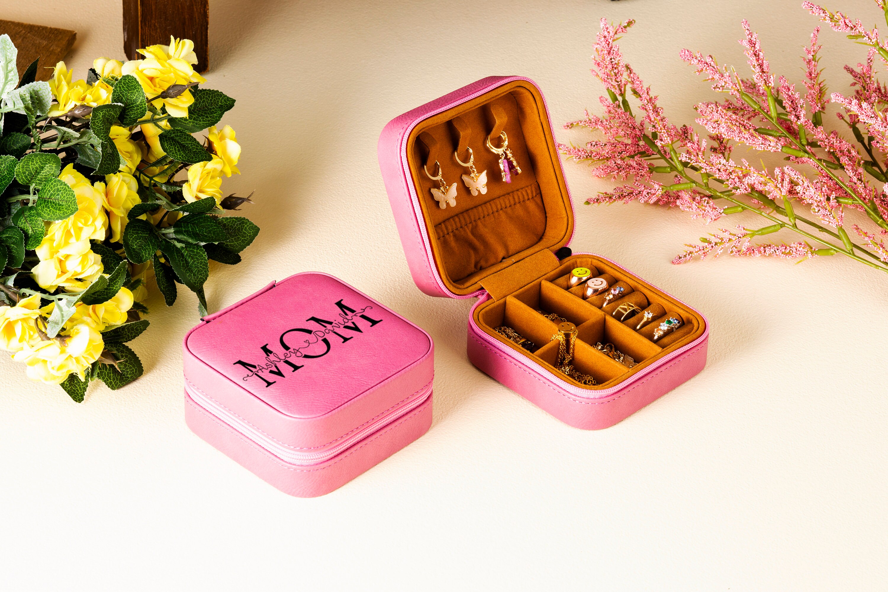 ❤Travel jewelry box is small and compact and can fit in your suitcase or purse. The box has compartments inside for chains, rings, earrings or any jewelry you want to take with you. Personalized on the front, back or both, they make the perfect custom gift for any occasion. Perfect for bridesmaid gifts!