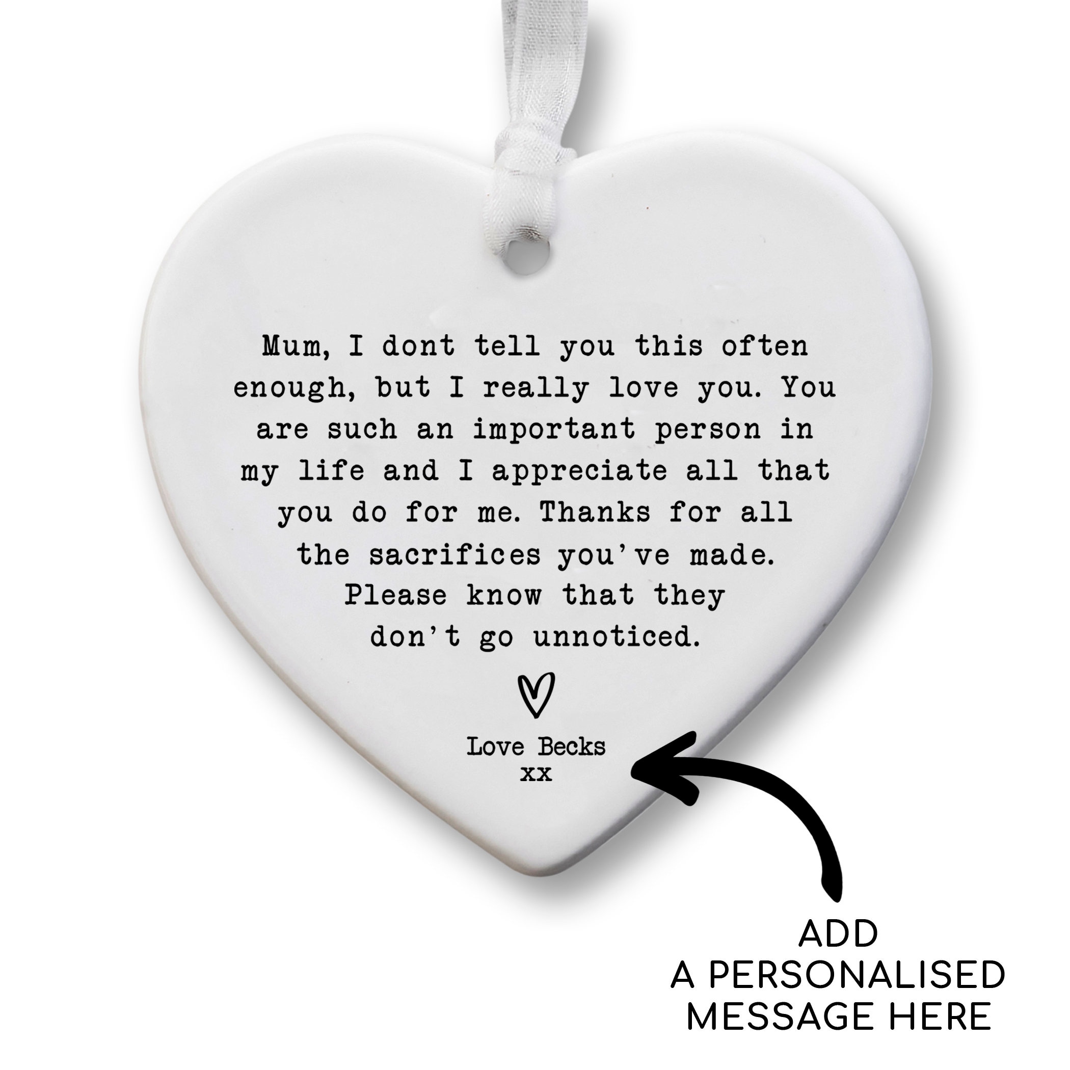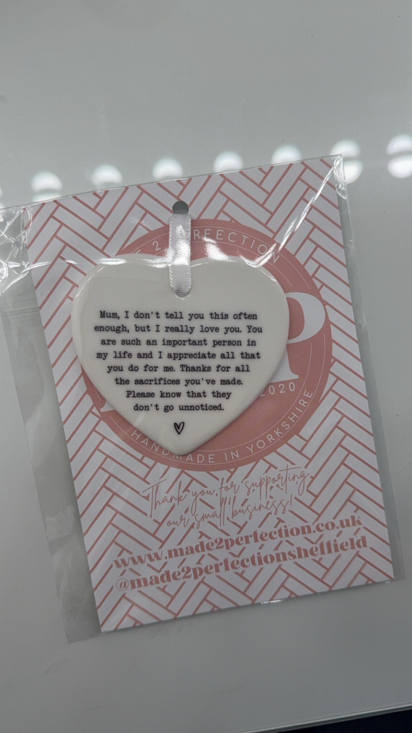 A beautiful ceramic keepsake heart that can be personalised as required.