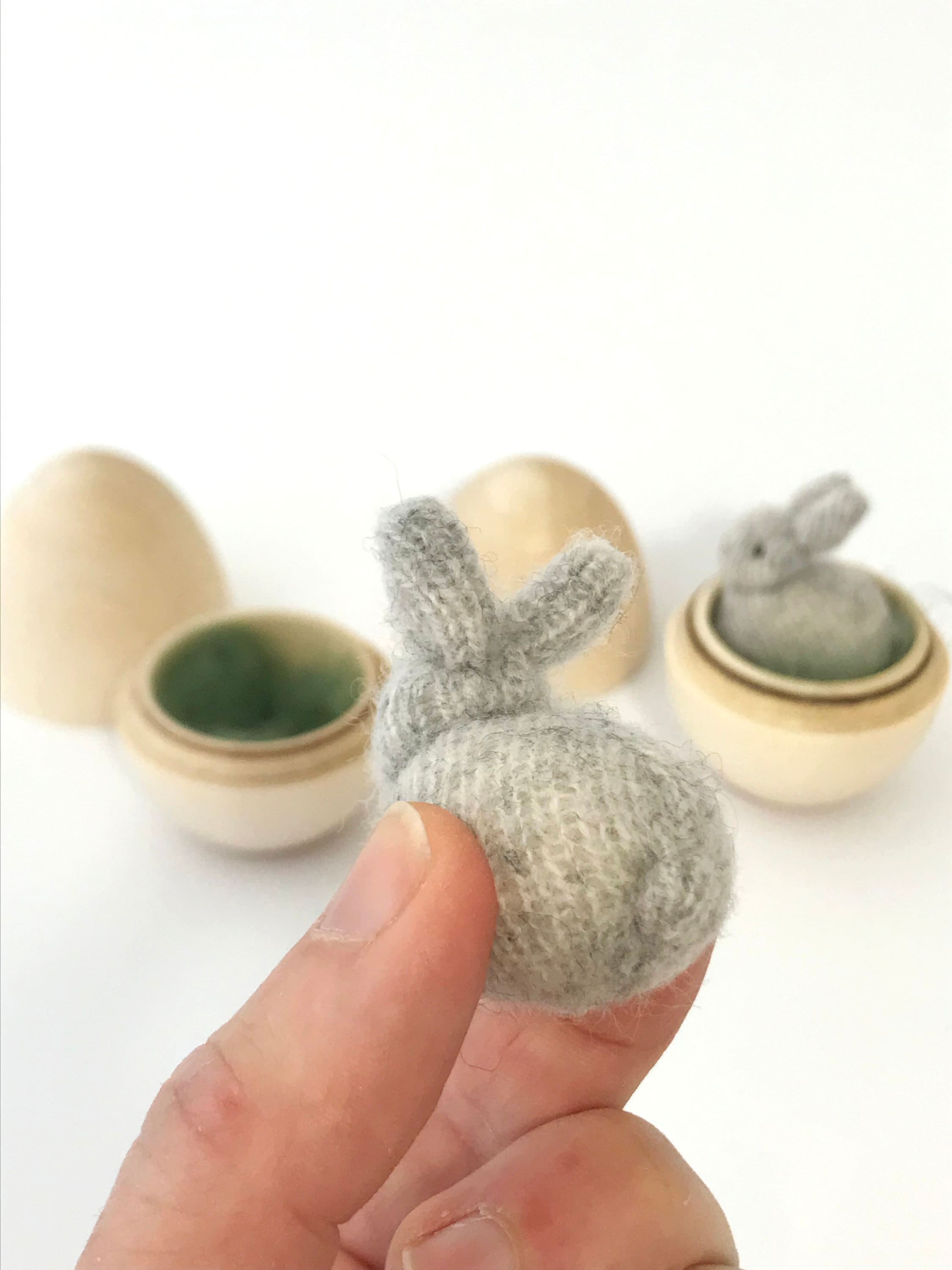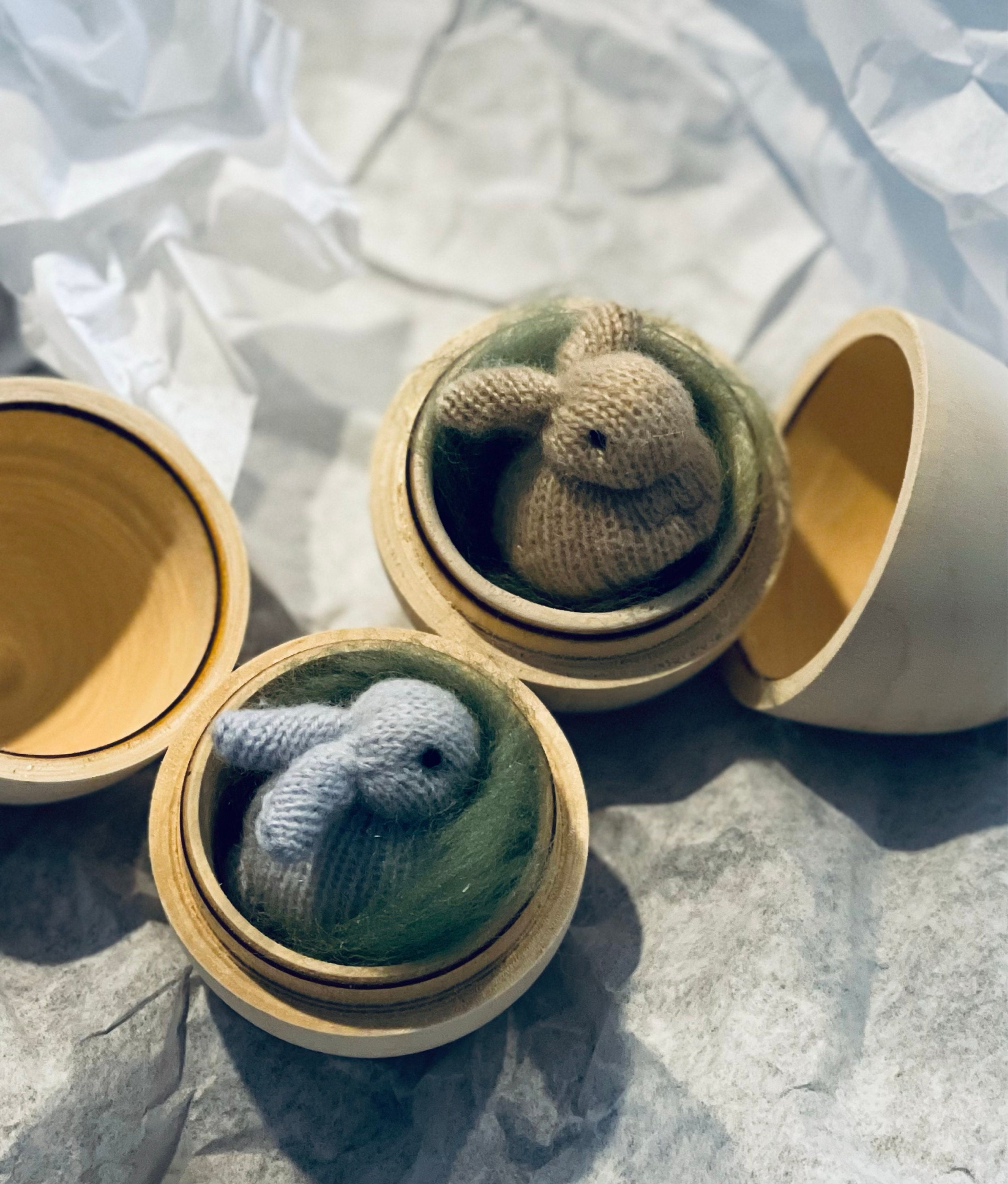 This listing is for a set of TWO miniature cashmere bunny rabbits in their TWO wooden eggs.