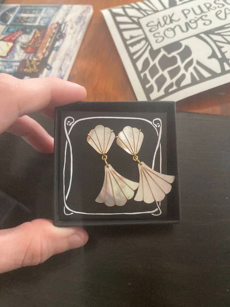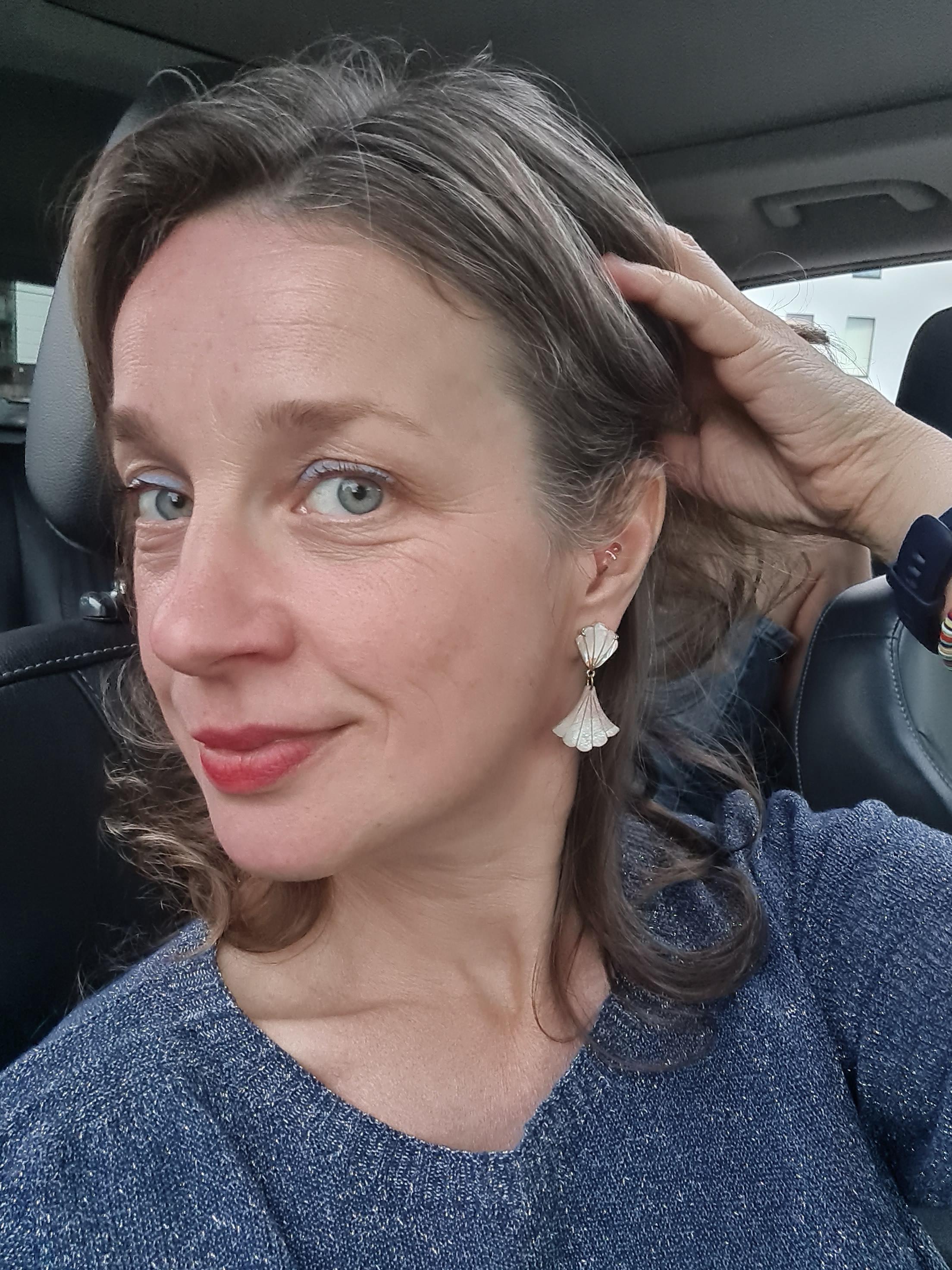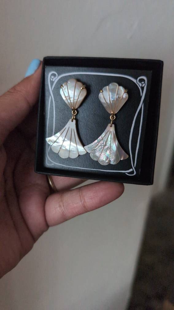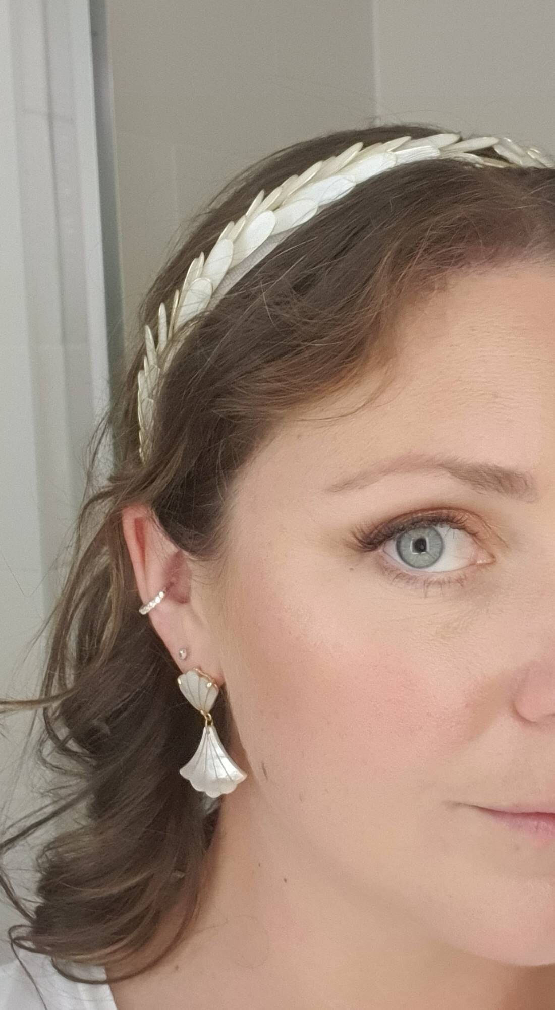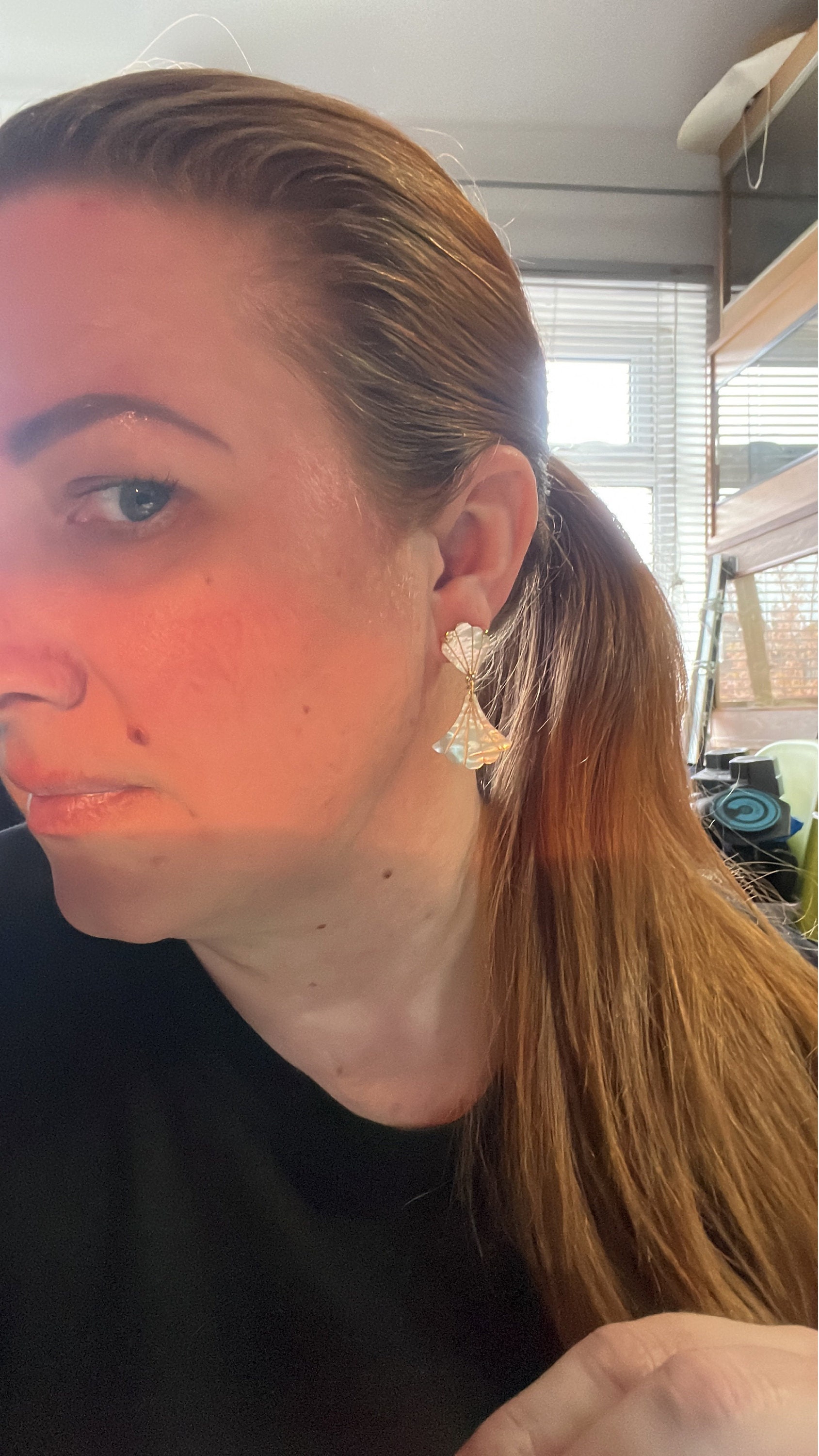 The earrings are just under 50mm (two inches) in length and are designed to dangle around the jawline.