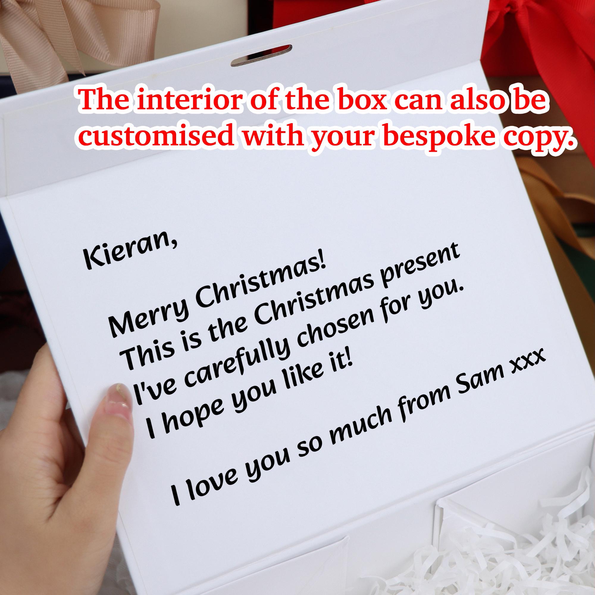 Make this Christmas magical with our beautiful personalized magnetic gift boxes! These boxes are perfect for Christmas Eve surprises, Advent countdowns, or thoughtful holiday gifts to add a special touch to your celebrations. Each box can be customized with a name, message, or festive design, making it a keepsake to be treasured year after year. 🎁 Key Features