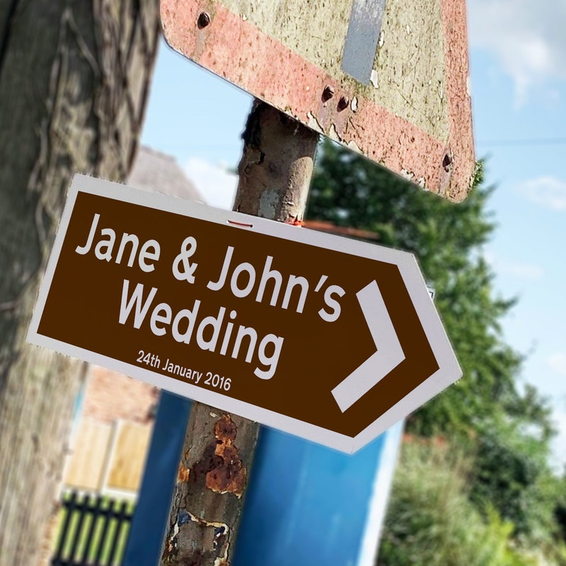 Personalised Direction Sign Brown METAL WEDDING SIGN, Wedding Plaque , Signs, Wedding Signs, Customizable Wedding Signs, Wedding Reception