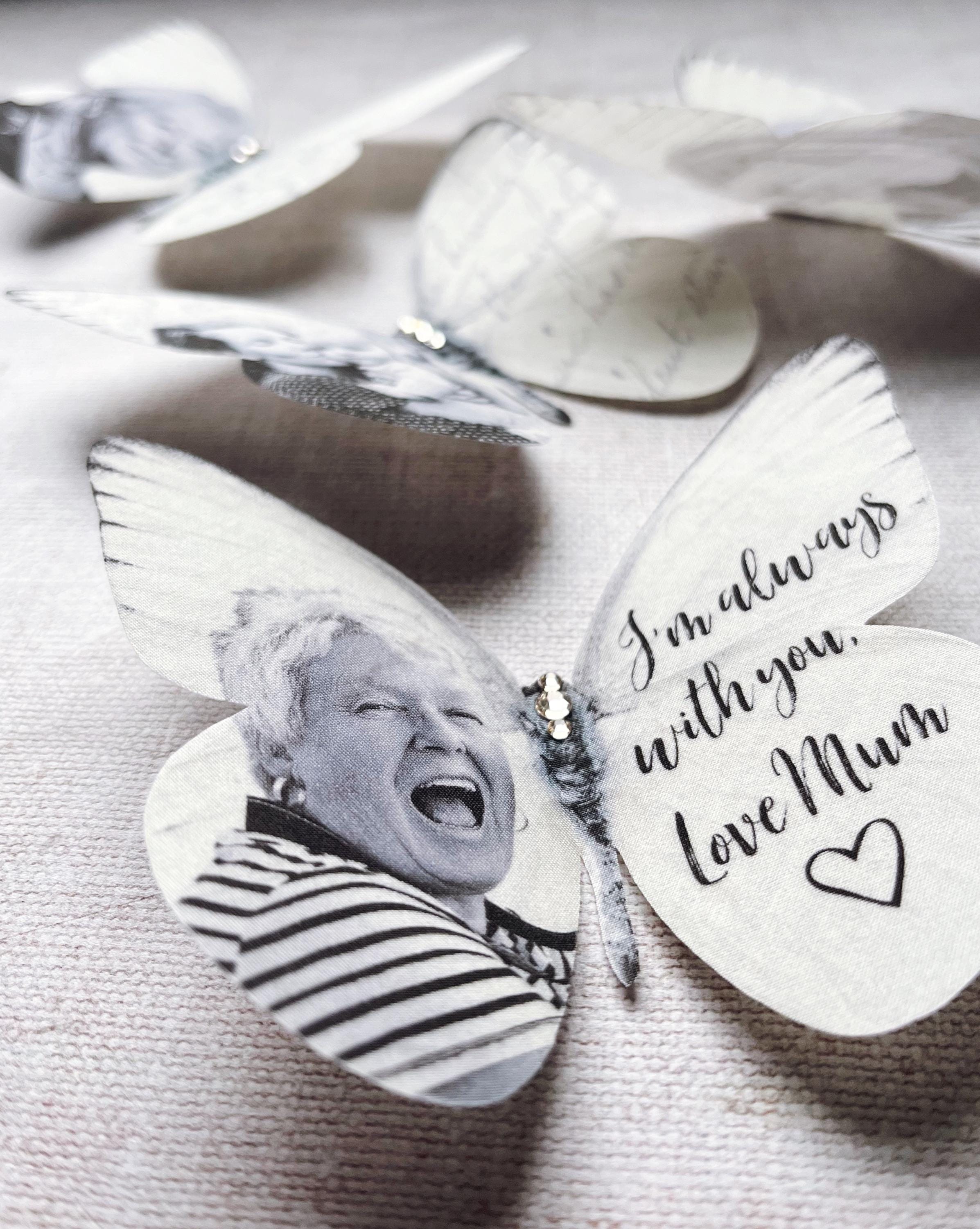 Many people contact me to say a butterfly landed on them after a loved one passed away, my personalised butterflies are a lovely way to mark that connection and make wonderful keepsakes and gifts.